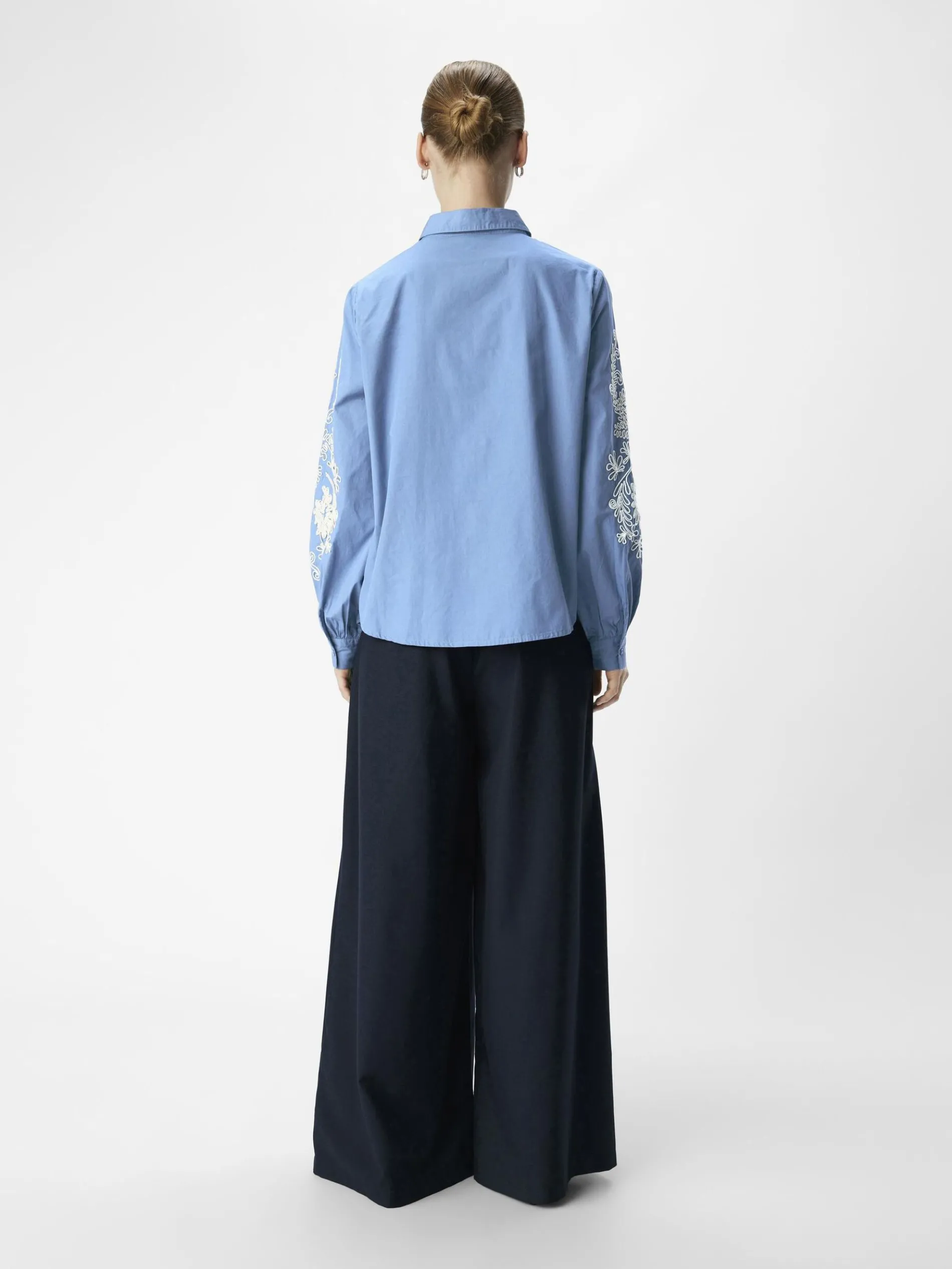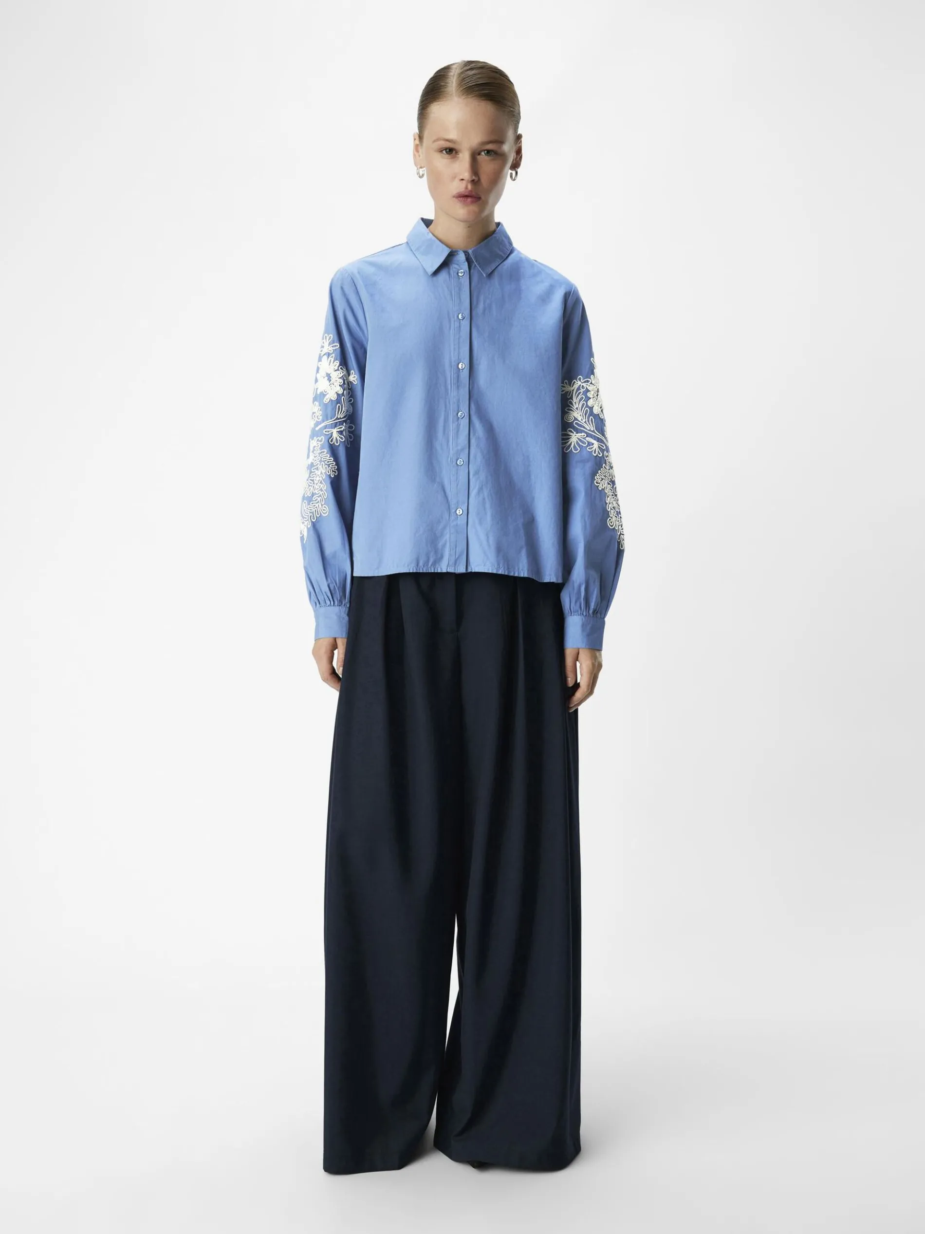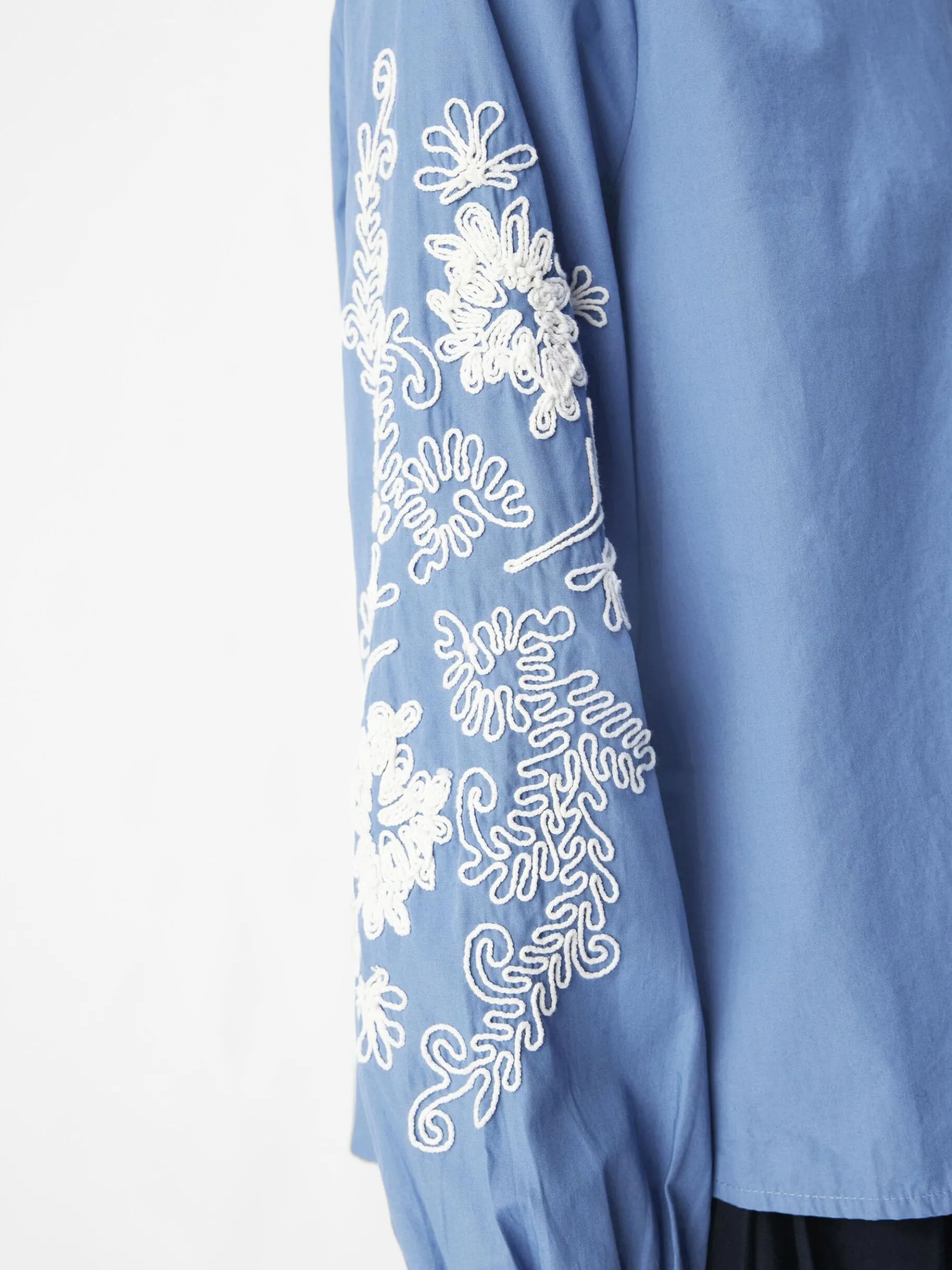 – Blouse met gebloemde borduring op de mouwen- Normale kraag- Lange volumineuze mouwen- Manchetten met knopen- Knoopsluiting aan de voorzijde- Loose fit