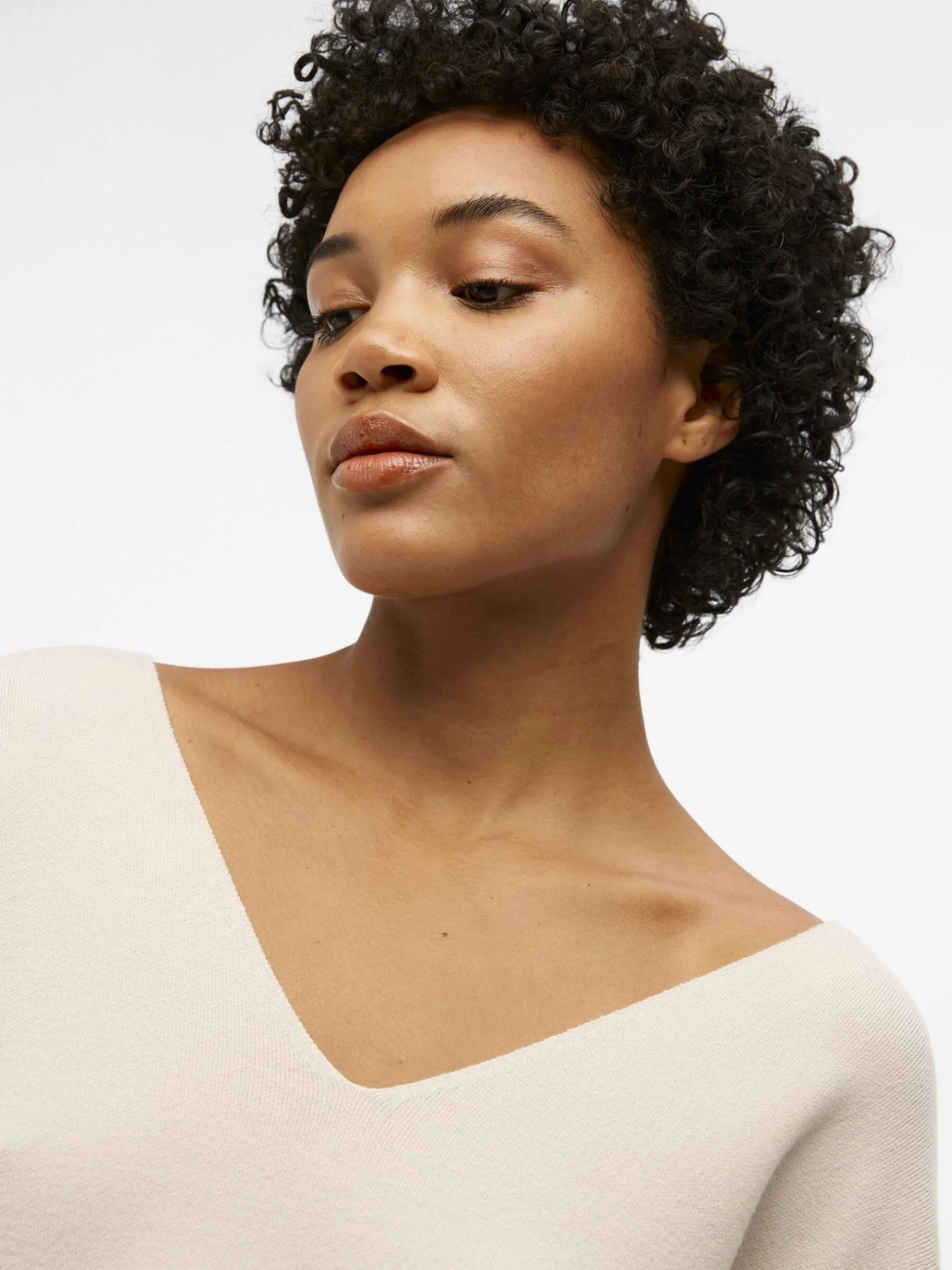 – Gebreide trui met V-hals- Lange mouwen met verlaagde schouders- Voelt zacht aan- Relaxed fit- Gemaakt met duurzamere stoffen