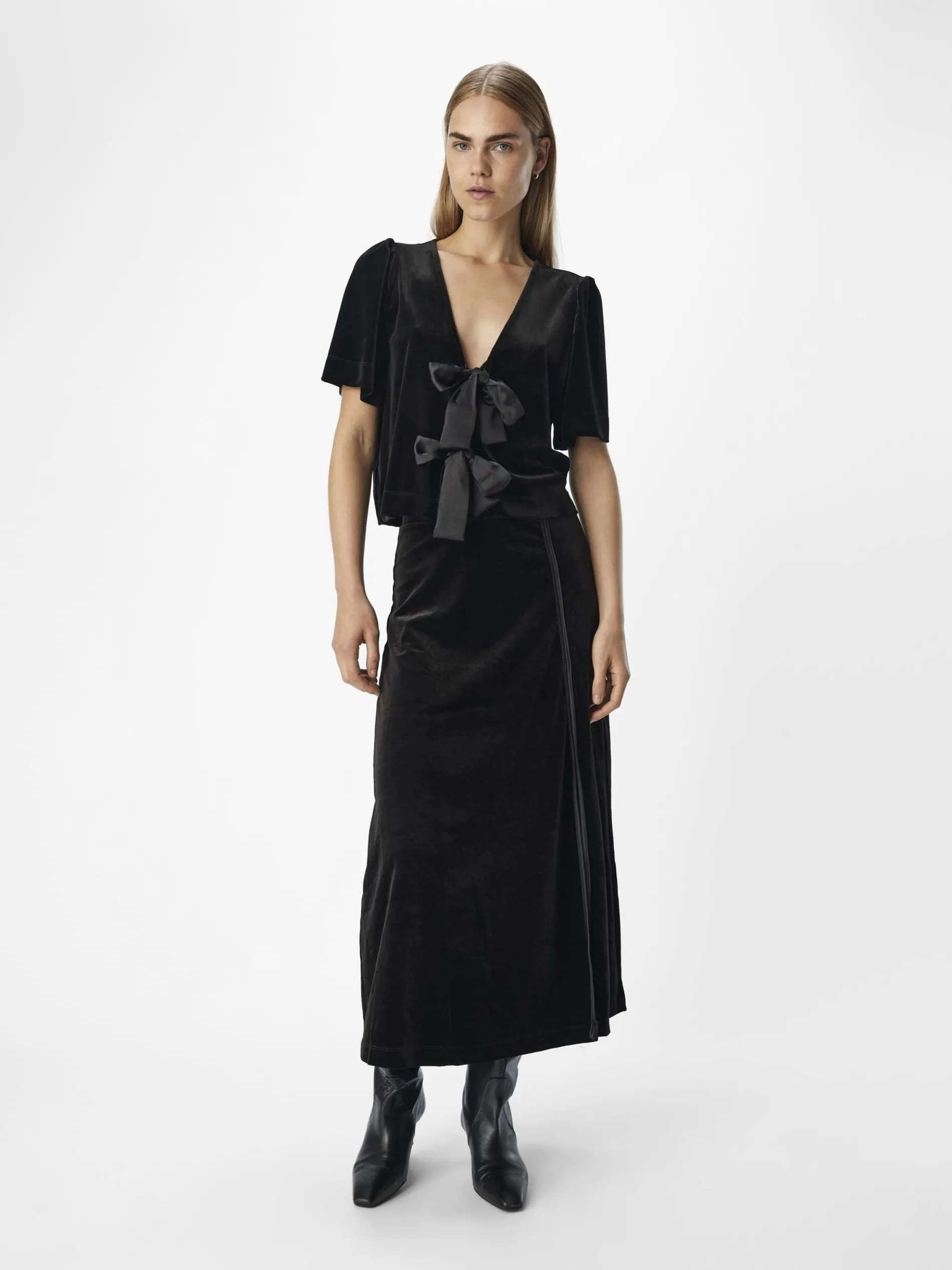 – Fluwelen top met striksluiting- Onderdeel van een set- V-hals- Korte mouwen met plooien op de schouders- Loose fit