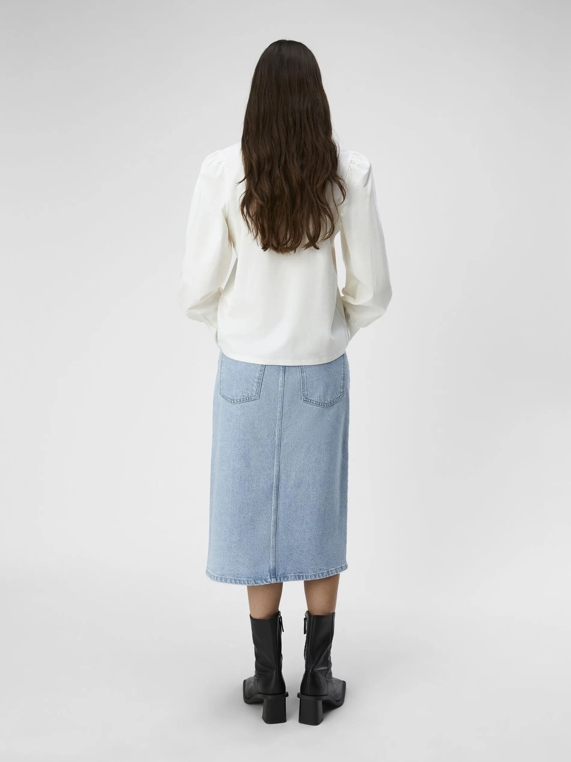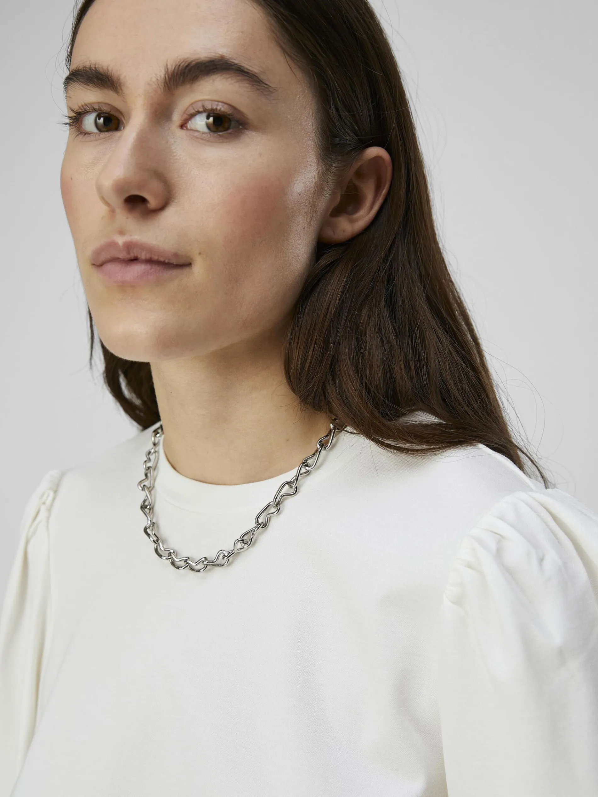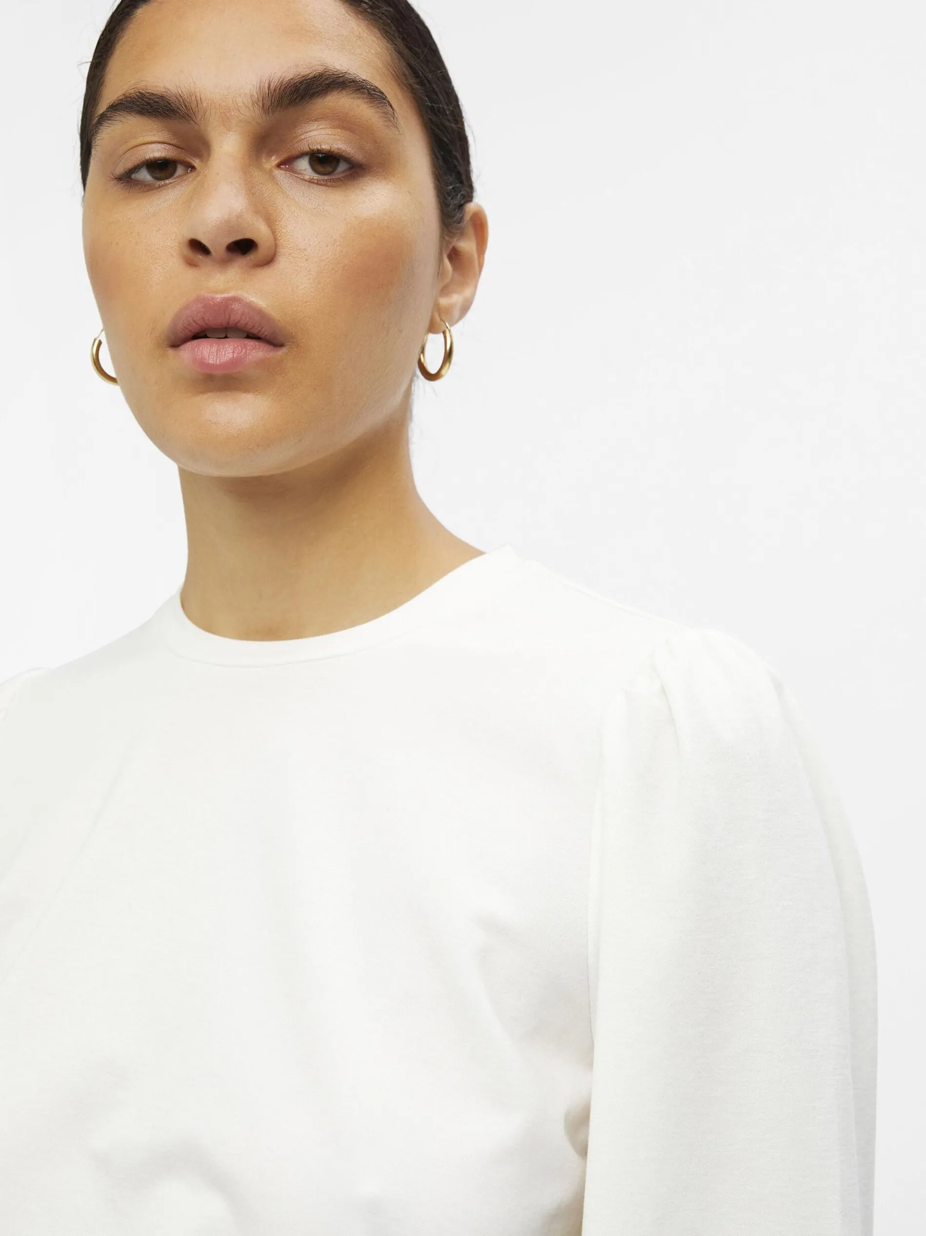 – Ronde hals- Lange volumineuze mouwen- Extra lange nauwsluitende manchetten- Stretchy stof- Gemaakt van een milieuvriendelijkere stof- Regular fit- Model draagt maat 36