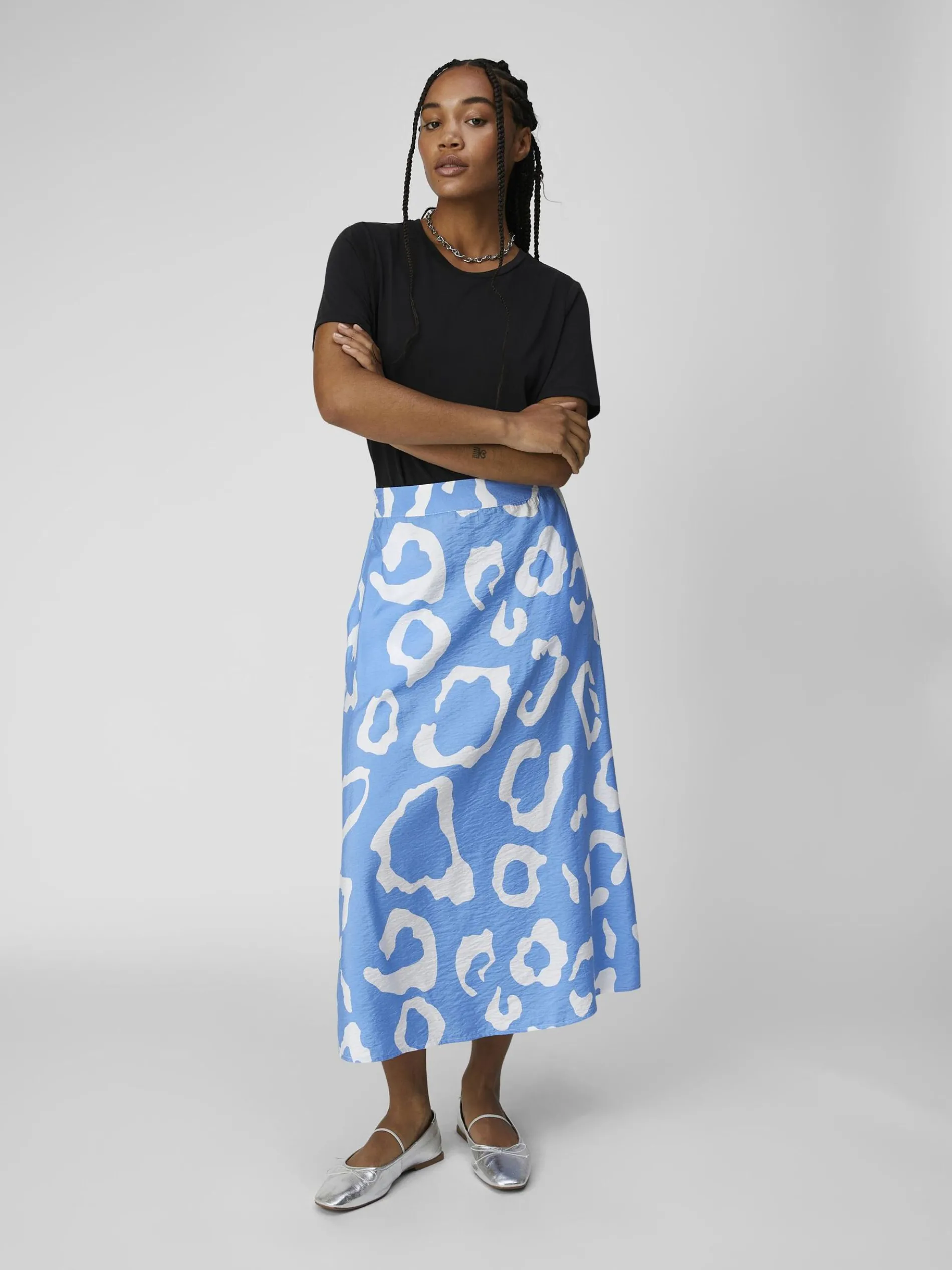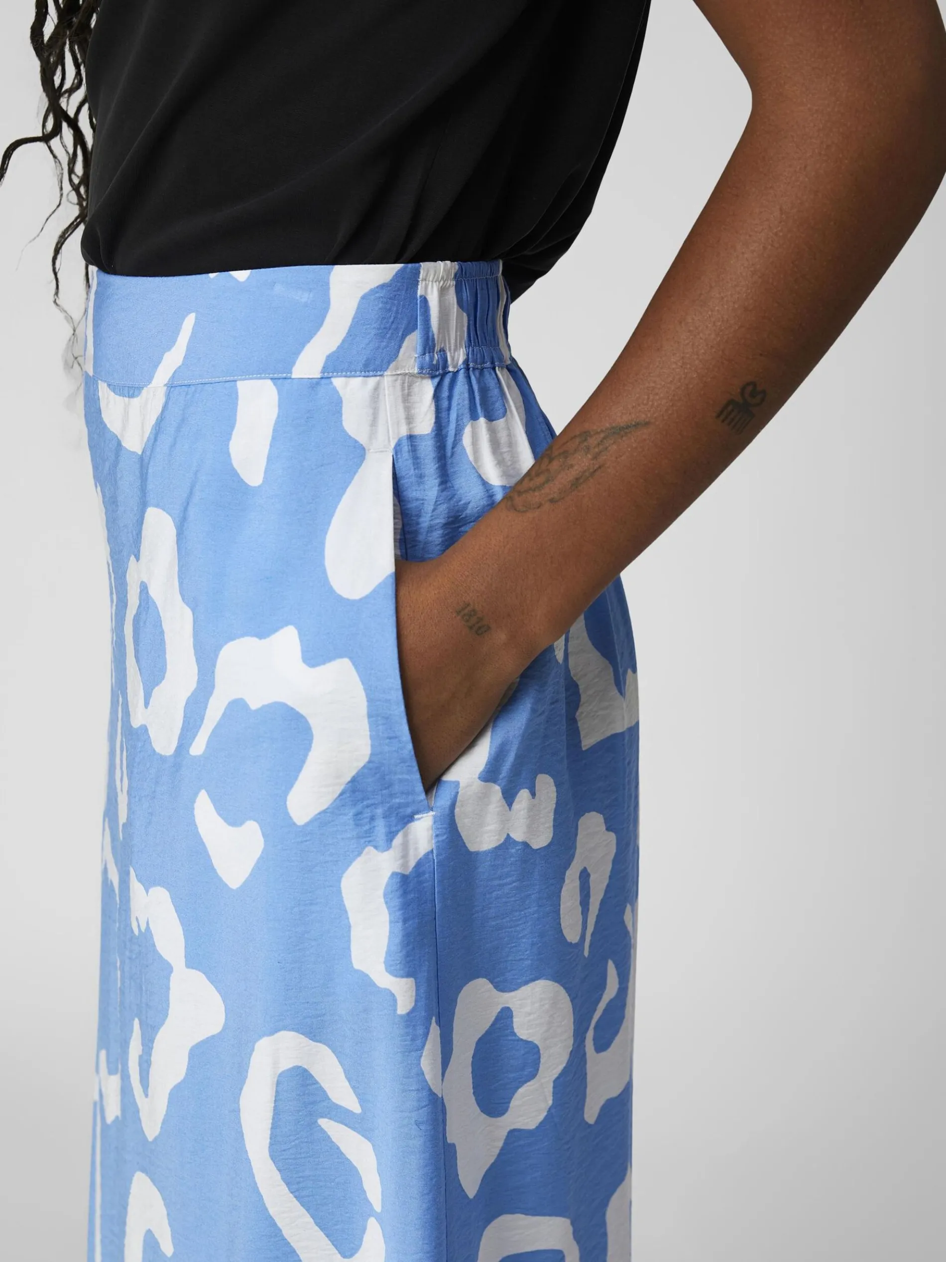 -Midirok met print-Mid-waist-Elastische tailleband-Zijzak-Regular fit-Model draagt maat 36-Gemaakt met duurzamere stoffen