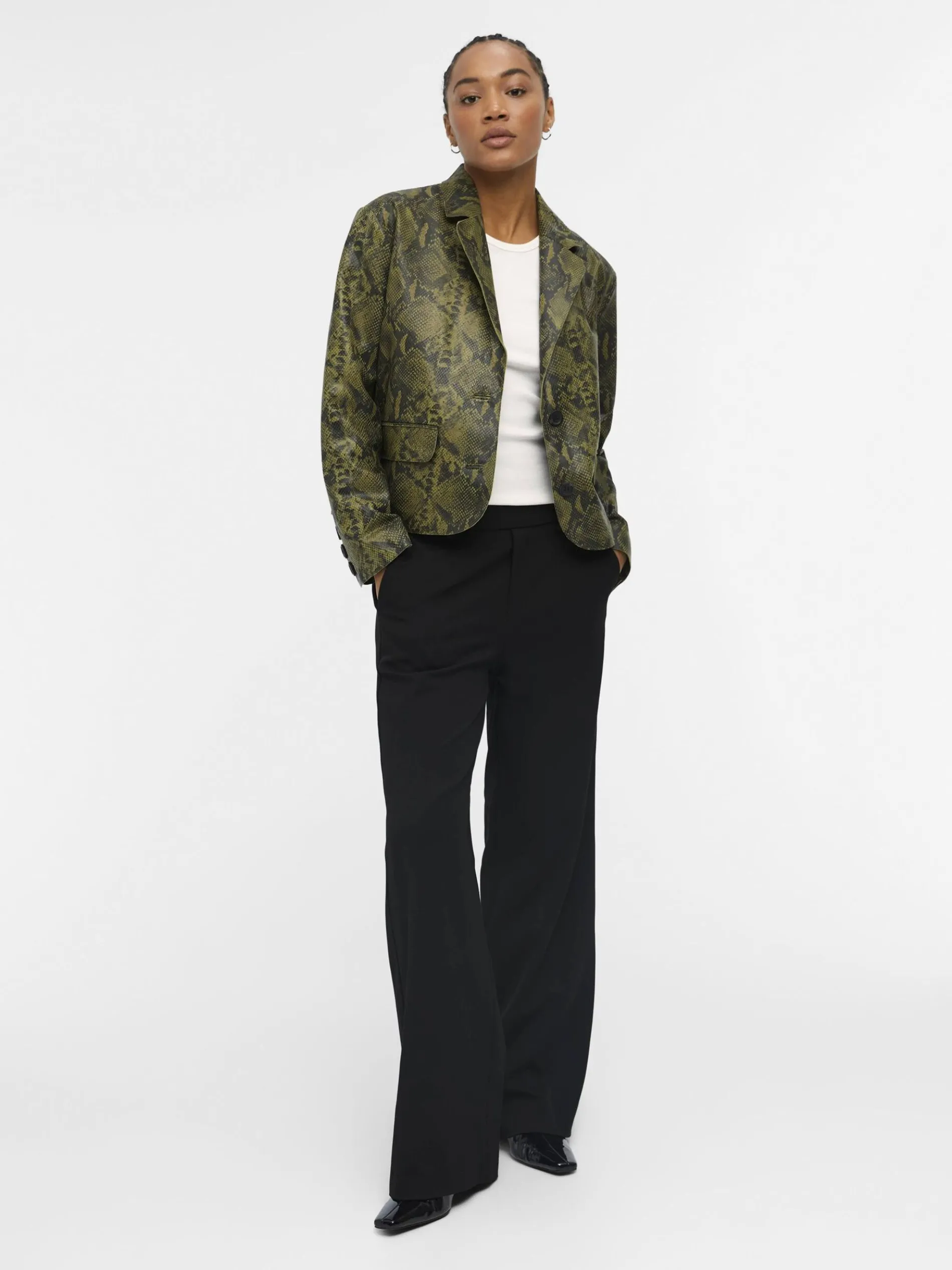 – Gecropte blazer met enkele knoop- Revers met inkeping- Lange mouwen met manchetten met drie knopen- Paspelzakken met klep aan de voorkant- Gevoerd- Cropped fit- Model draagt maat 36