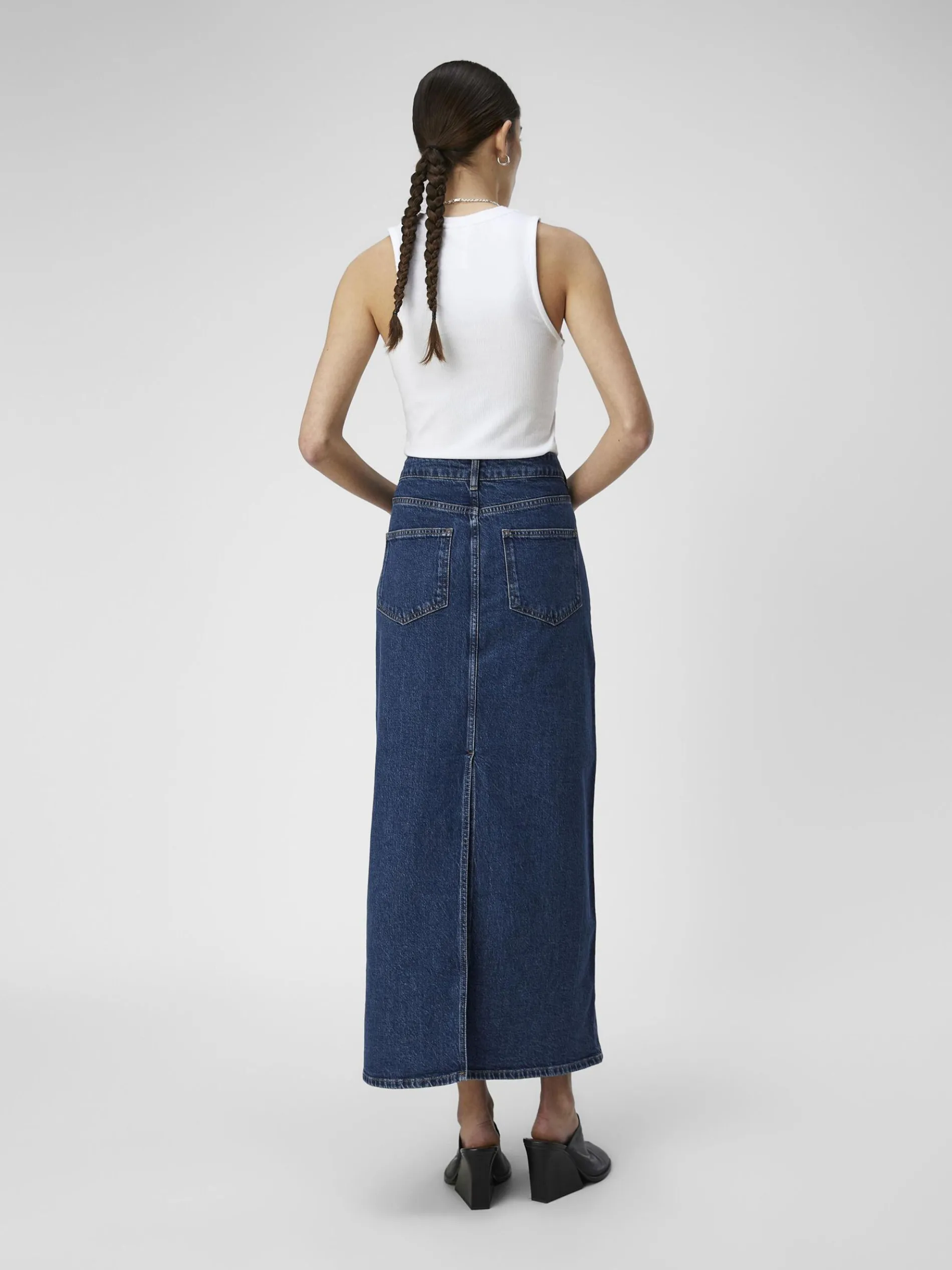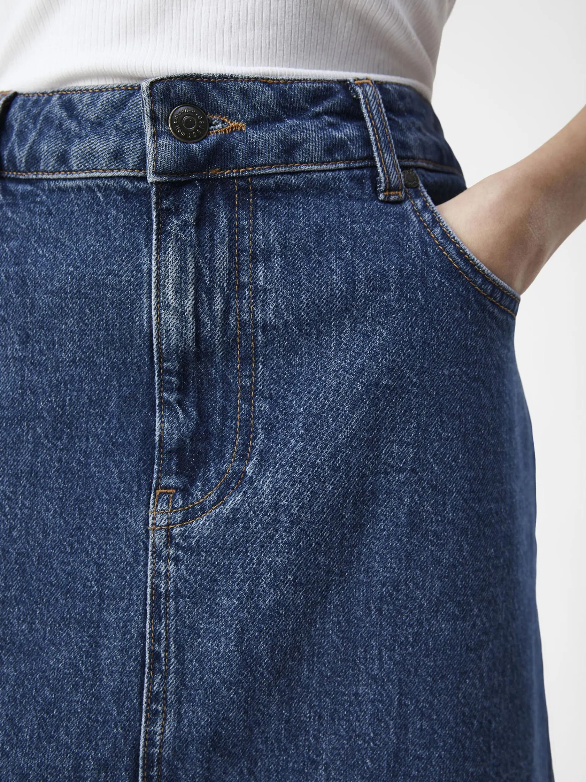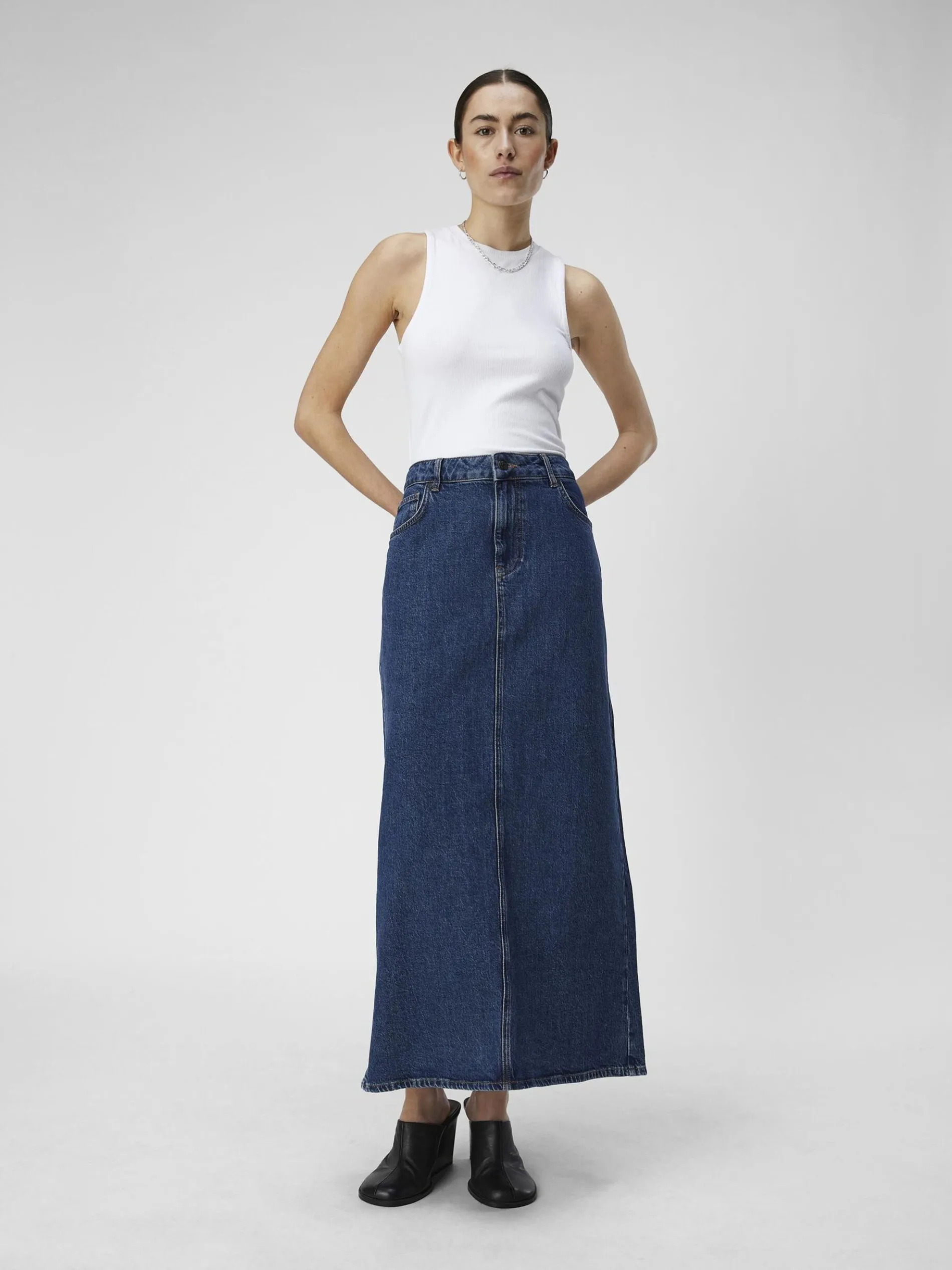 -Lange maxi spijkerrok-Mid-waist-Split aan de achterkant-Ontwerp met 5-zakken-Ritssluiting met knoop-Riemlussen-Regular fit-Gemaakt met duurzamere stoffen