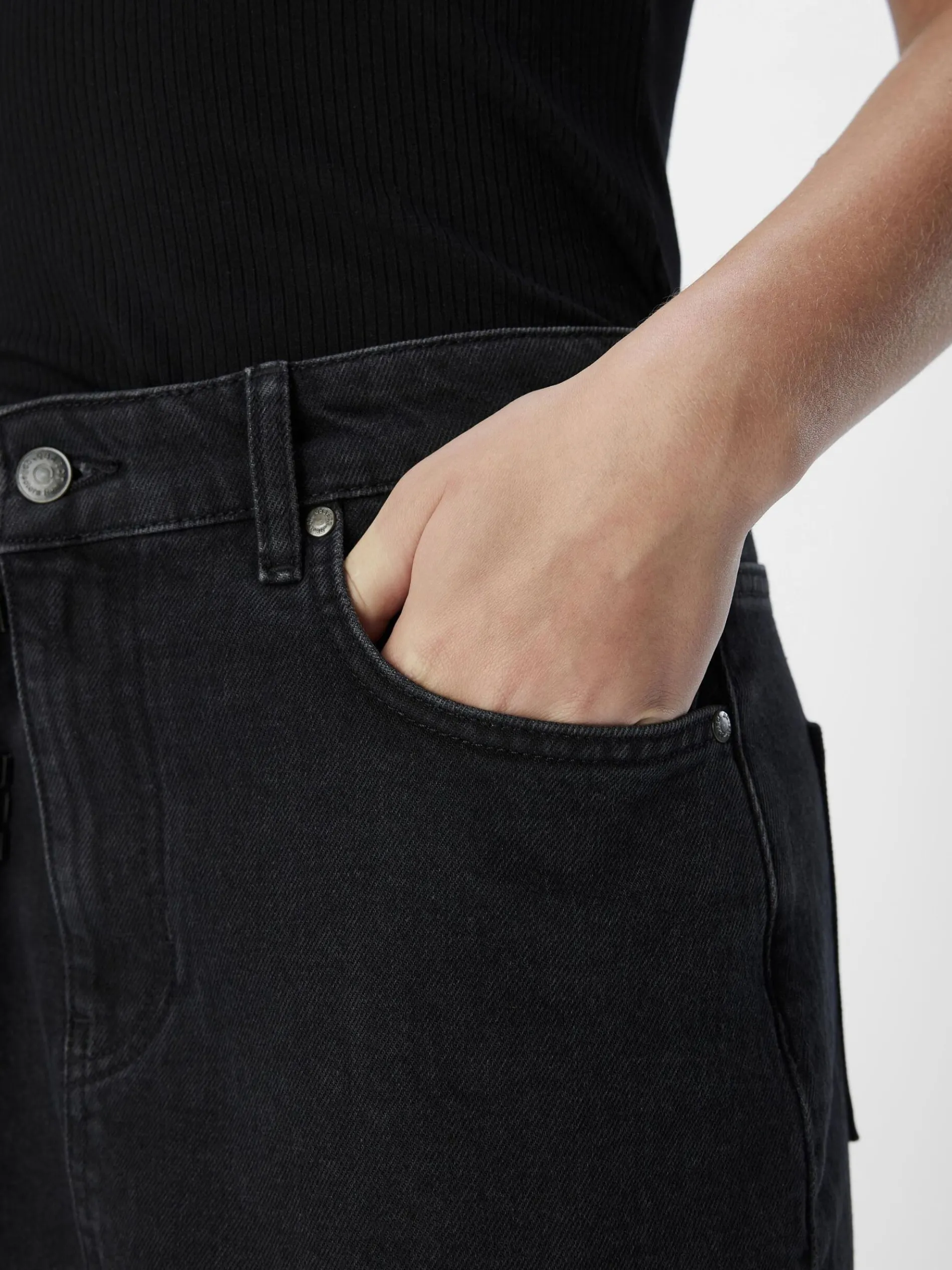 -Mid-waist denim midirok-Ontwerp met 5-zakken-Split aan de voorkant-Ritssluiting met knoop-Riemlussen-Model draagt maat 36-Gemaakt met duurzamere stoffen