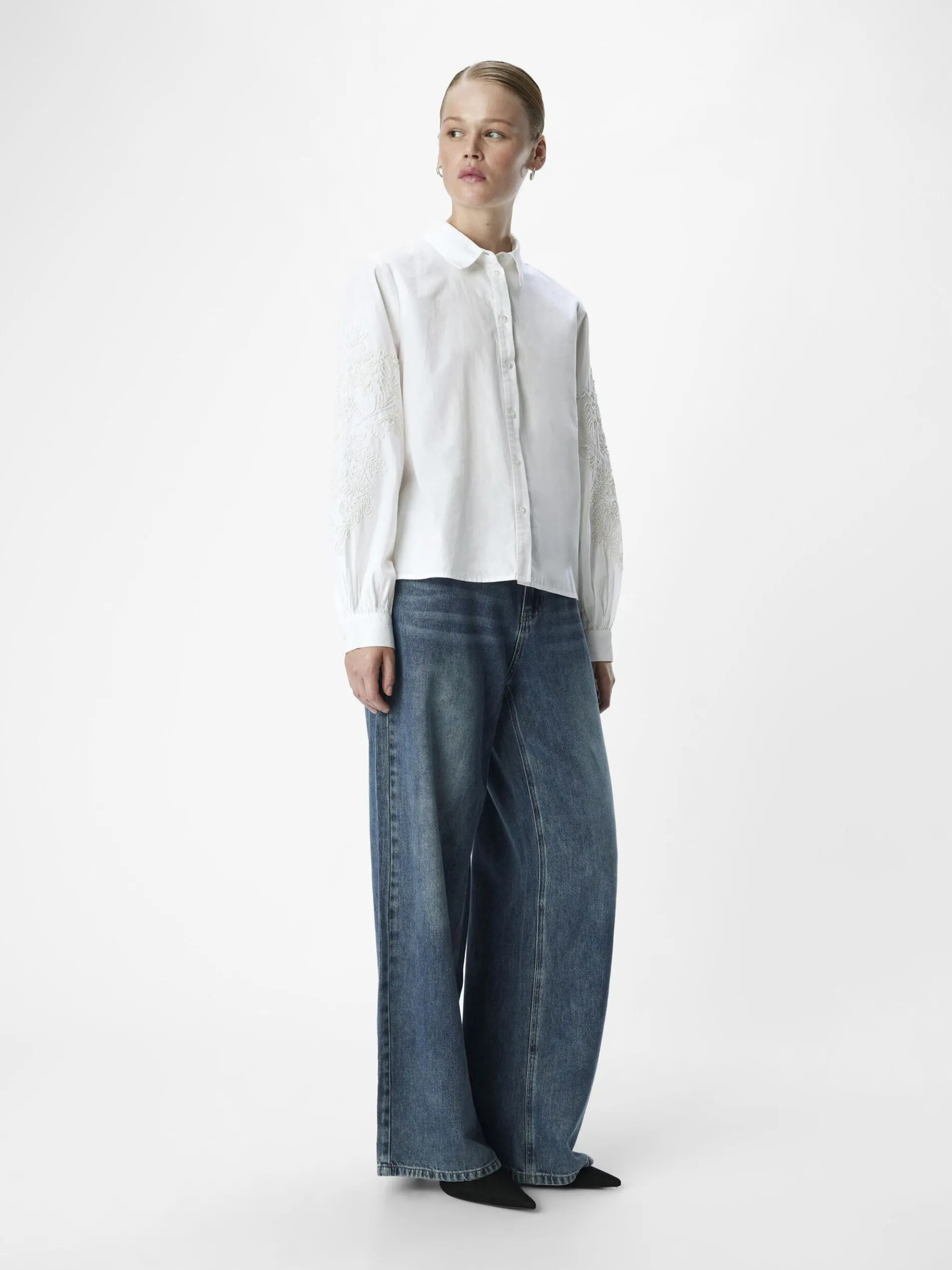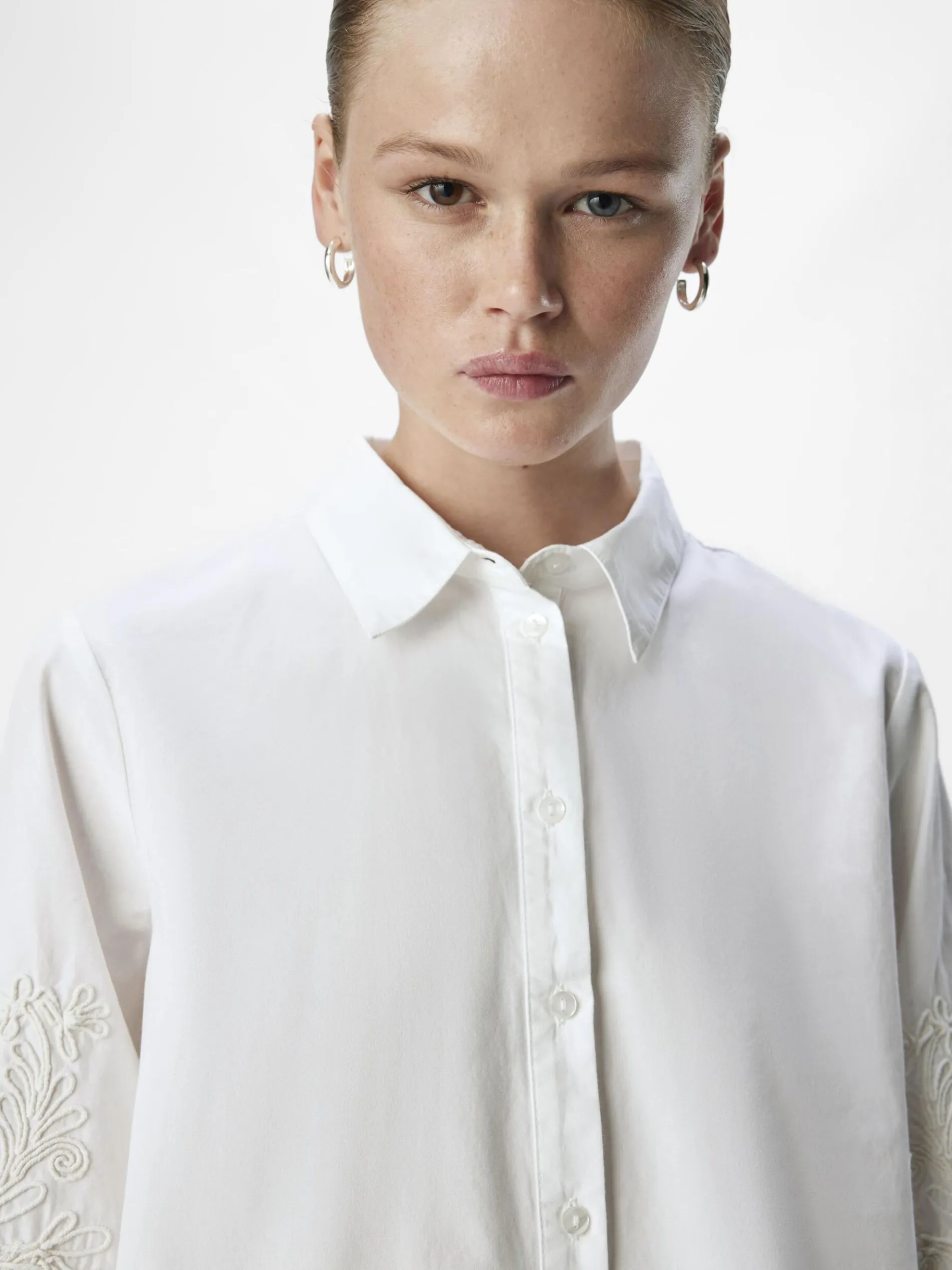 – Blouse met gebloemde borduring op de mouwen- Normale kraag- Lange volumineuze mouwen- Manchetten met knopen- Knoopsluiting aan de voorzijde- Loose fit