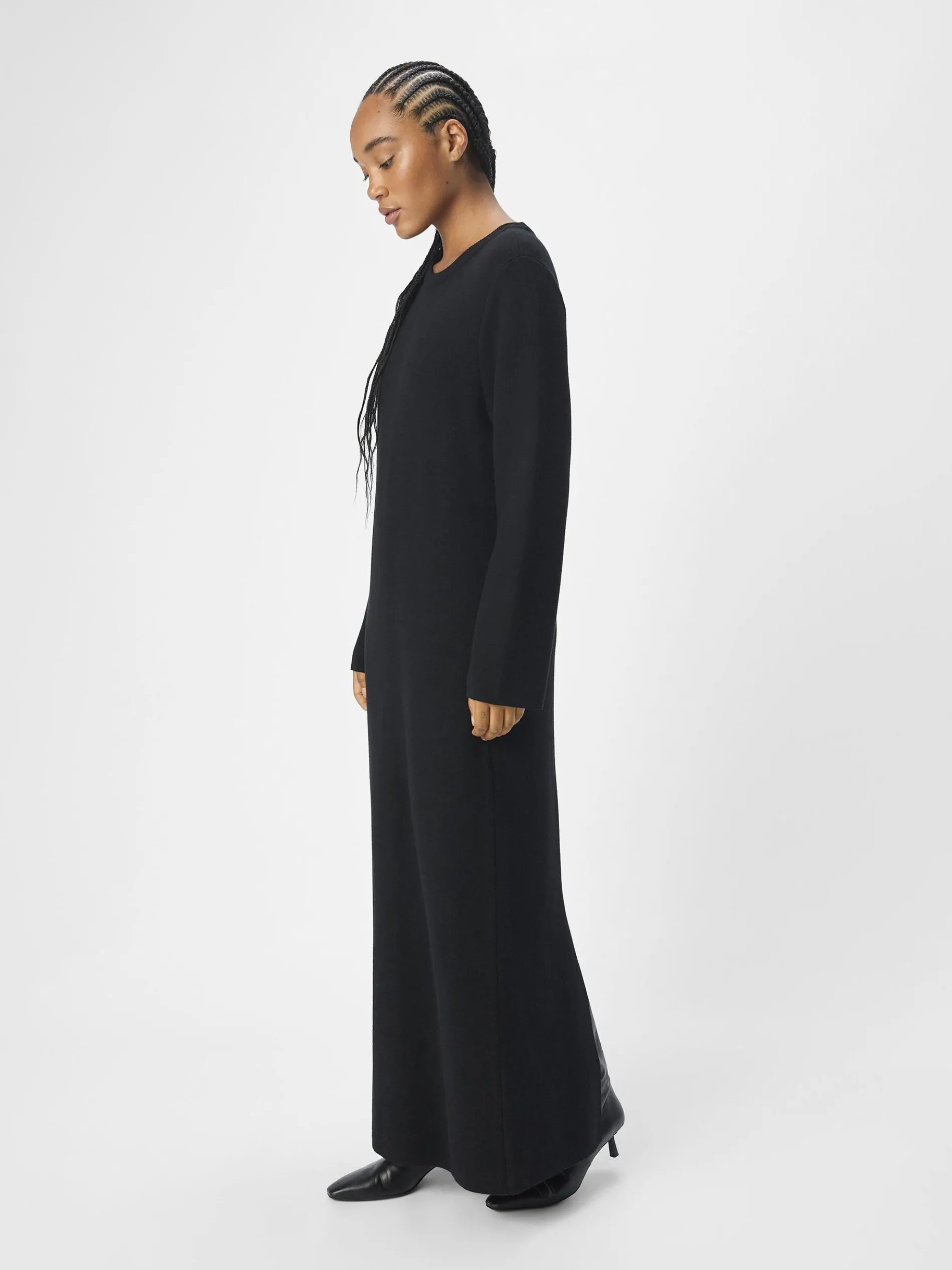 – Gebreide maxi-jurk- Ronde hals- Lange mouwen- A-line rok- Loose fit
