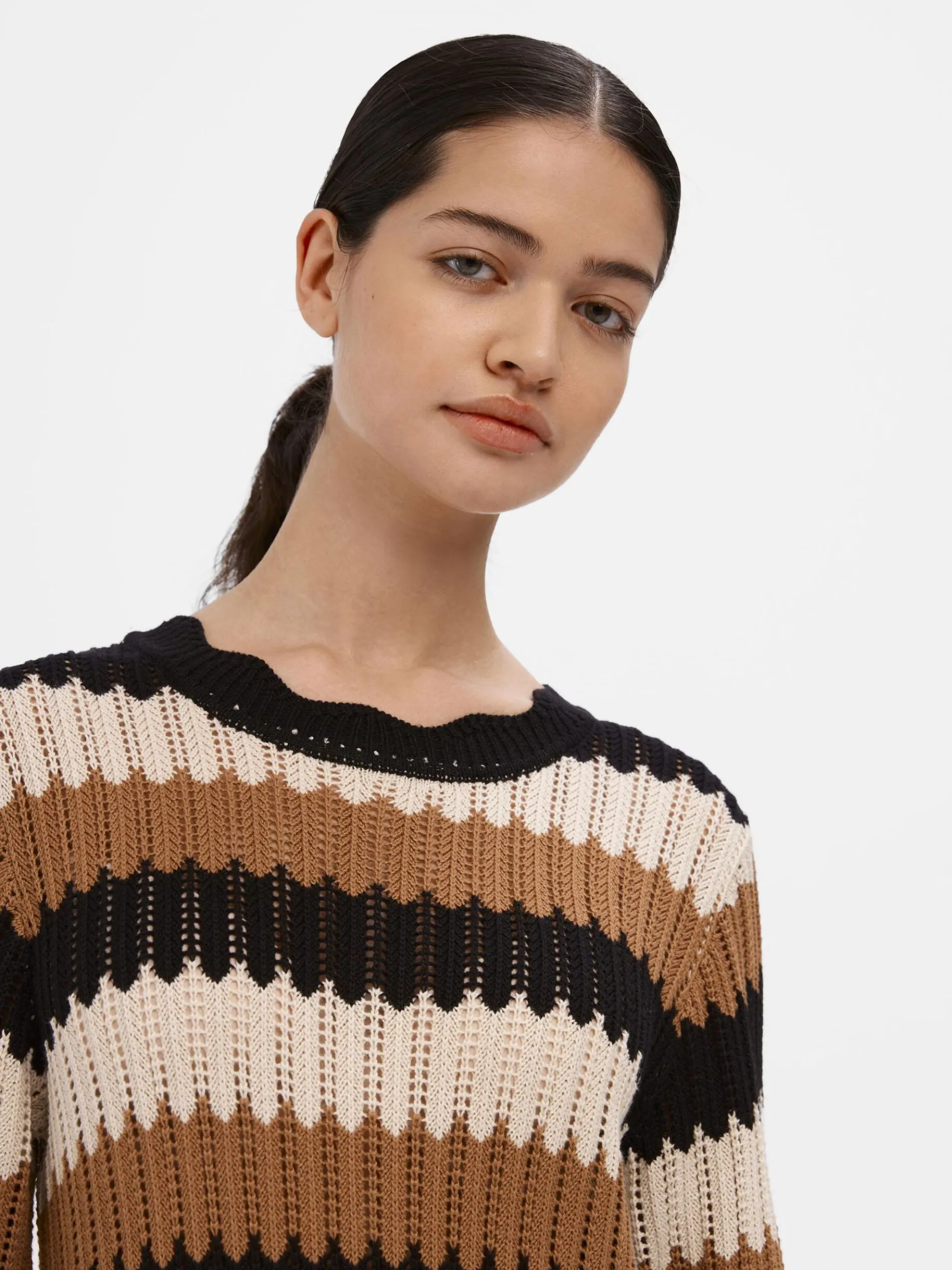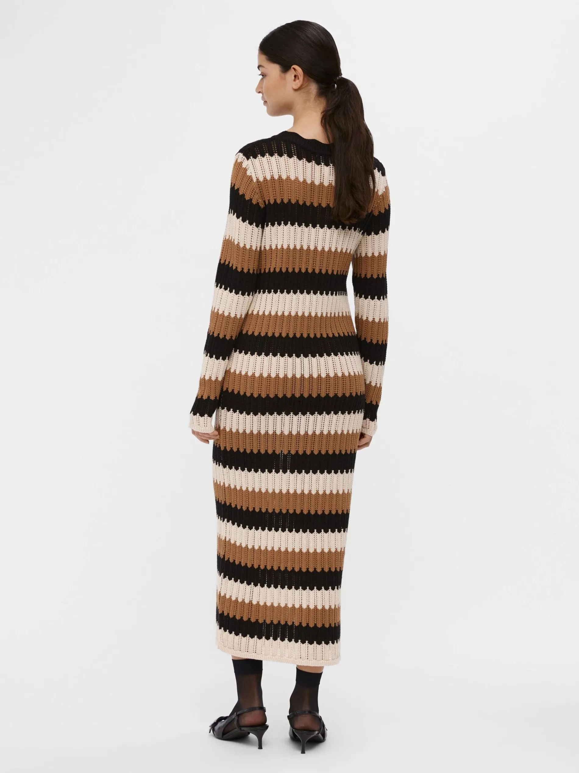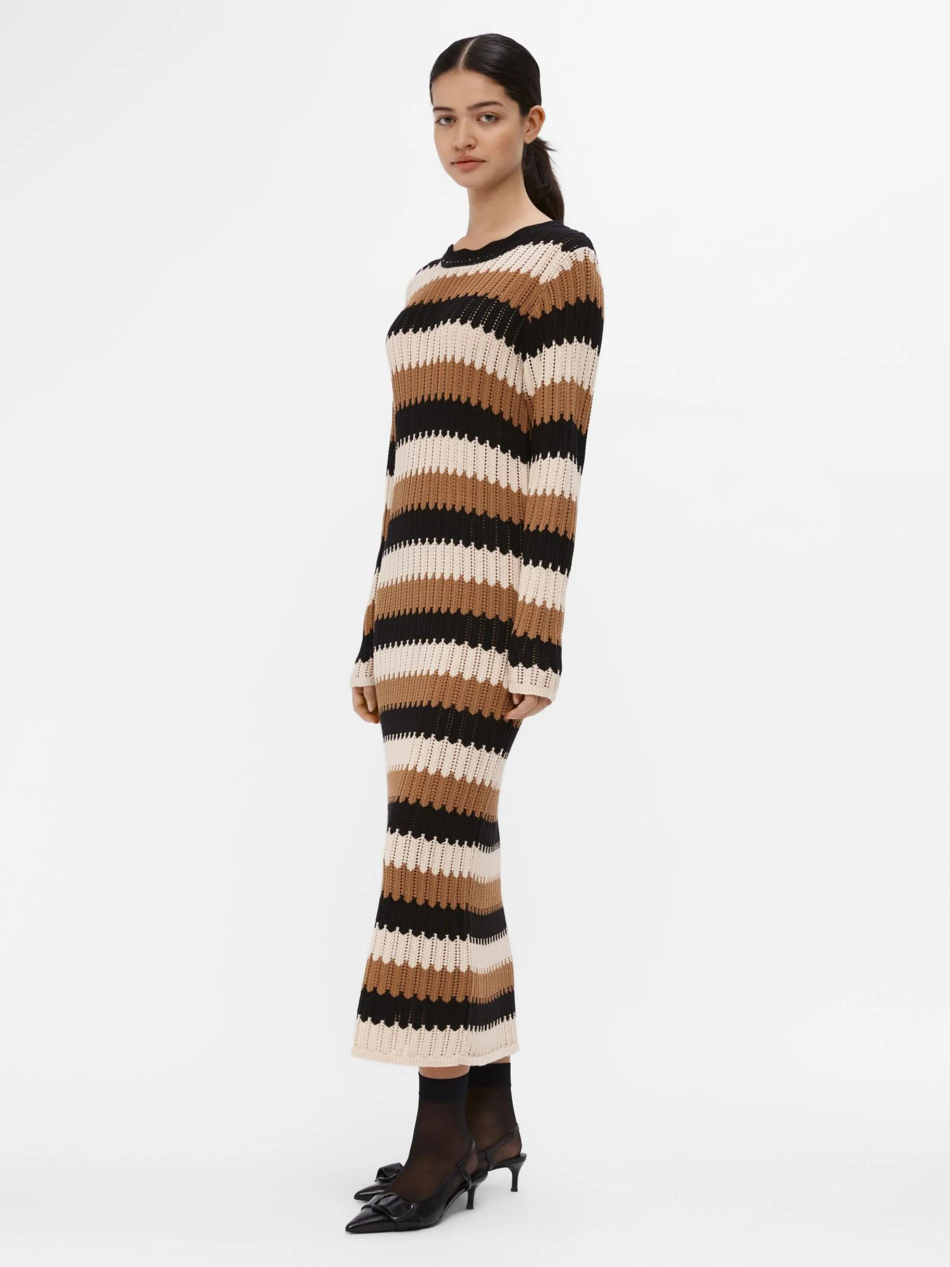 – Gestreepte knit maxi-jurk- Ronde hals met geschulpte rand- Lange mouwen- Slim fit