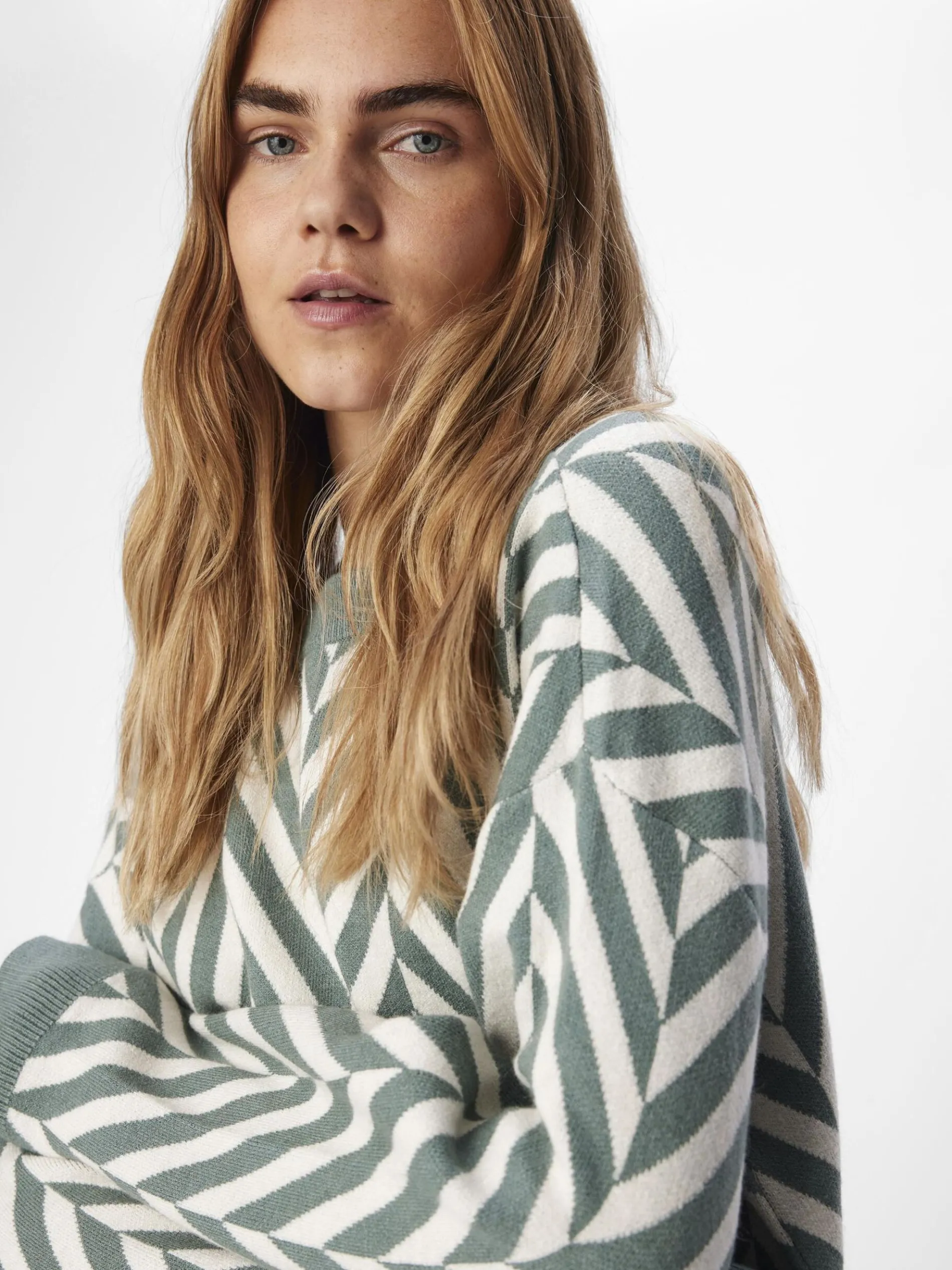 – Gebreide trui met intarsia design- Ronde hals- Lage schouders- Lange mouwen- Loose fit- Model draagt maat 36