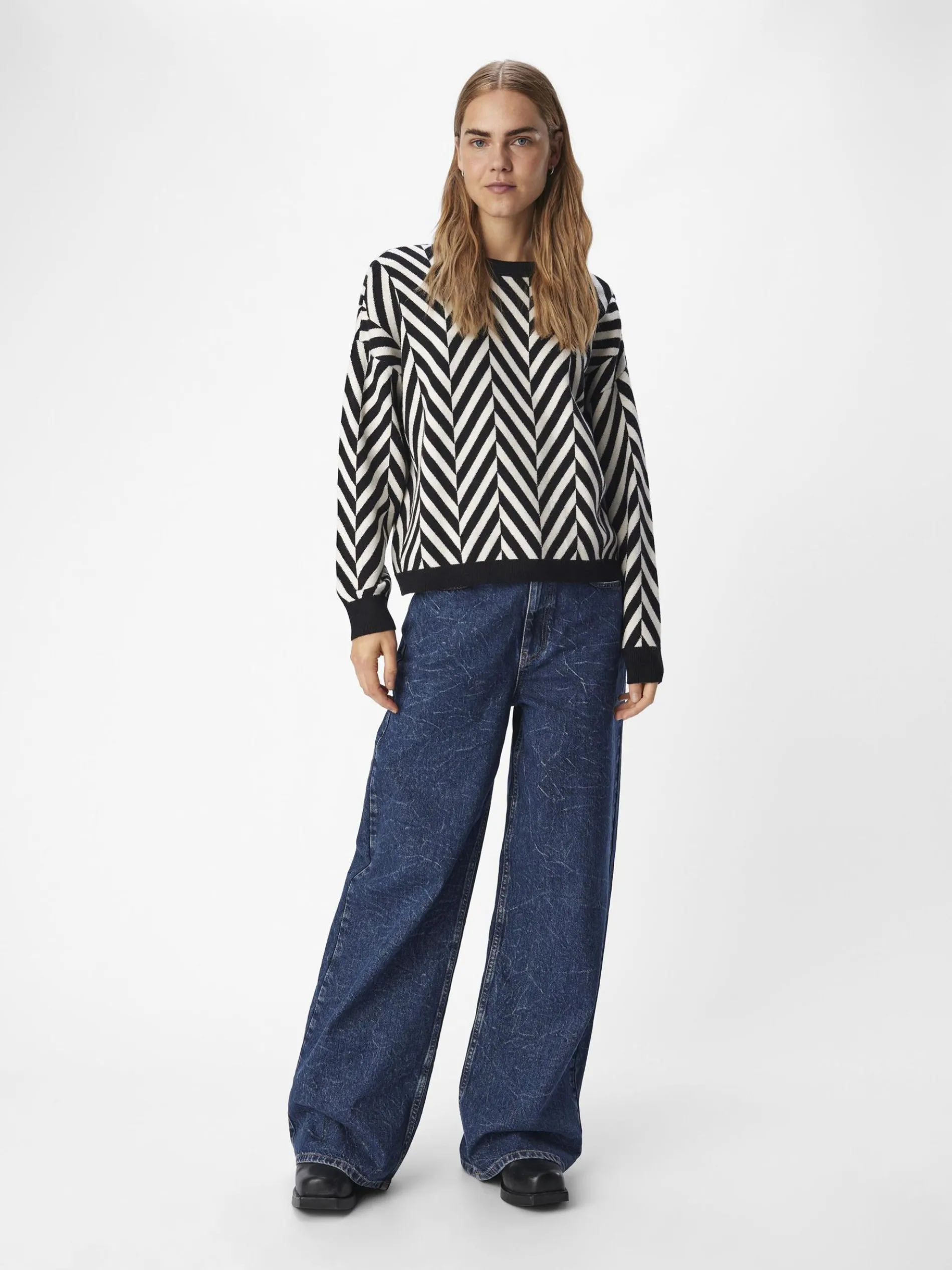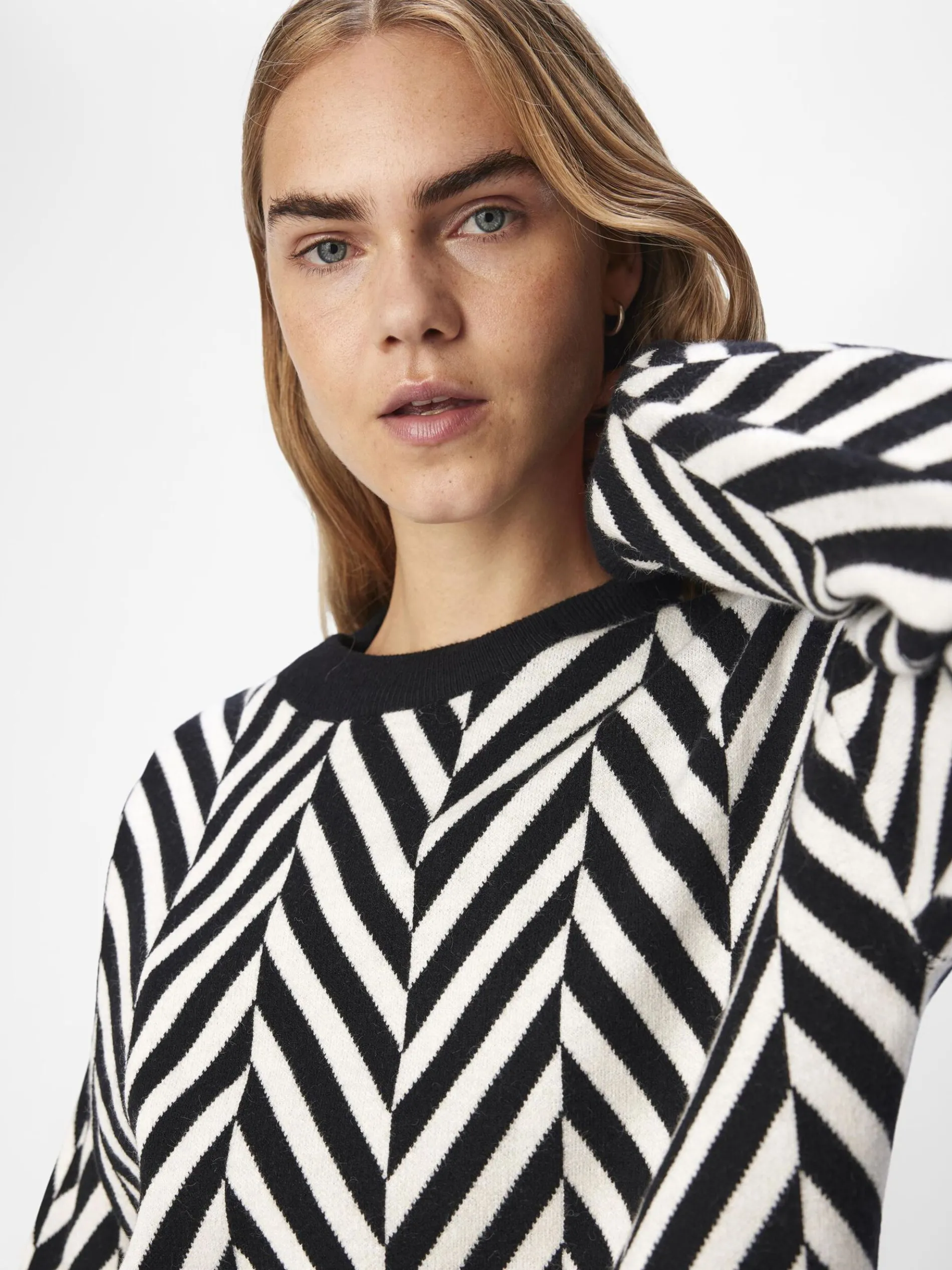 – Gebreide trui met intarsia design- Ronde hals- Lage schouders- Lange mouwen- Loose fit- Model draagt maat 36