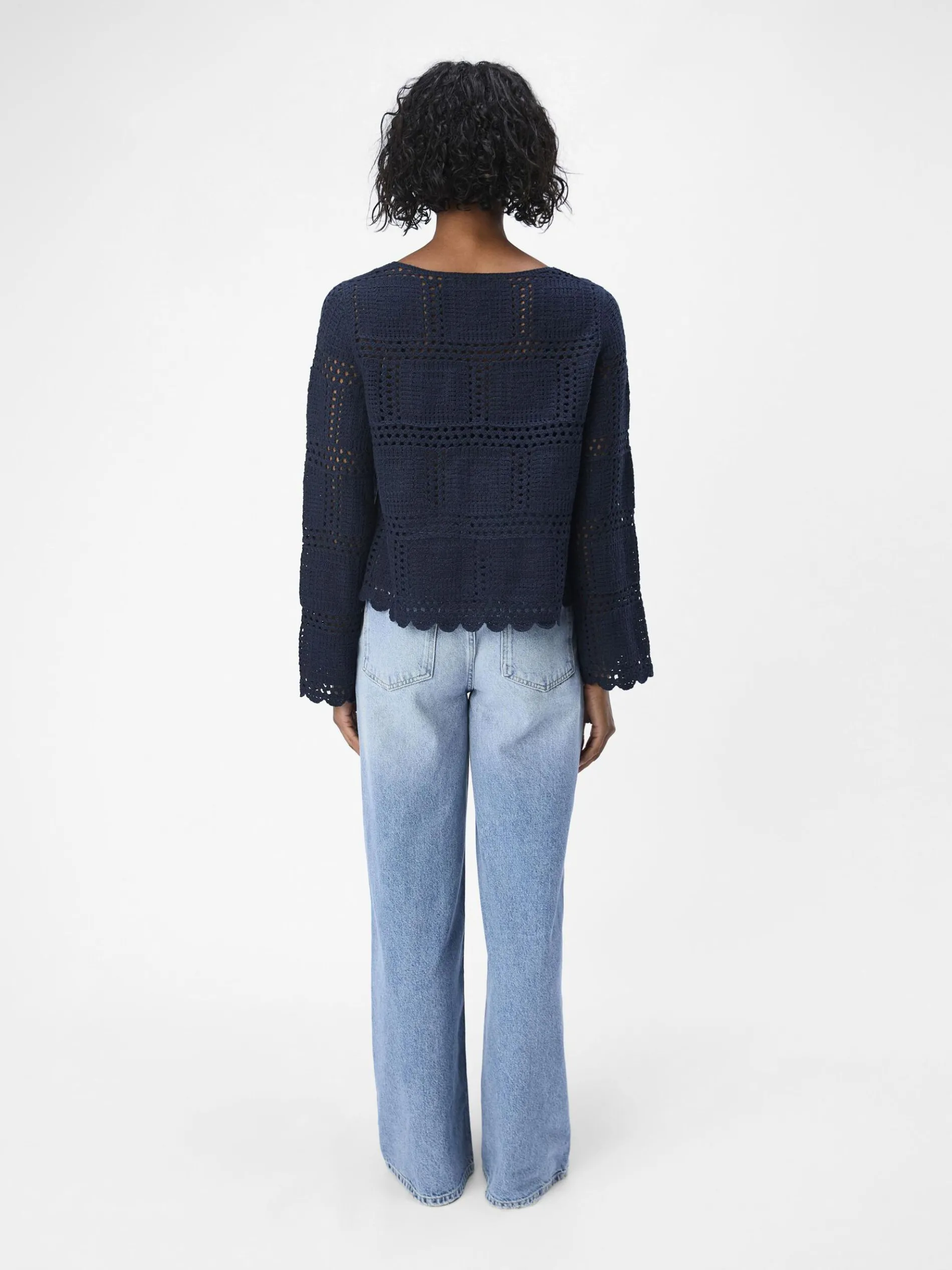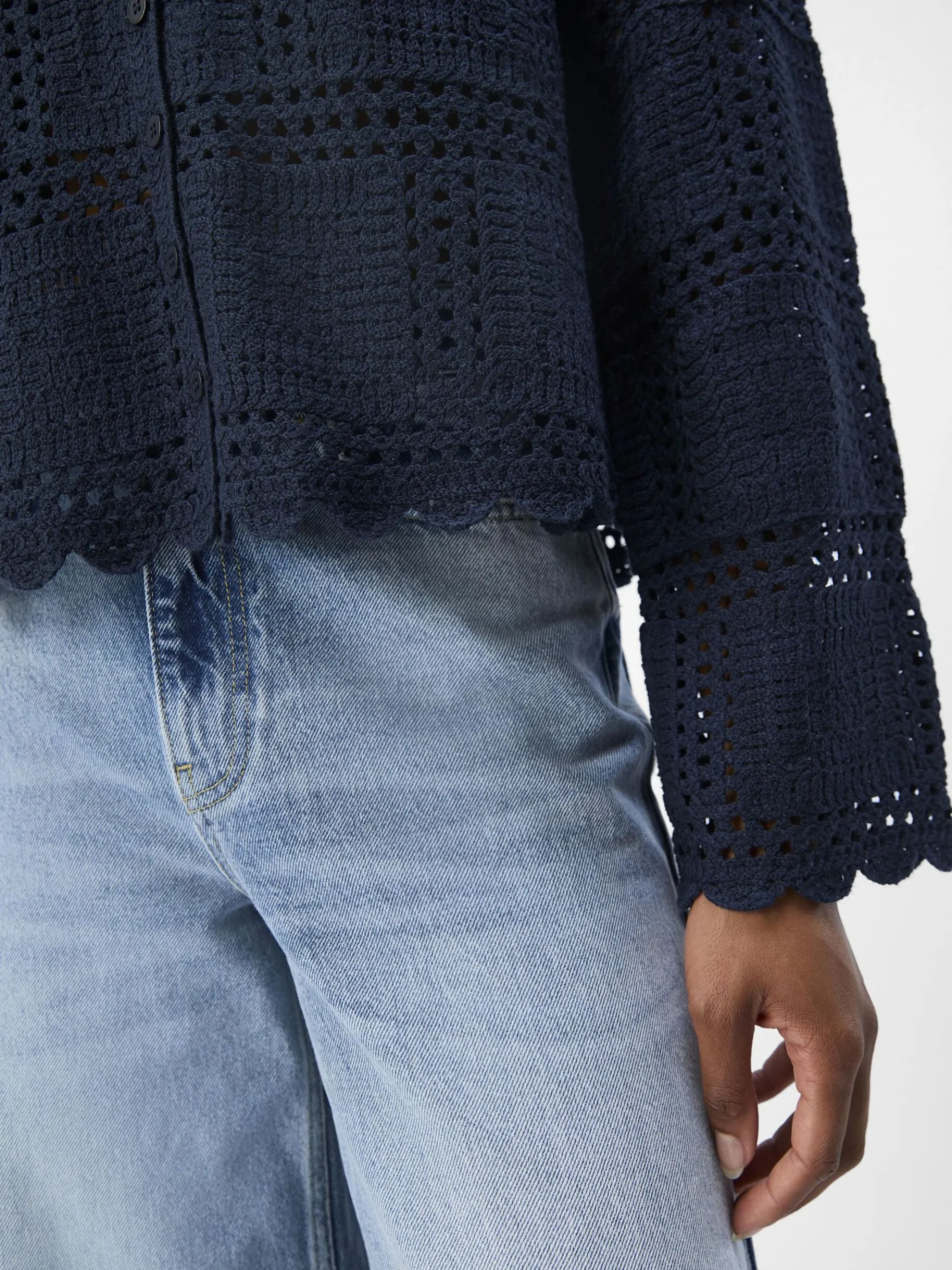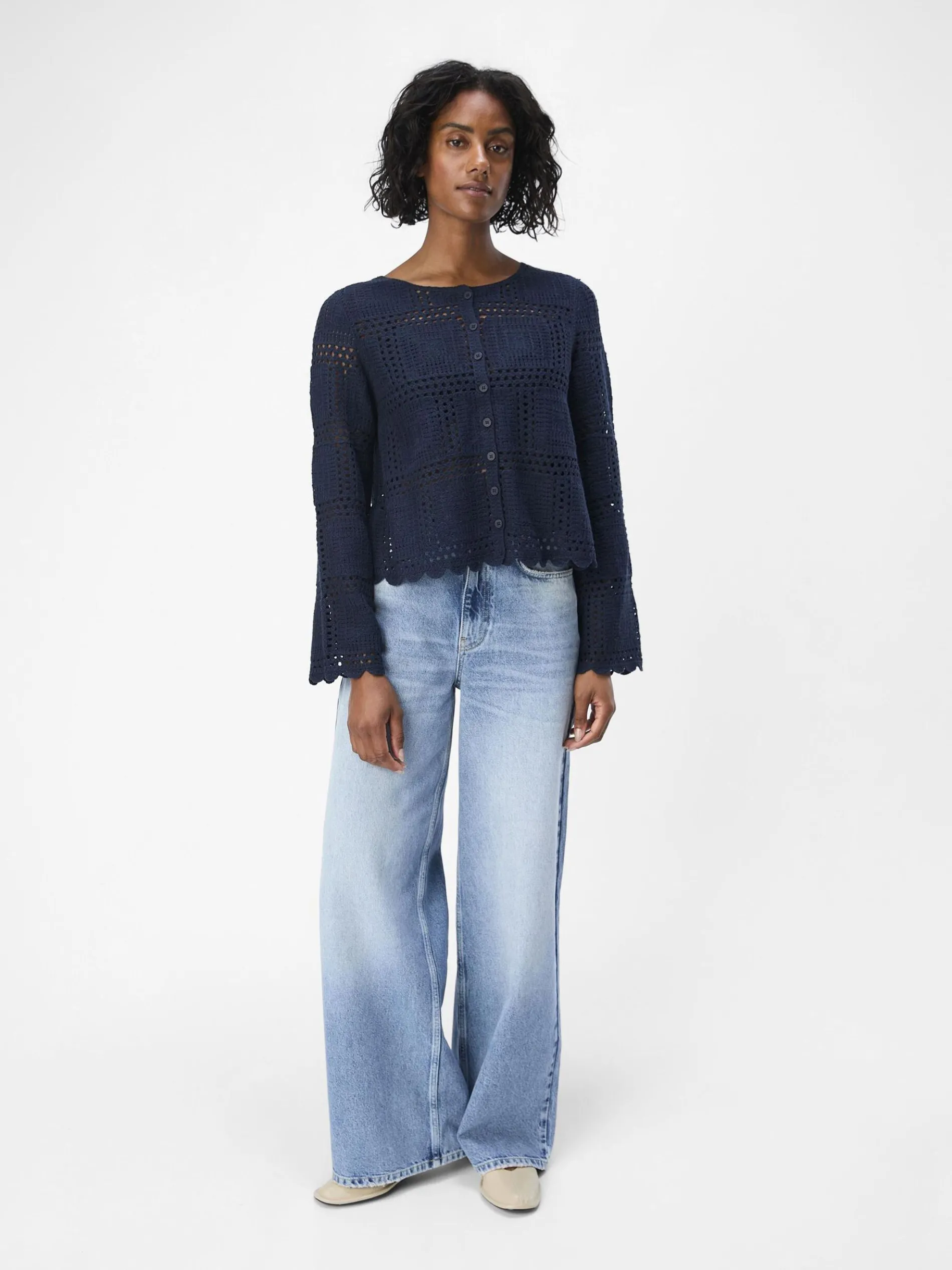 – Open gebreide top- Geschulpte randen- Lange mouwen- Knoopsluiting aan de voorkant- Regular fit