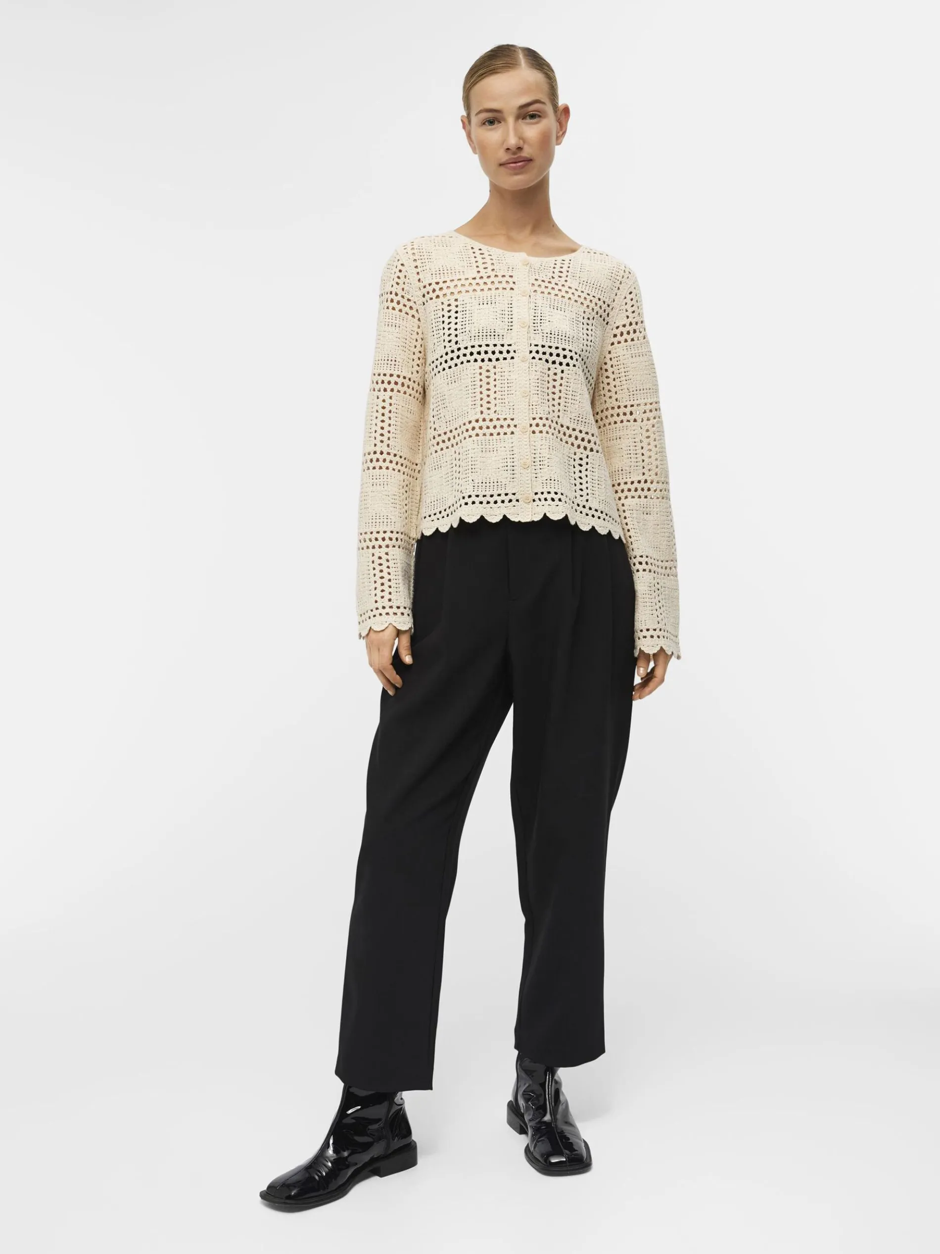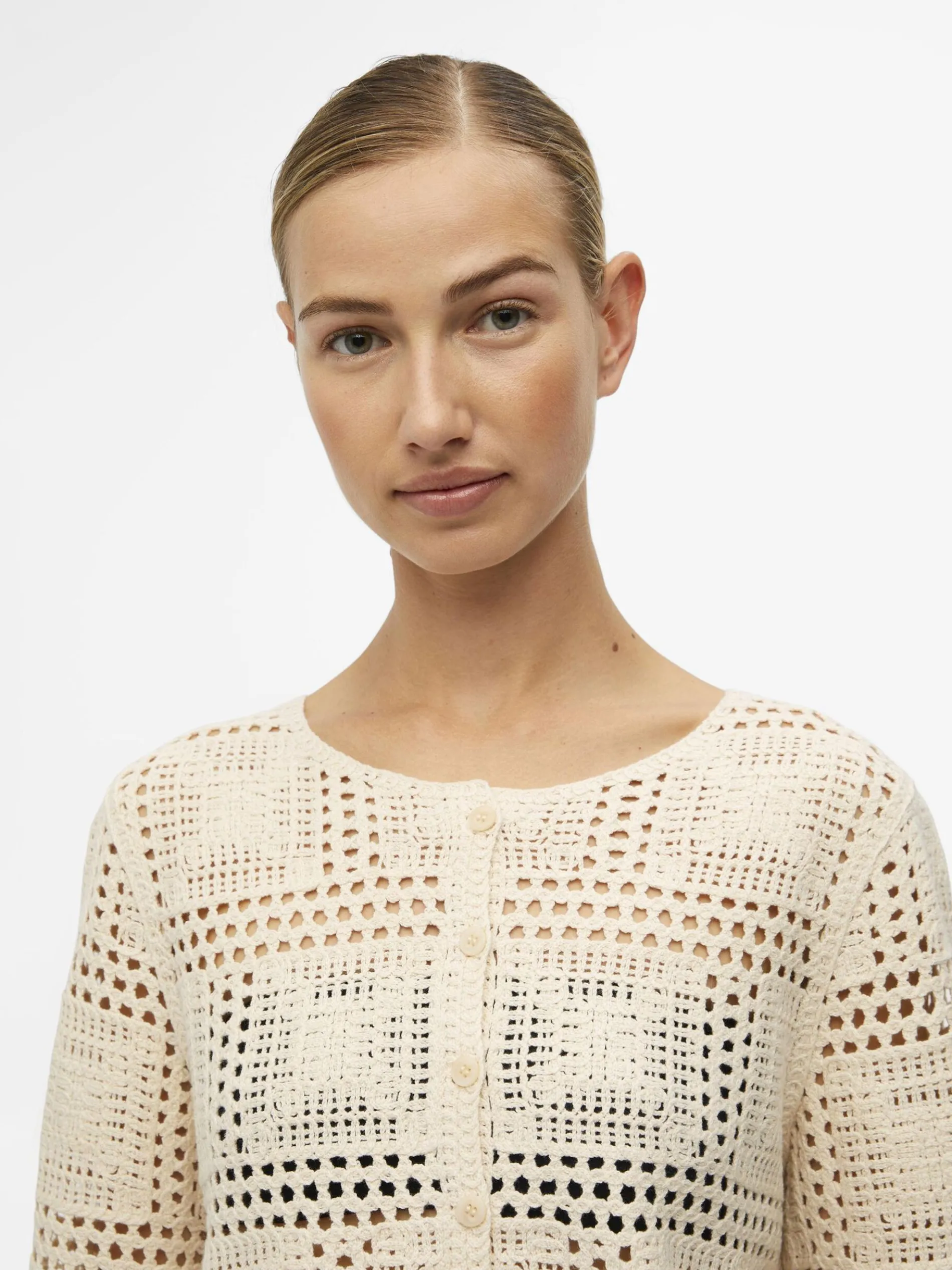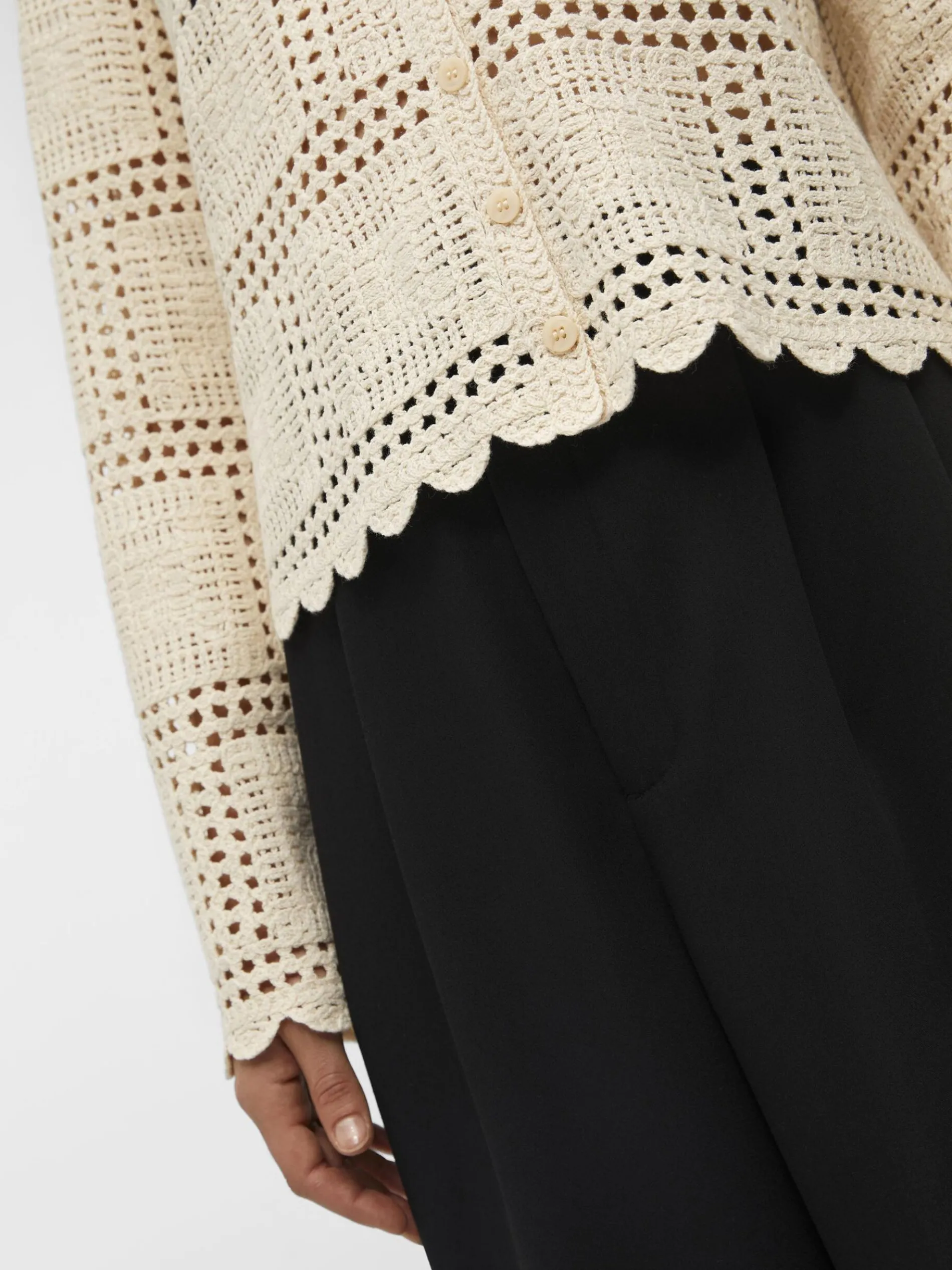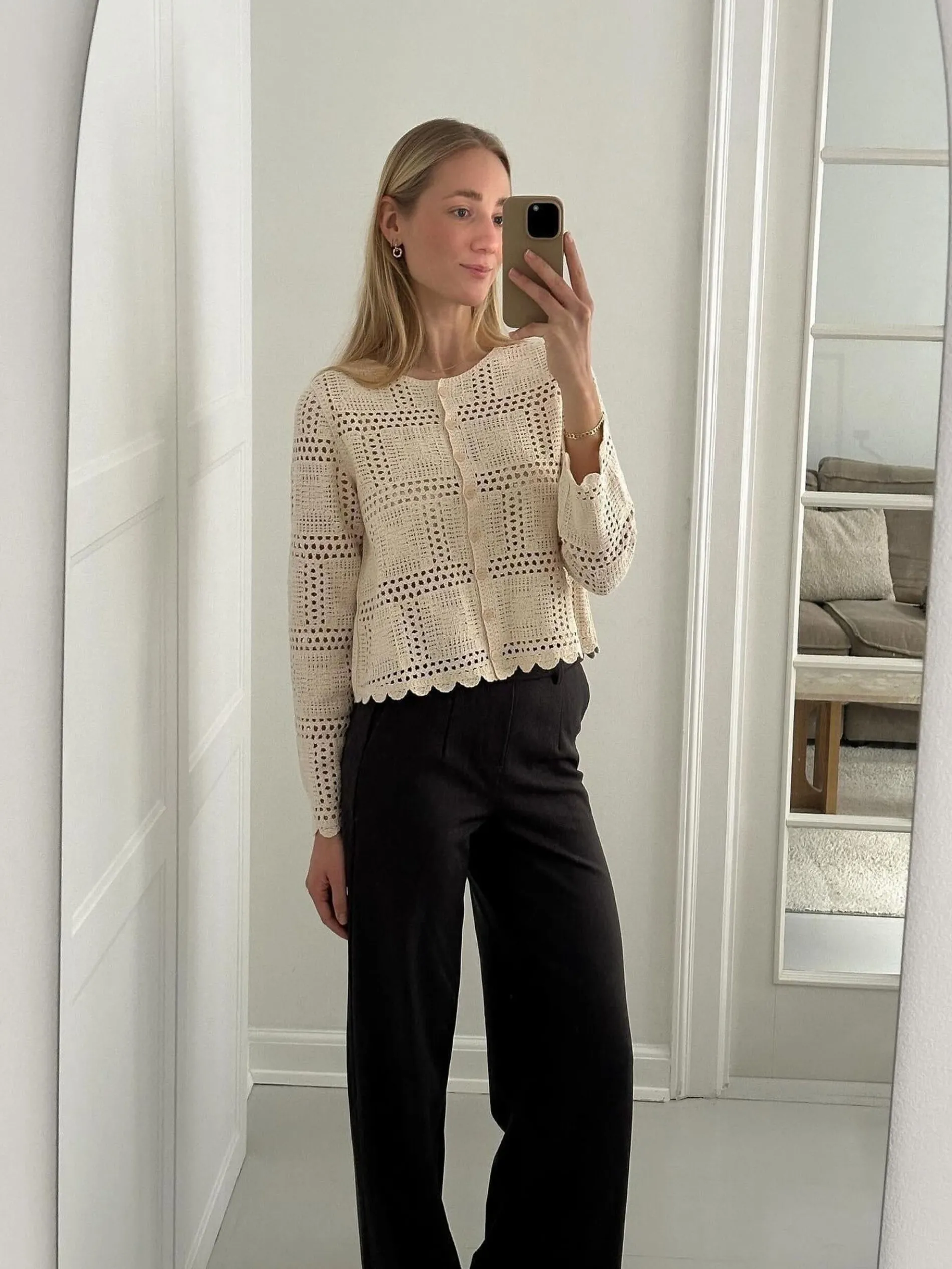 – Open gebreide top- Geschulpte randen- Lange mouwen- Knoopsluiting aan de voorkant- Regular fit