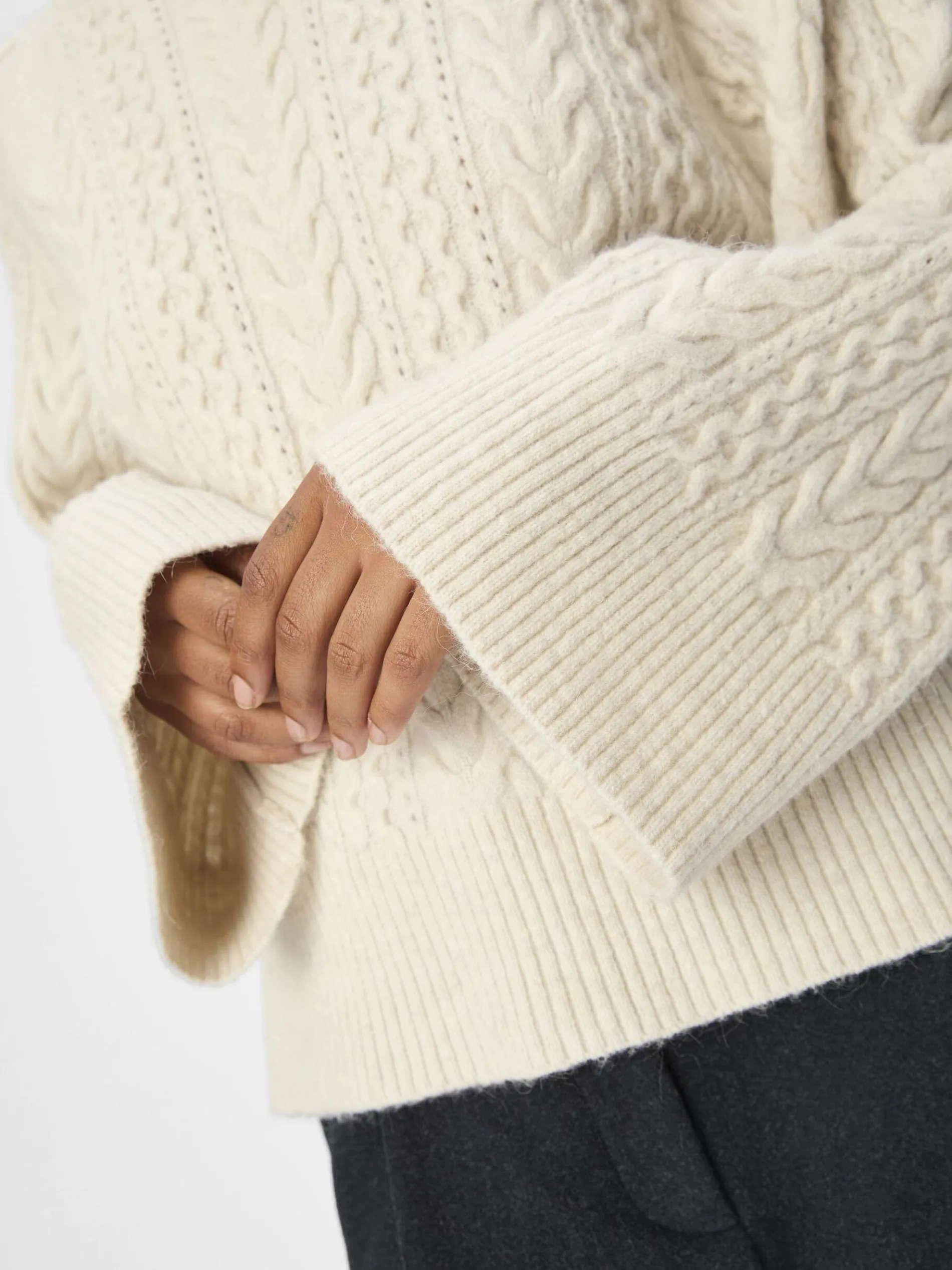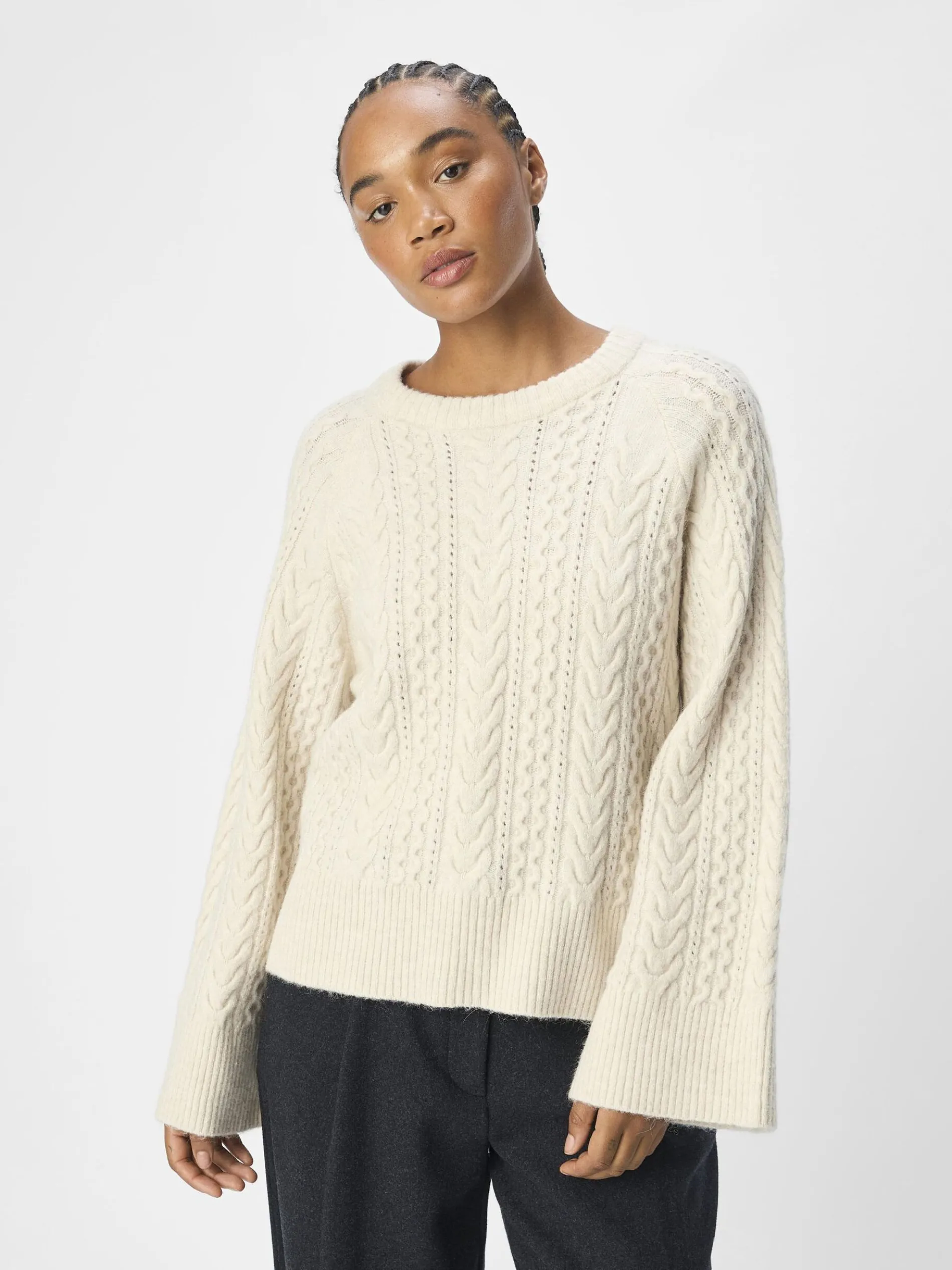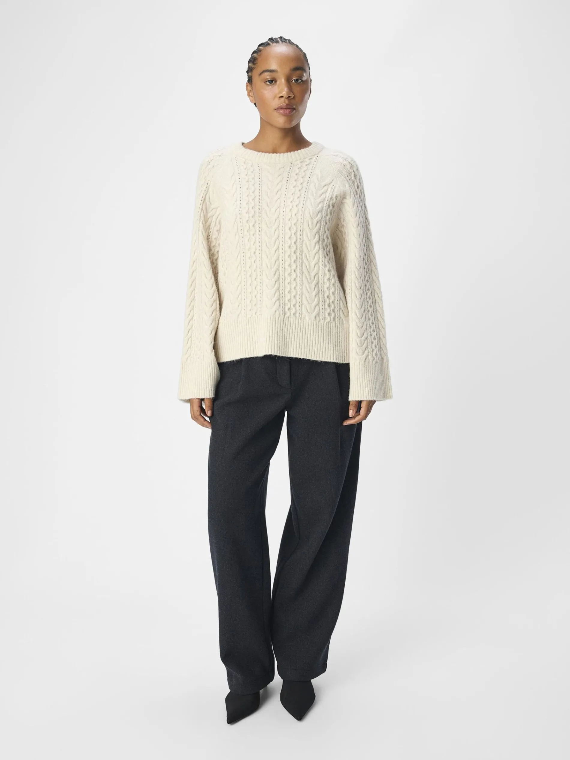 – Gebreide kabeltrui- Ronde hals- Raglanschouders- Lange mouwen- Geribde boorden- Regular fit