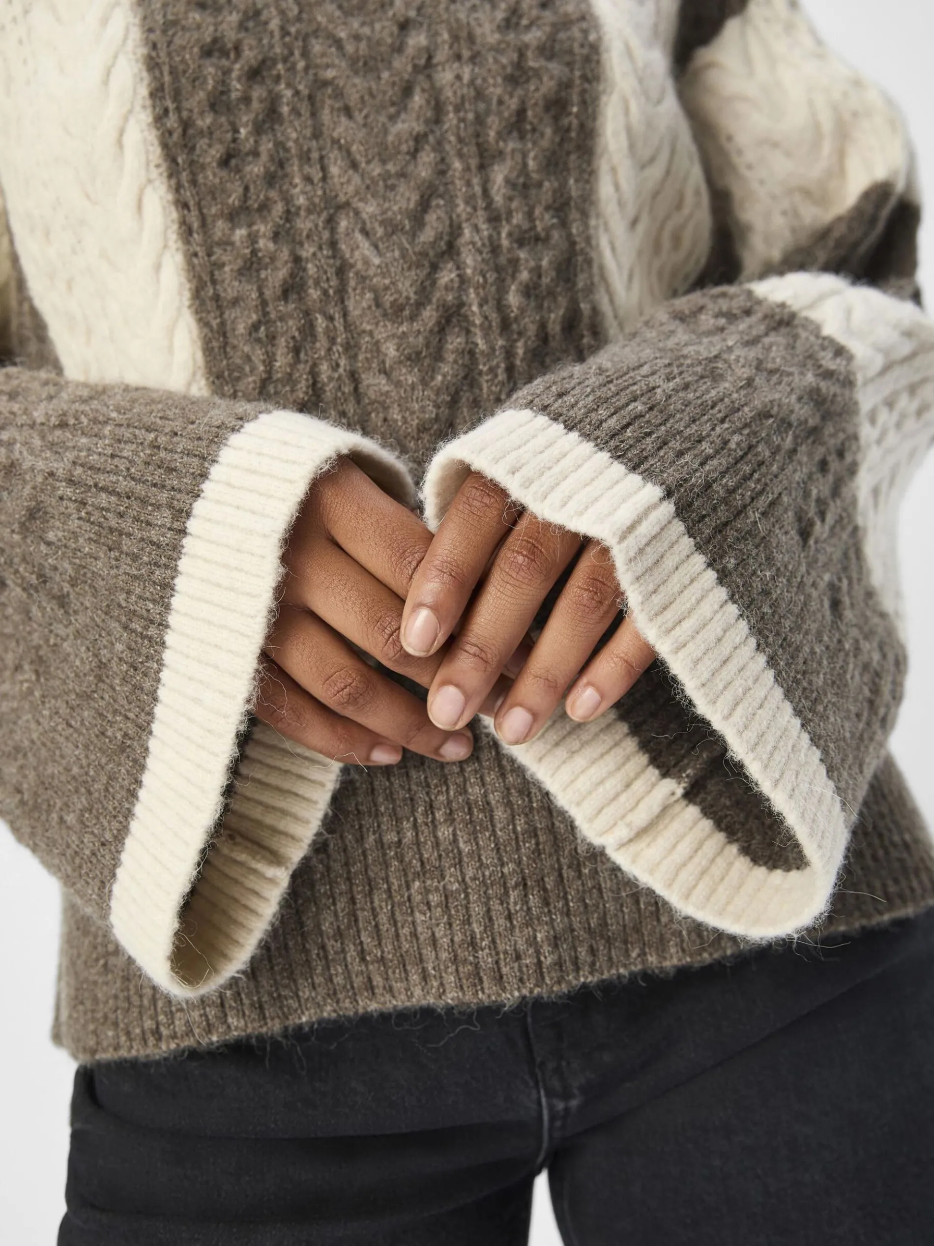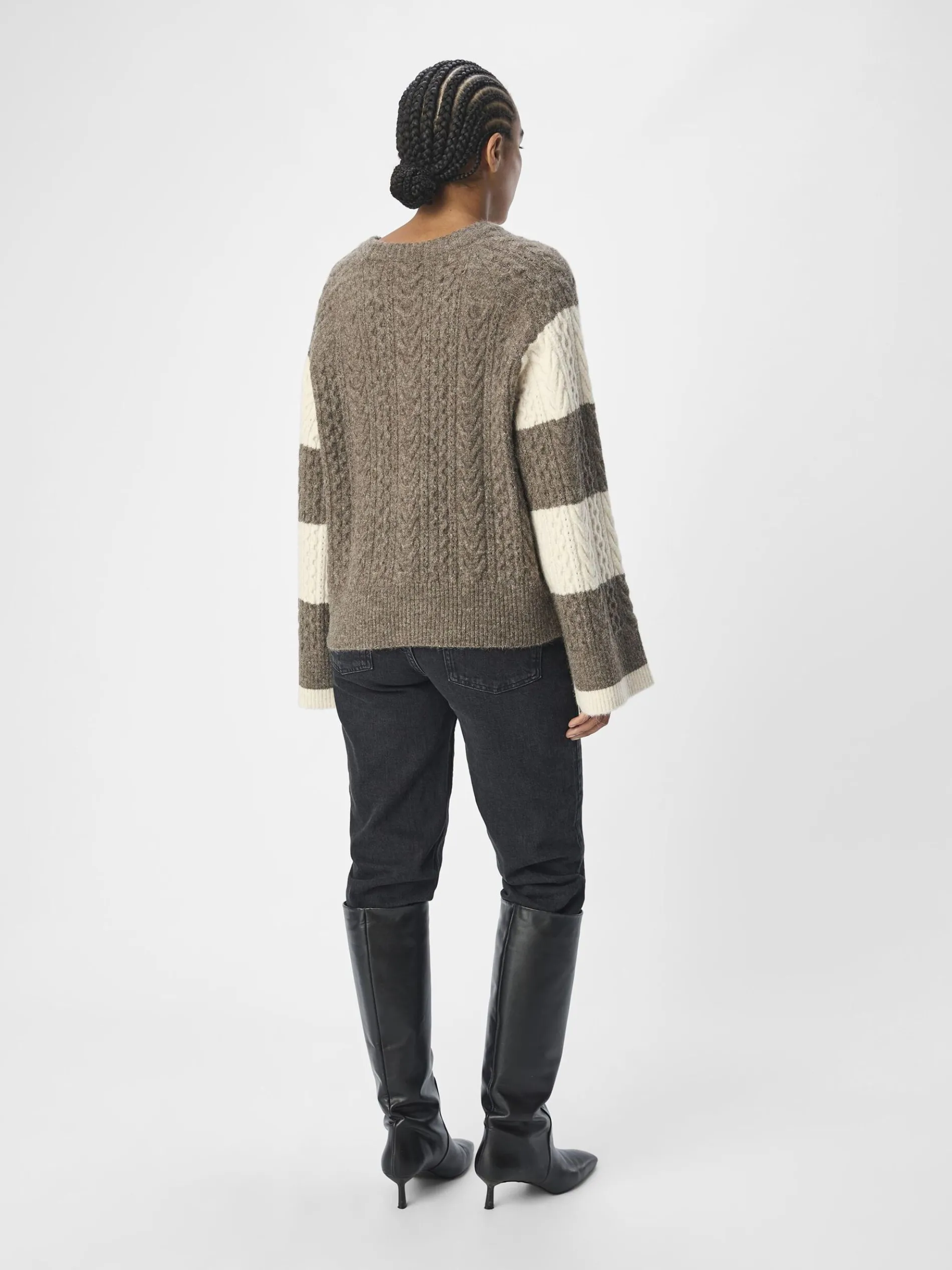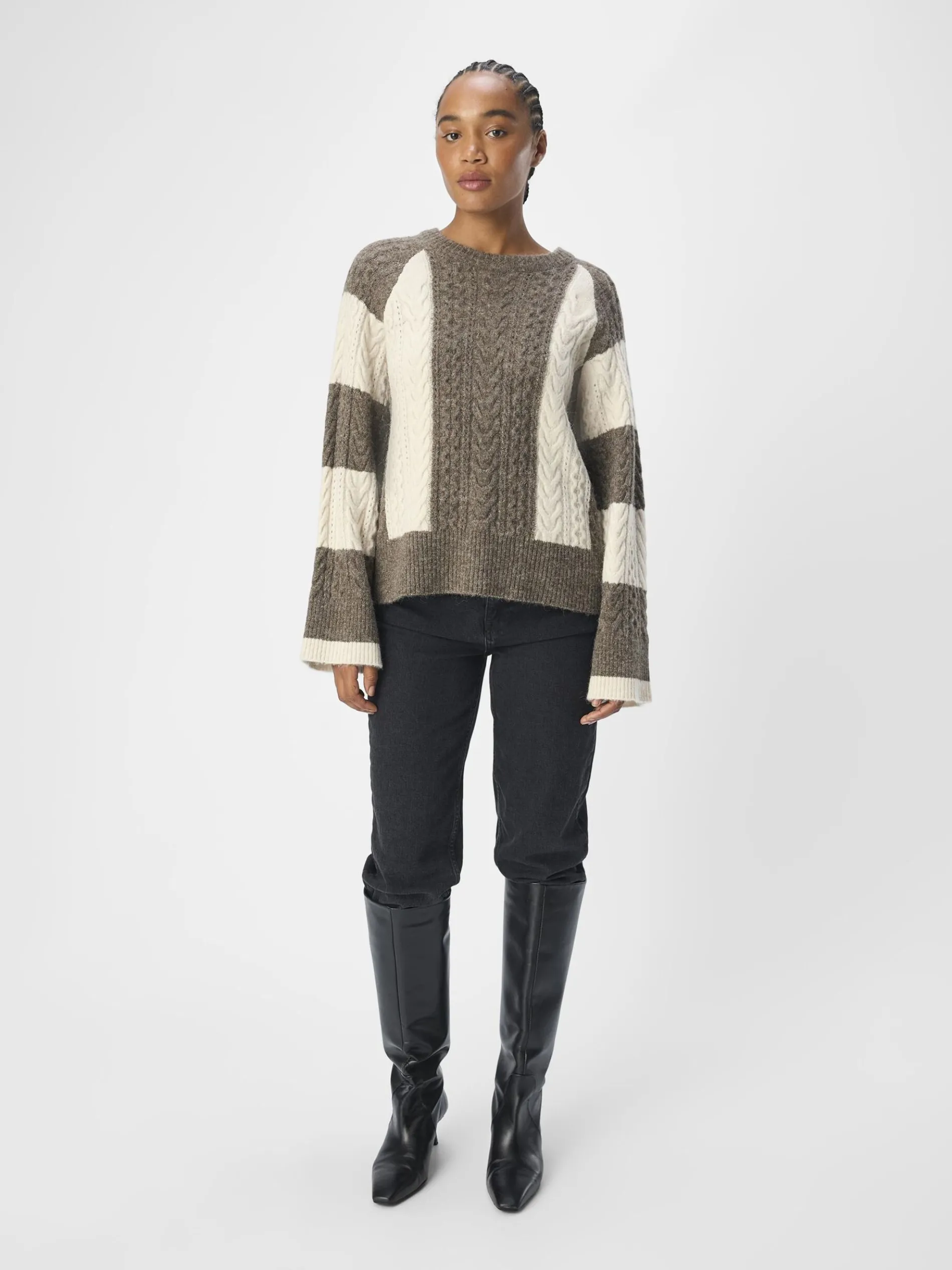 – Gebreide kabeltrui- Ronde hals- Raglanschouders- Lange mouwen- Geribde boorden- Regular fit
