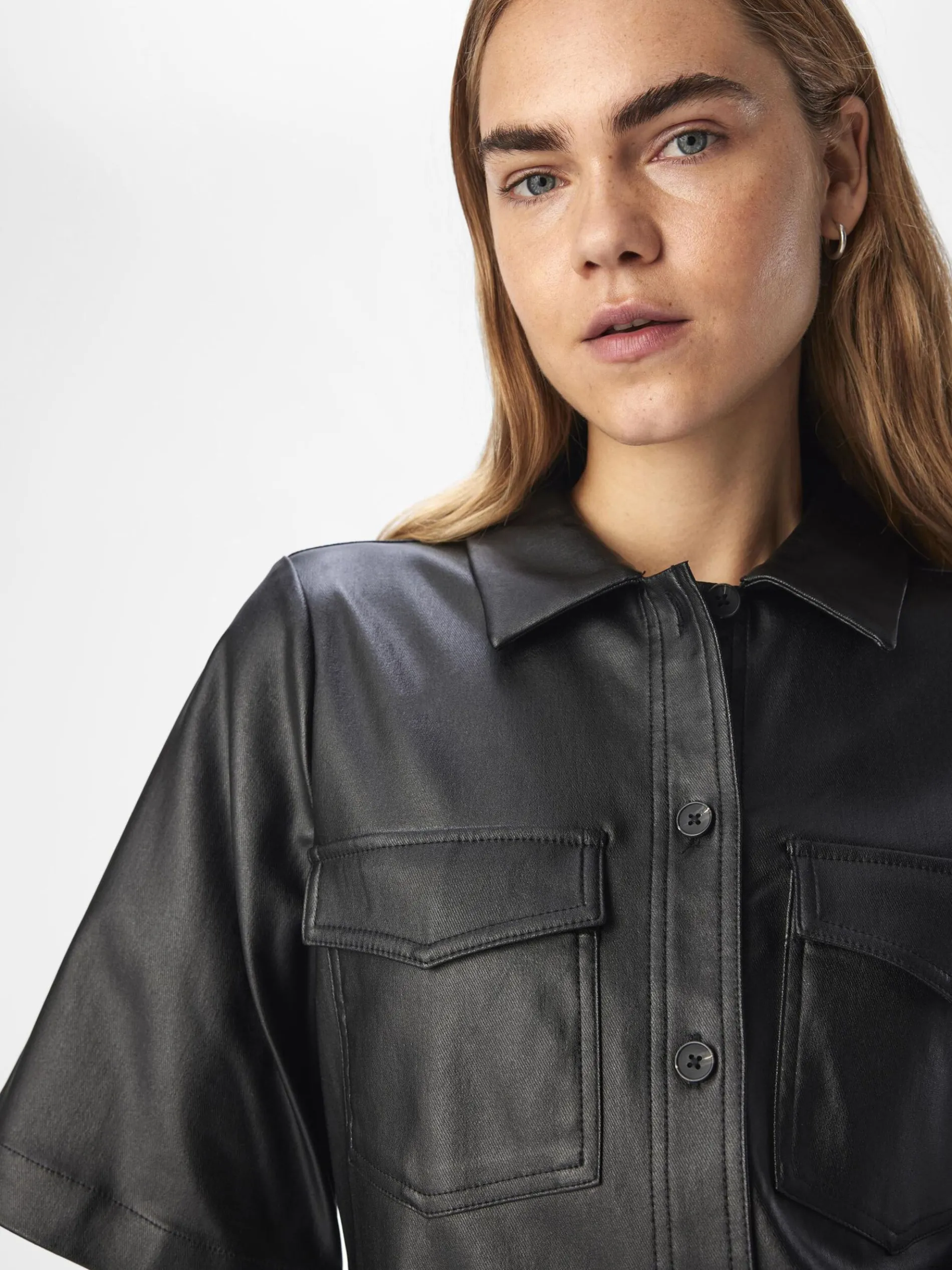 – Gecoate mini blousejurk- Normale kraag- Korte, wijd uitlopende mouwen- Knoopsluiting aan de voorkant- Opgestikte borstzakken- Regular fit