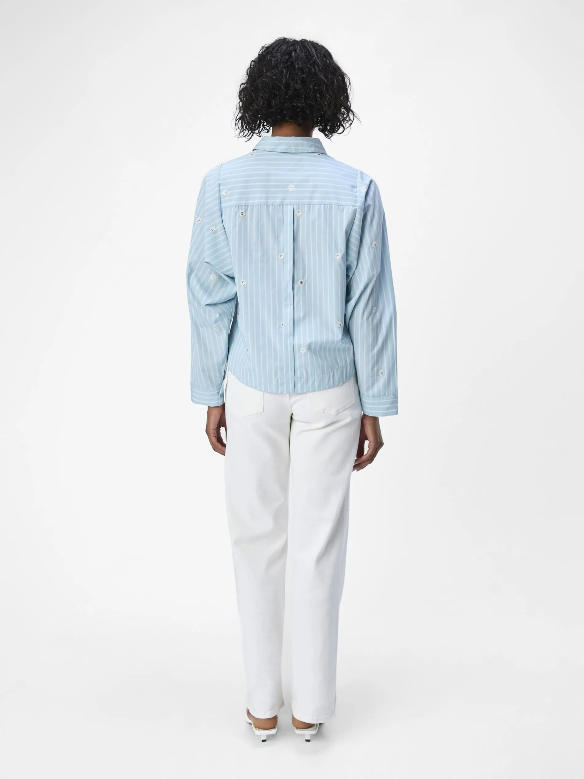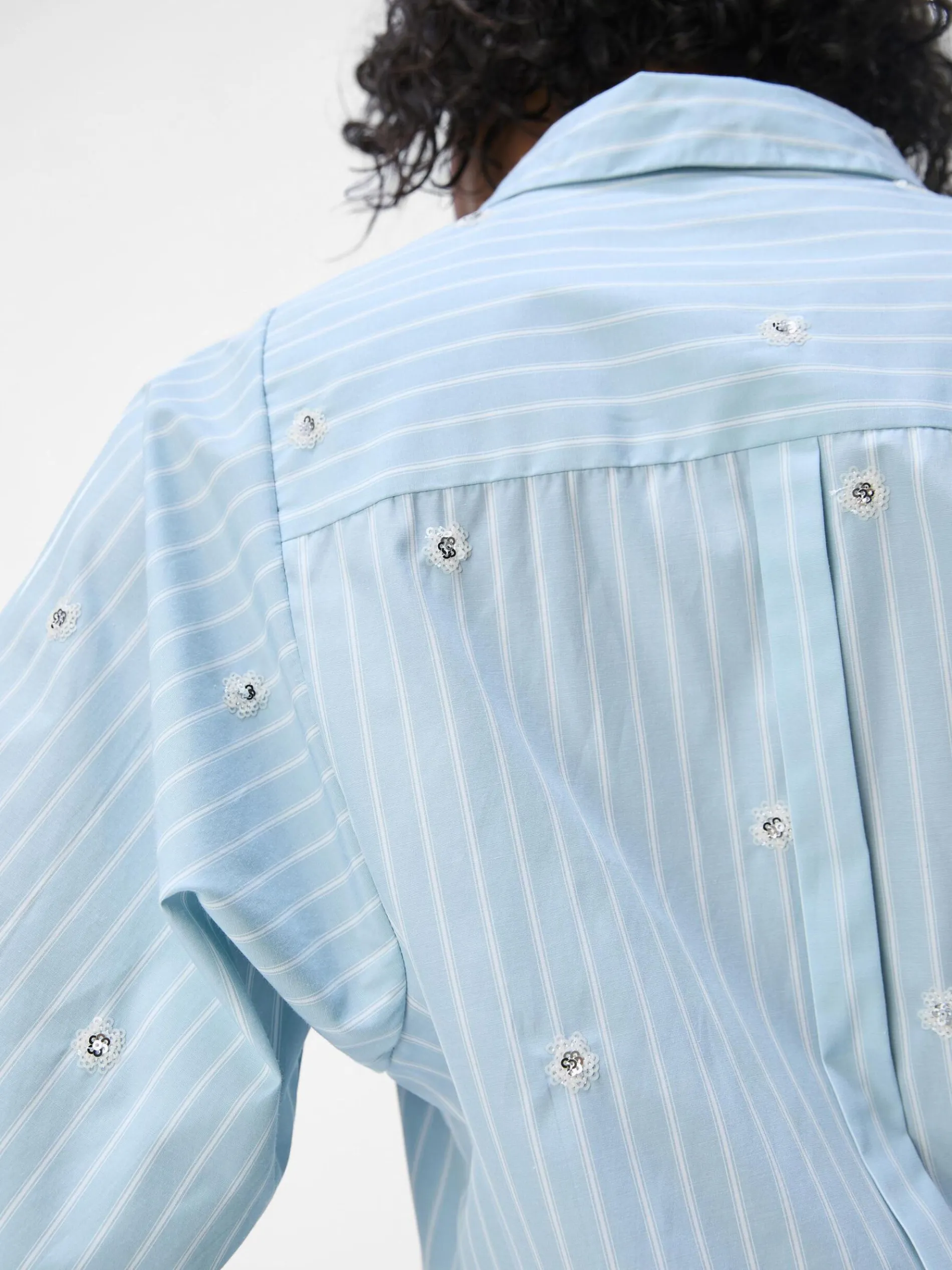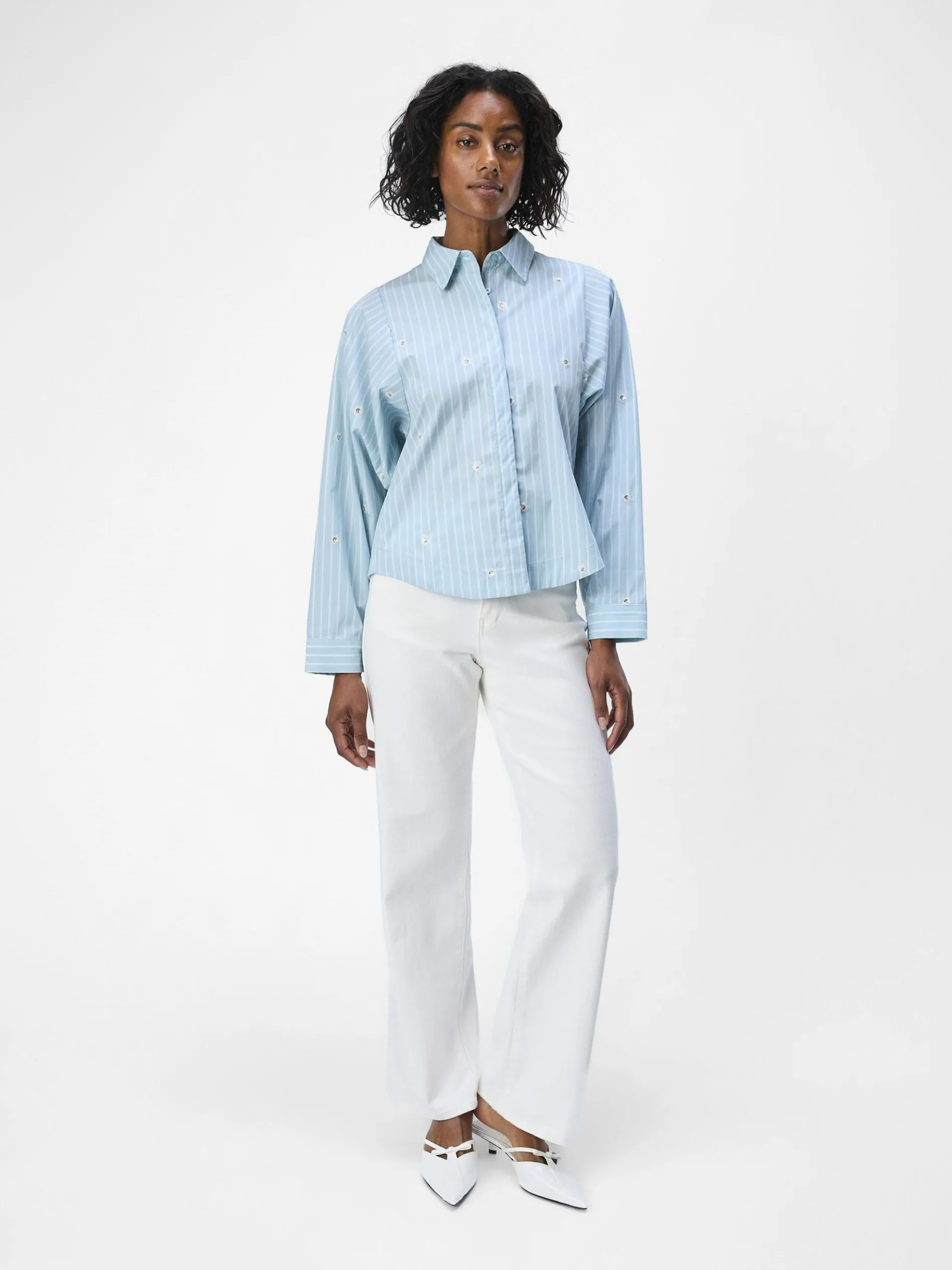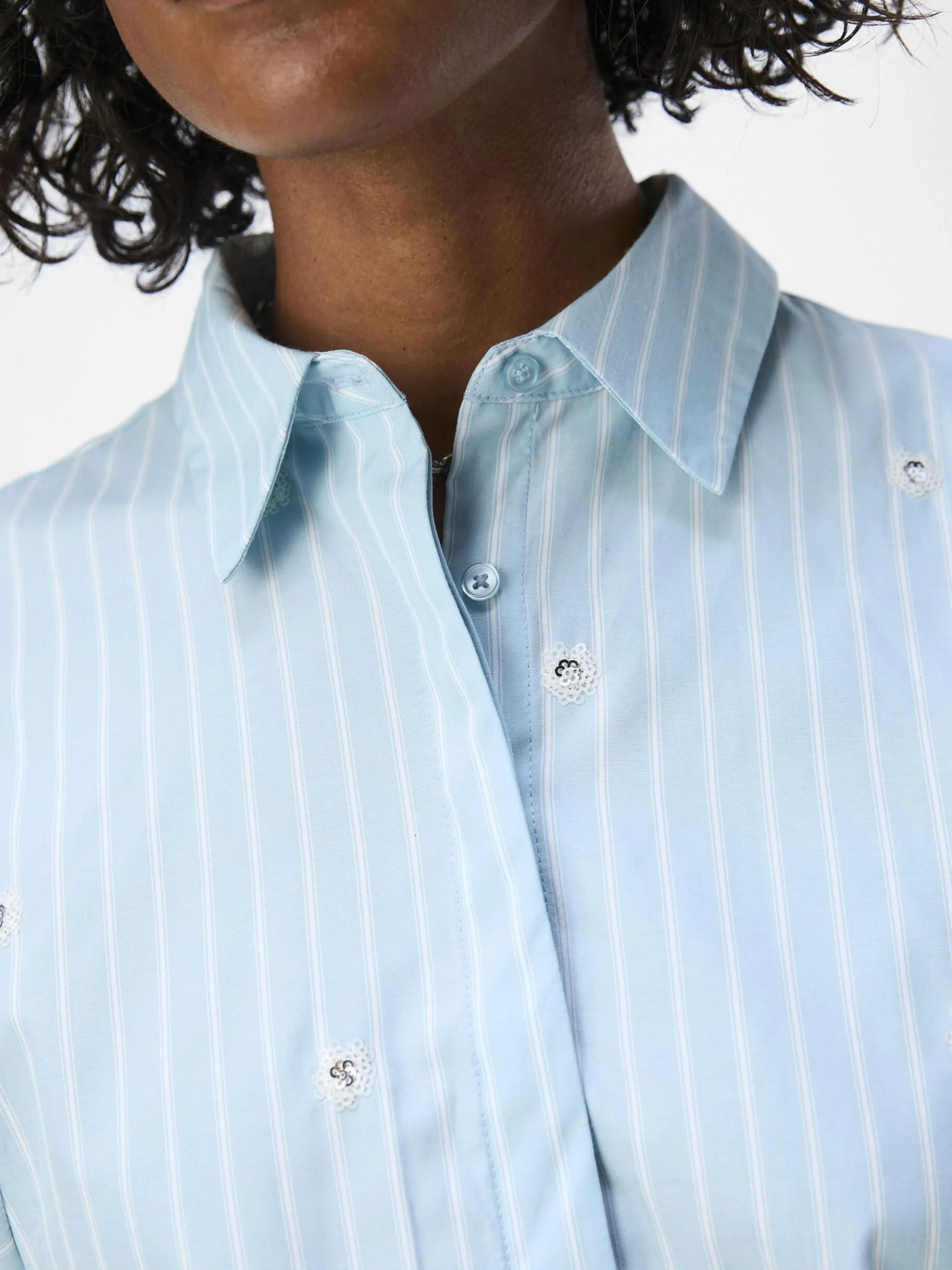 – Blouse met lange mouwen en details- Gestreept design- All-over bloemenborduring- Normale kraag- Manchetten met knopen- Blinde knoopsluiting aan de voorkant- Regular fit