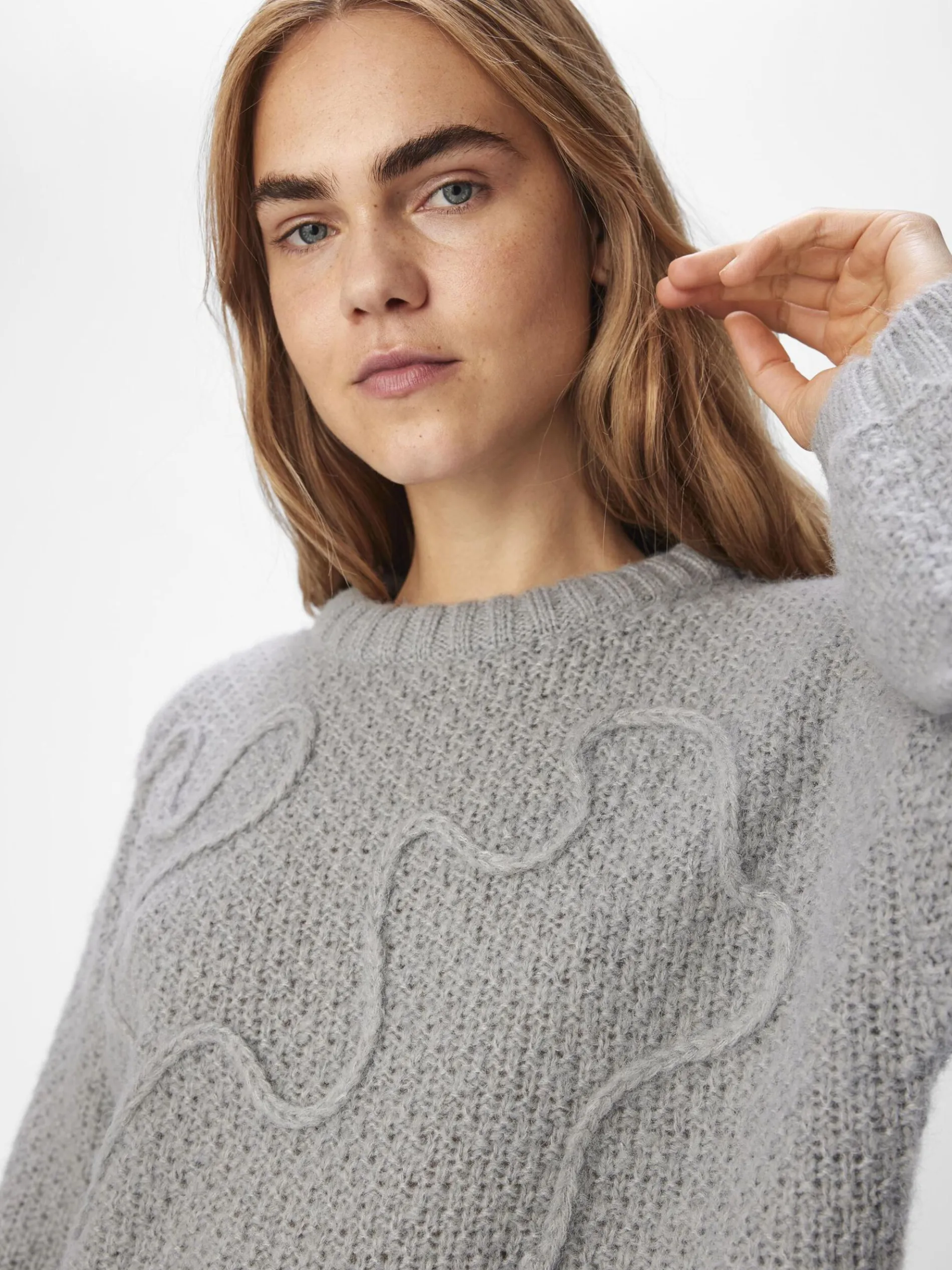 – Gebreide trui met chunky detail- Ronde hals- Lage schouders- Lange mouwen- Aansluitende manchetten- Geribde boorden- Regular fit