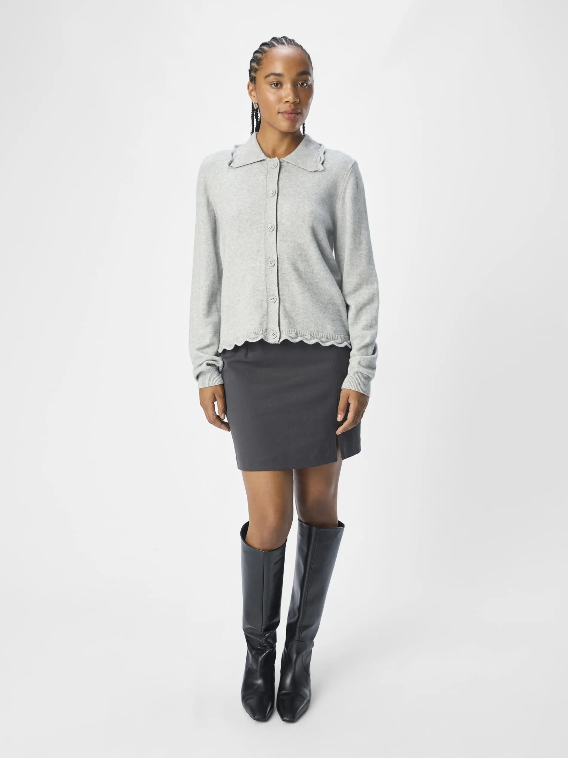– Gebreide gemêleerde cardigan- Gespreide kraag met babylock zoom- Lange mouwen- Nauwsluitende, geribde mouwuiteinden- Knoopsluiting aan de voorzijde- Babylock zoom- Regular fit