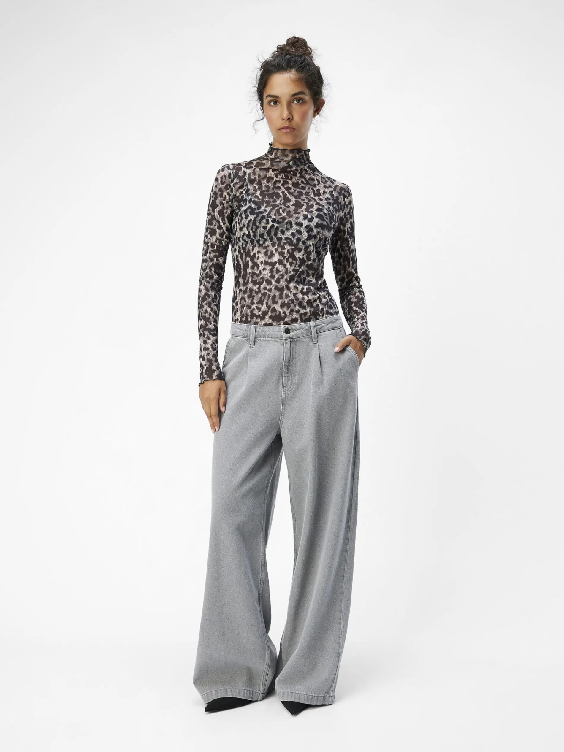 – Wide-fit jeans met plooien voorop- Mid-waist- Riemlussen- Schuine zijzakken- Opgestikte achterzakken- Wide leg fit