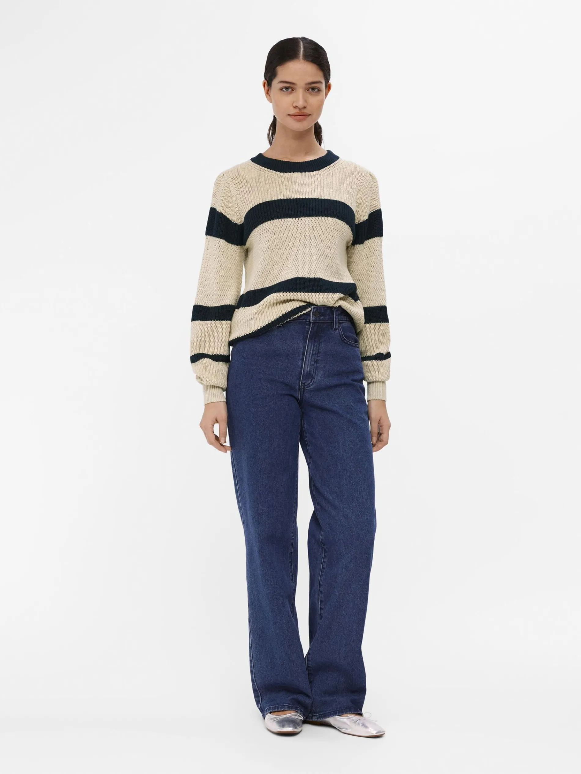 – Gestreepte knit trui- Ronde hals- Lange volumineuze mouwen- Extra lange mouwuiteinden- Geribde boorden