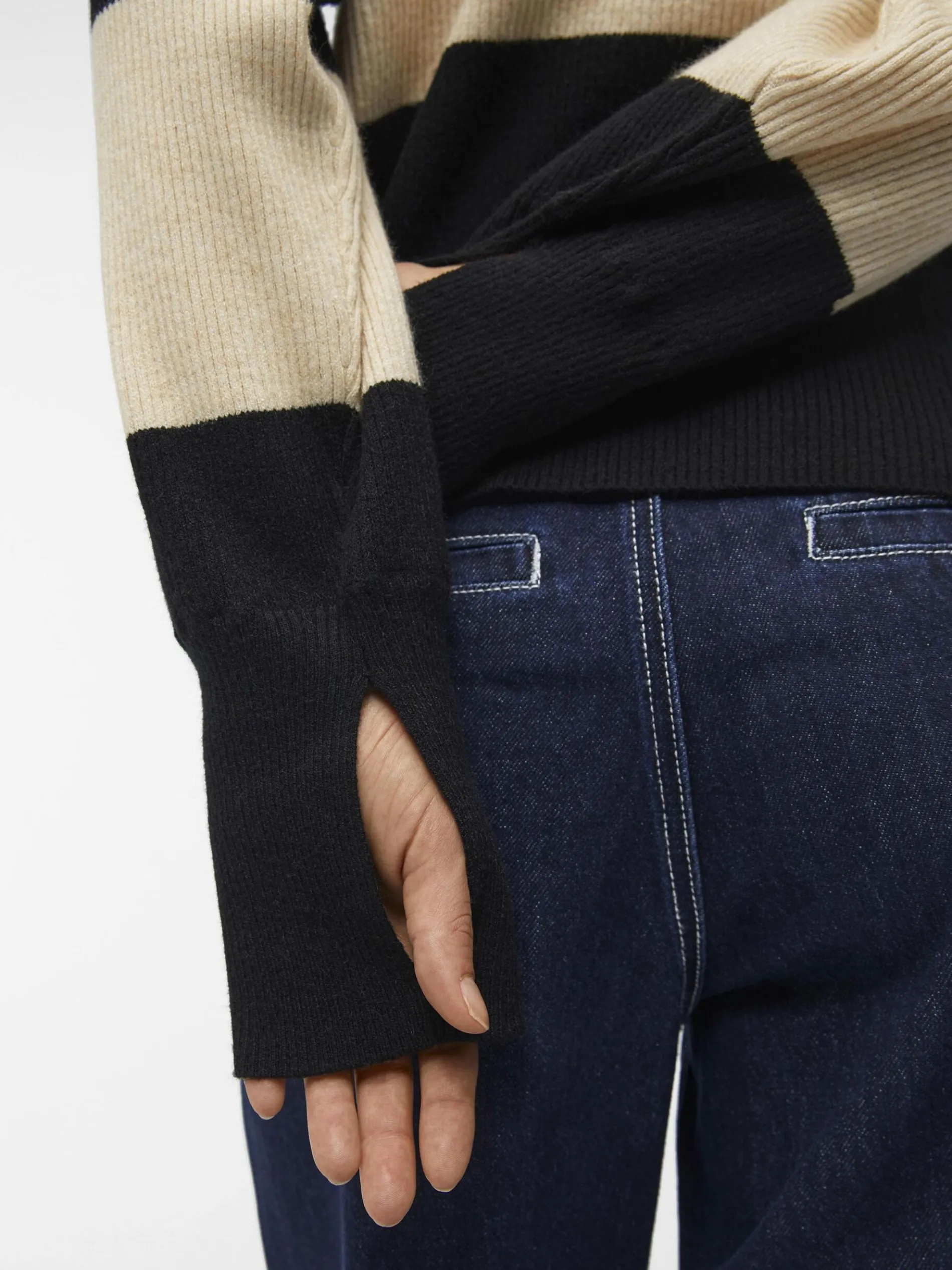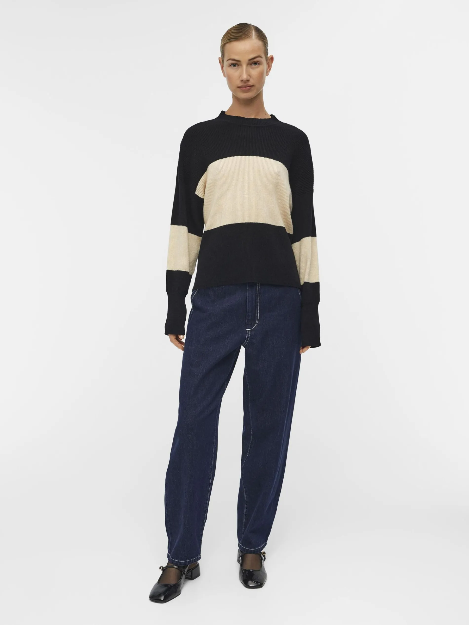 – Crewneck trui met blok-strepen- Ribgebreid- Lange volumineuze mouwen met wijde schouders- Extra lange nauwsluitende manchetten- Relaxed fit- Gemaakt met duurzamere stoffen