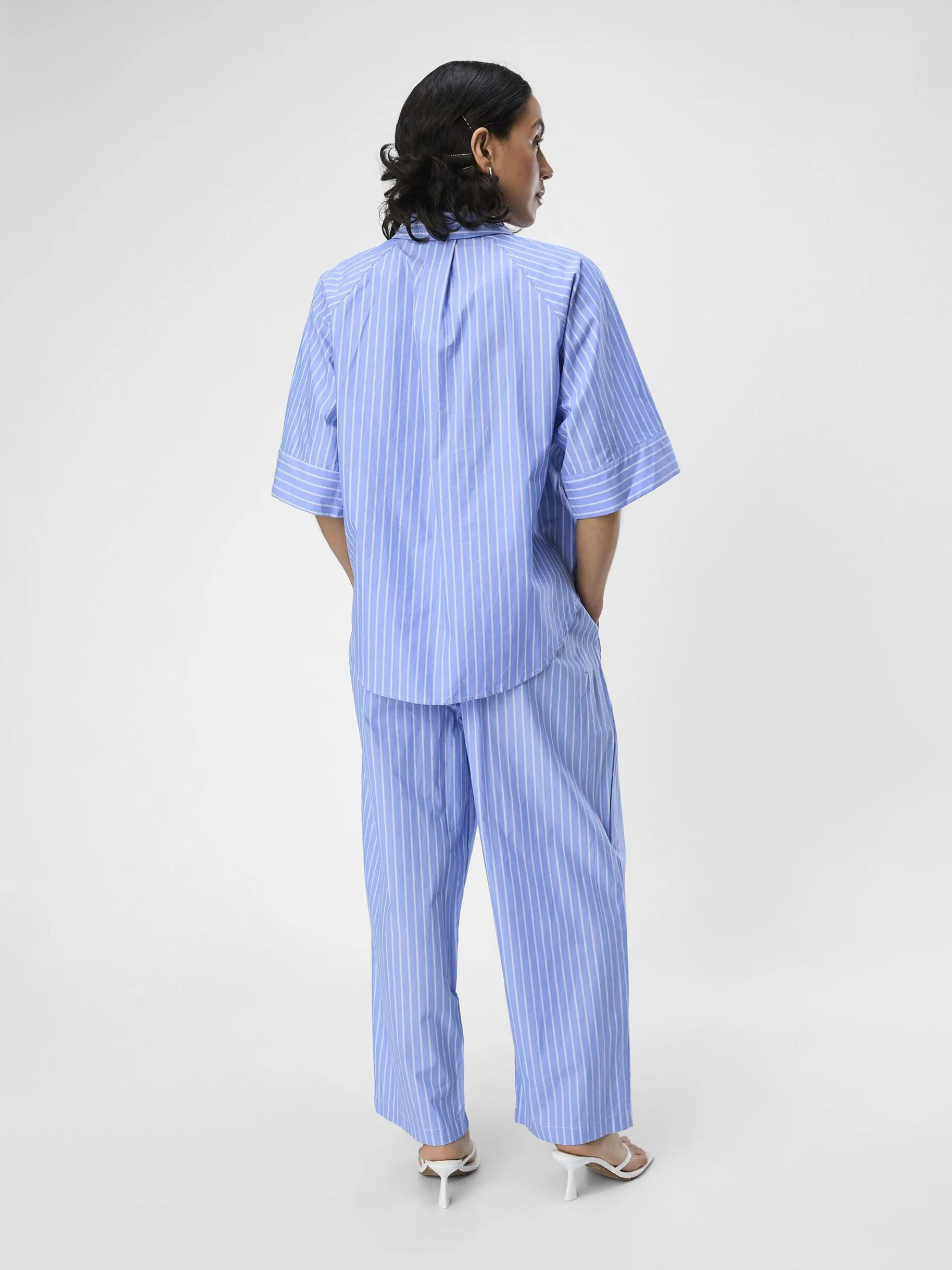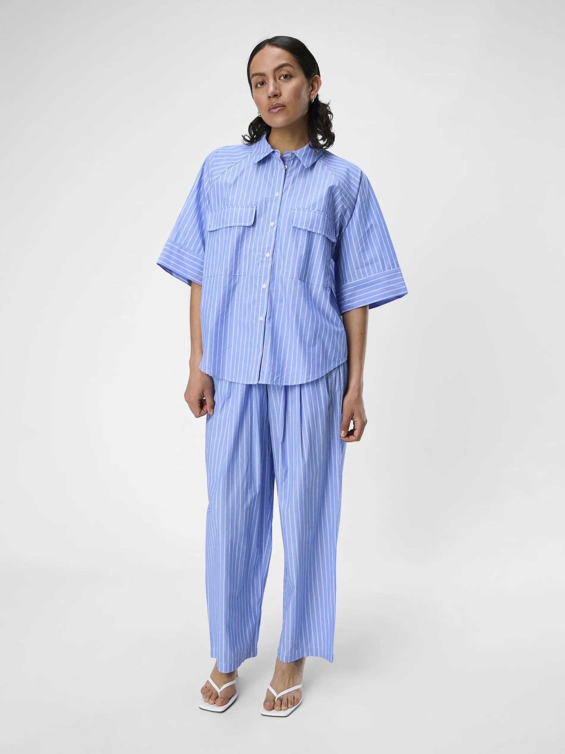 -Gestreepte katoenen broek met wijde pijpen-Onderdeel van een set-Hoge elastische taille-Zijzakken-Geplooid effect aan de voorkant-Loose fit