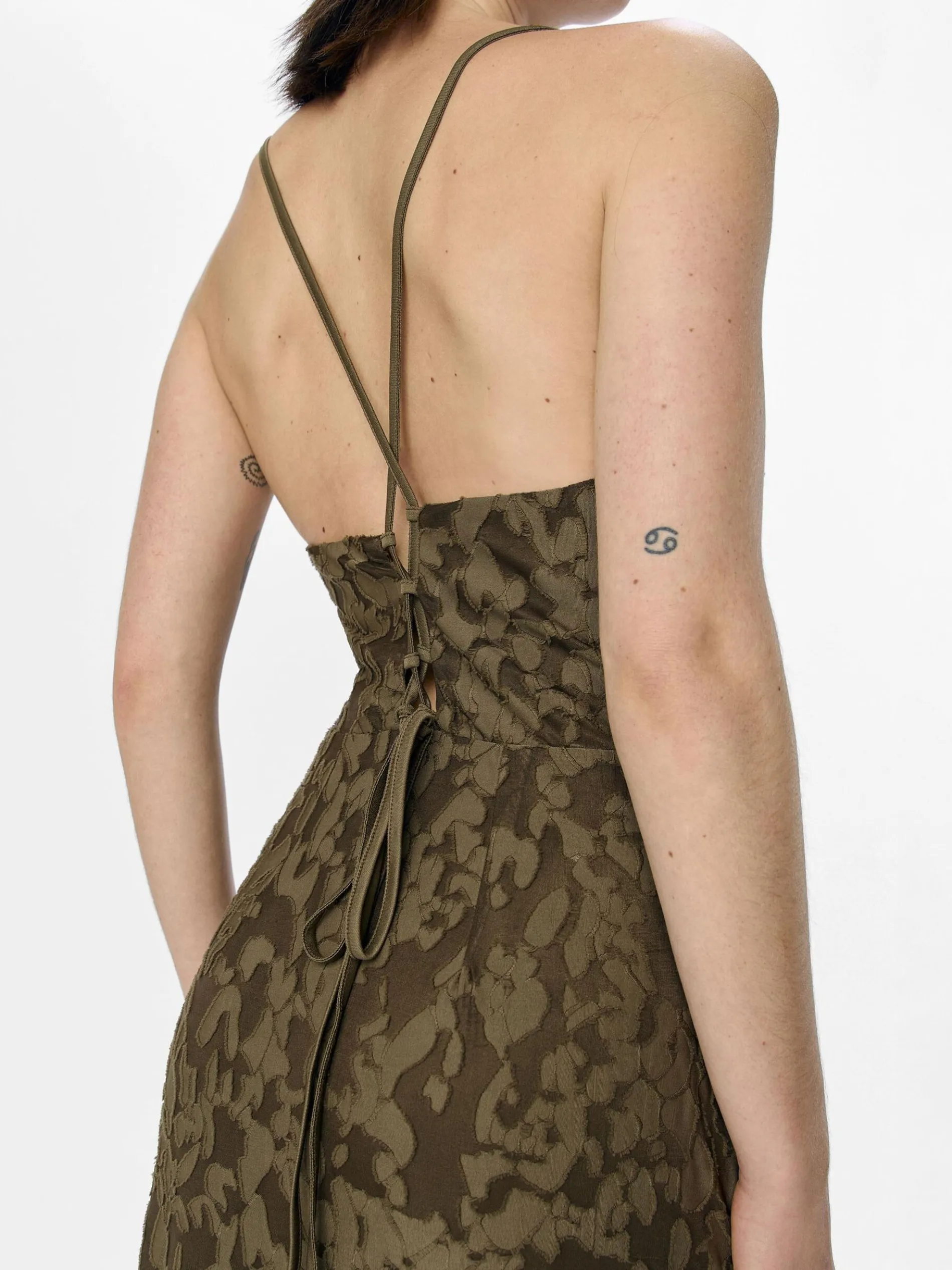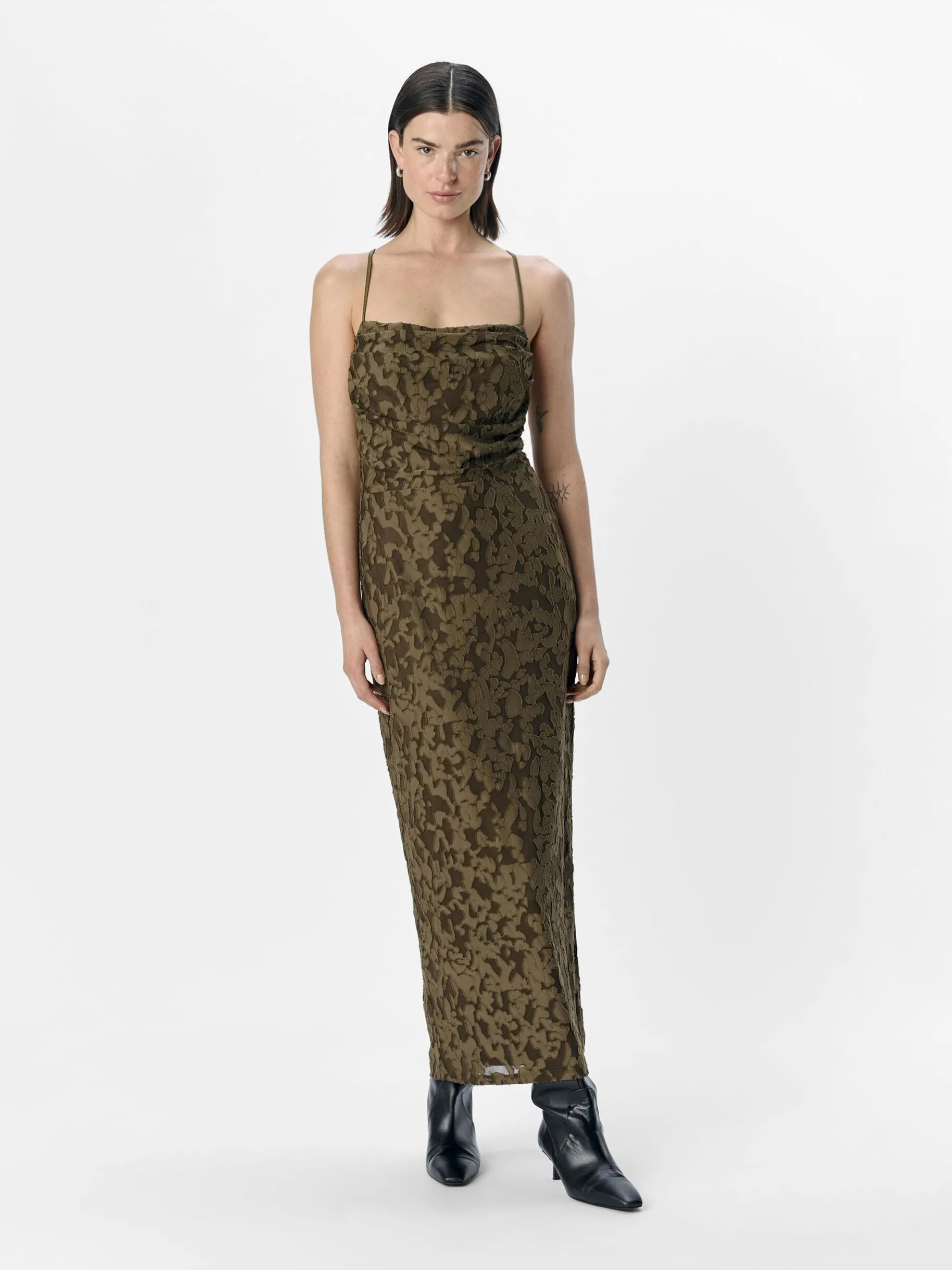 – Maxi-jurk met textuur- Spaghettibandjes- Sweetheart halslijn- Plooien op het lijfje- Gevoerd- Slim fit