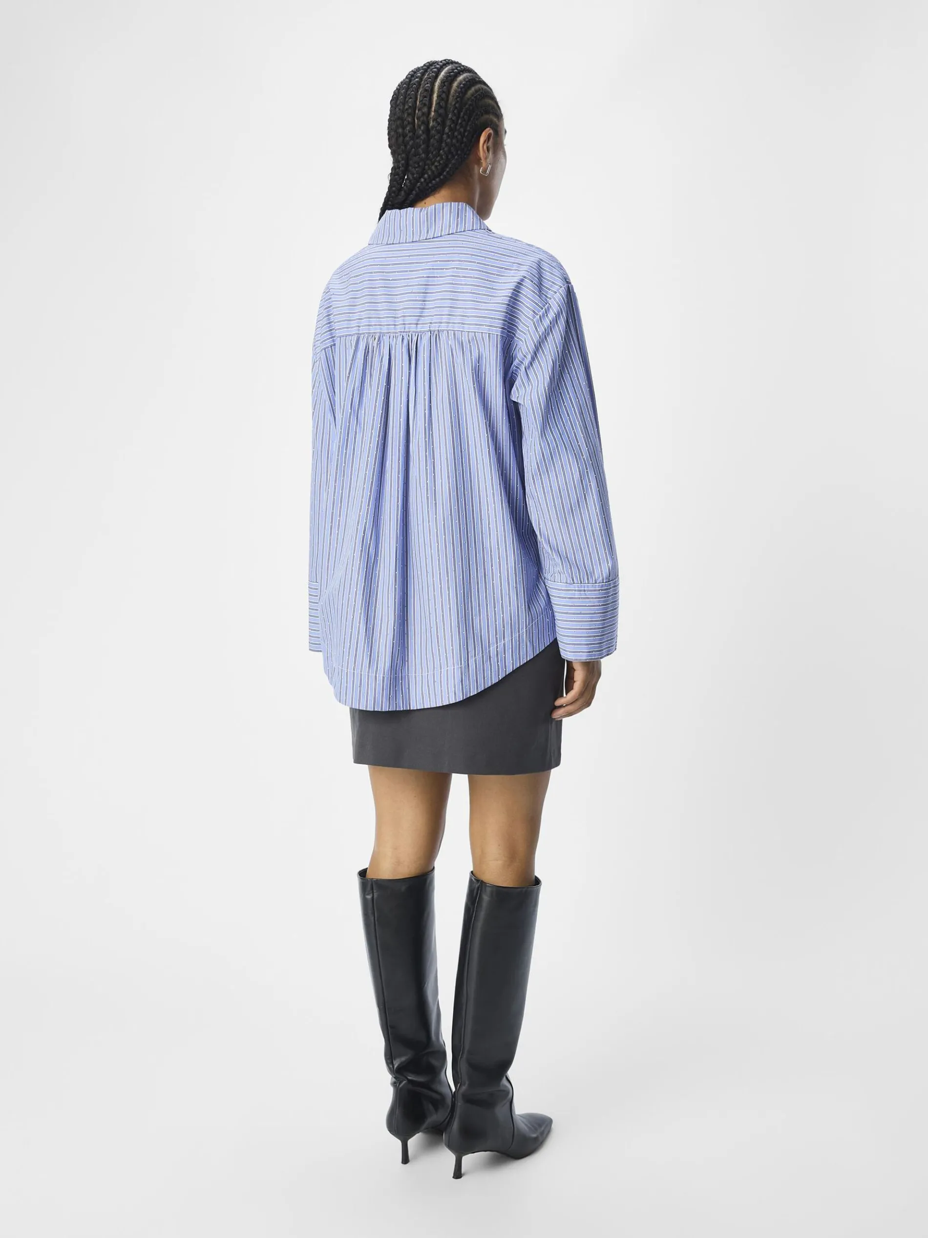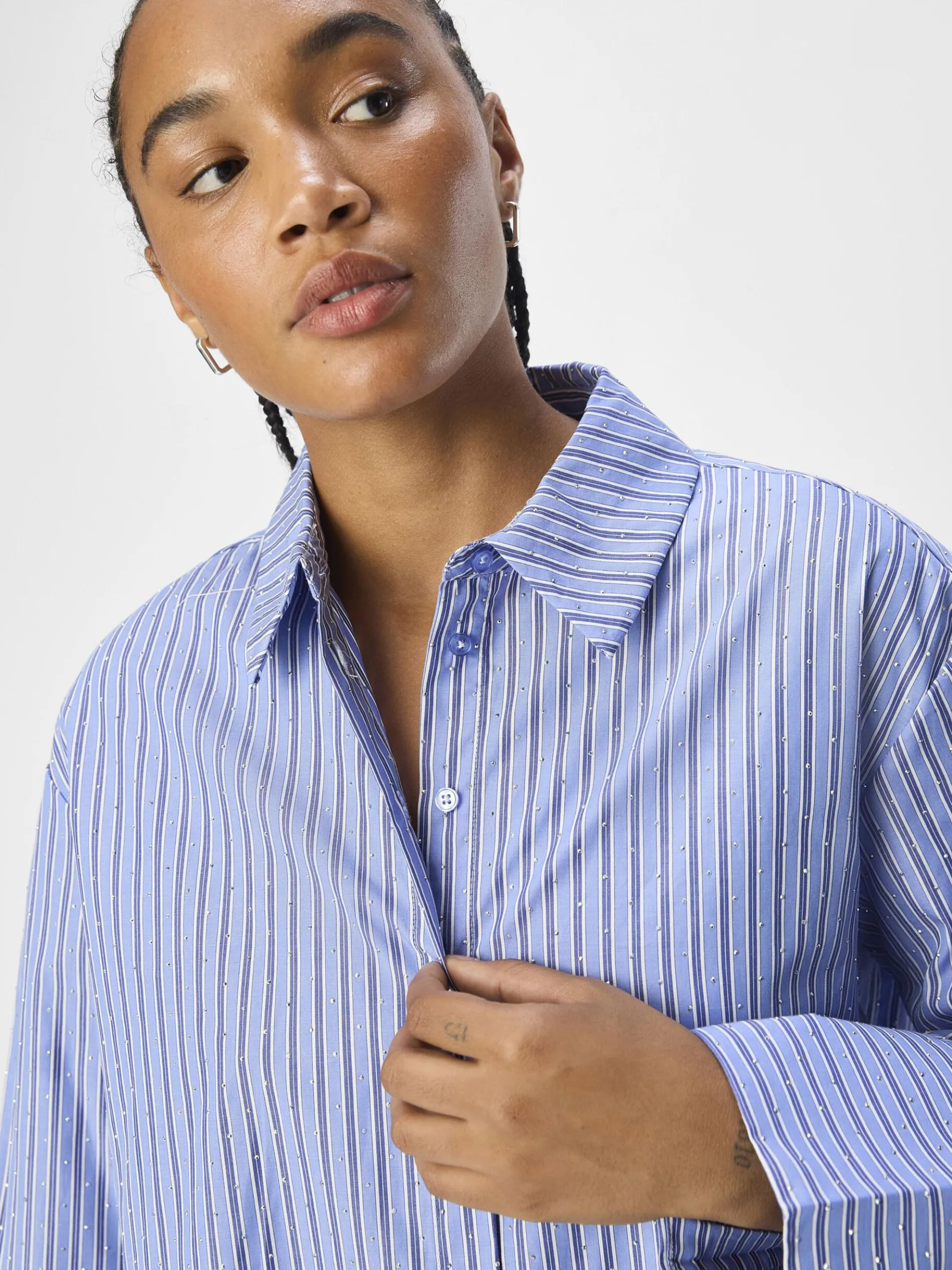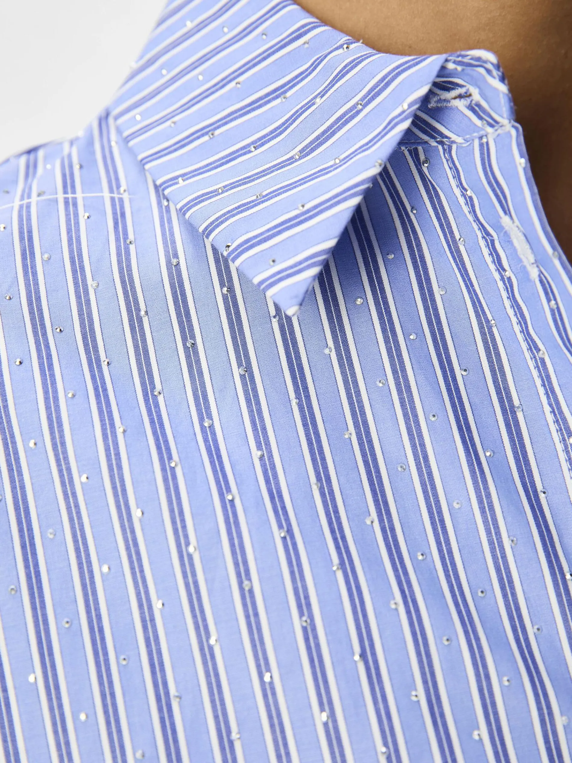 – Gestreepte blouse met glitter- Normale kraag- Lage schouders- Lange mouwen- Oversized manchetten- Knoopsluiting aan de voorkant- Loose fit
