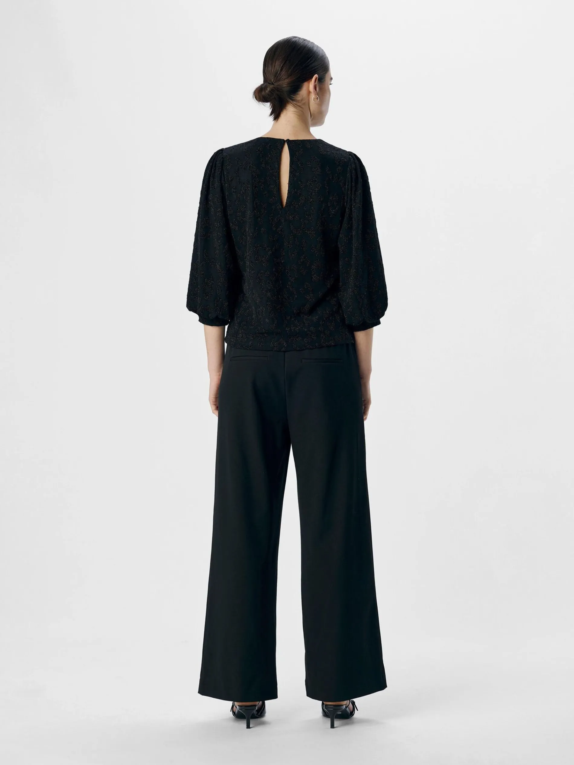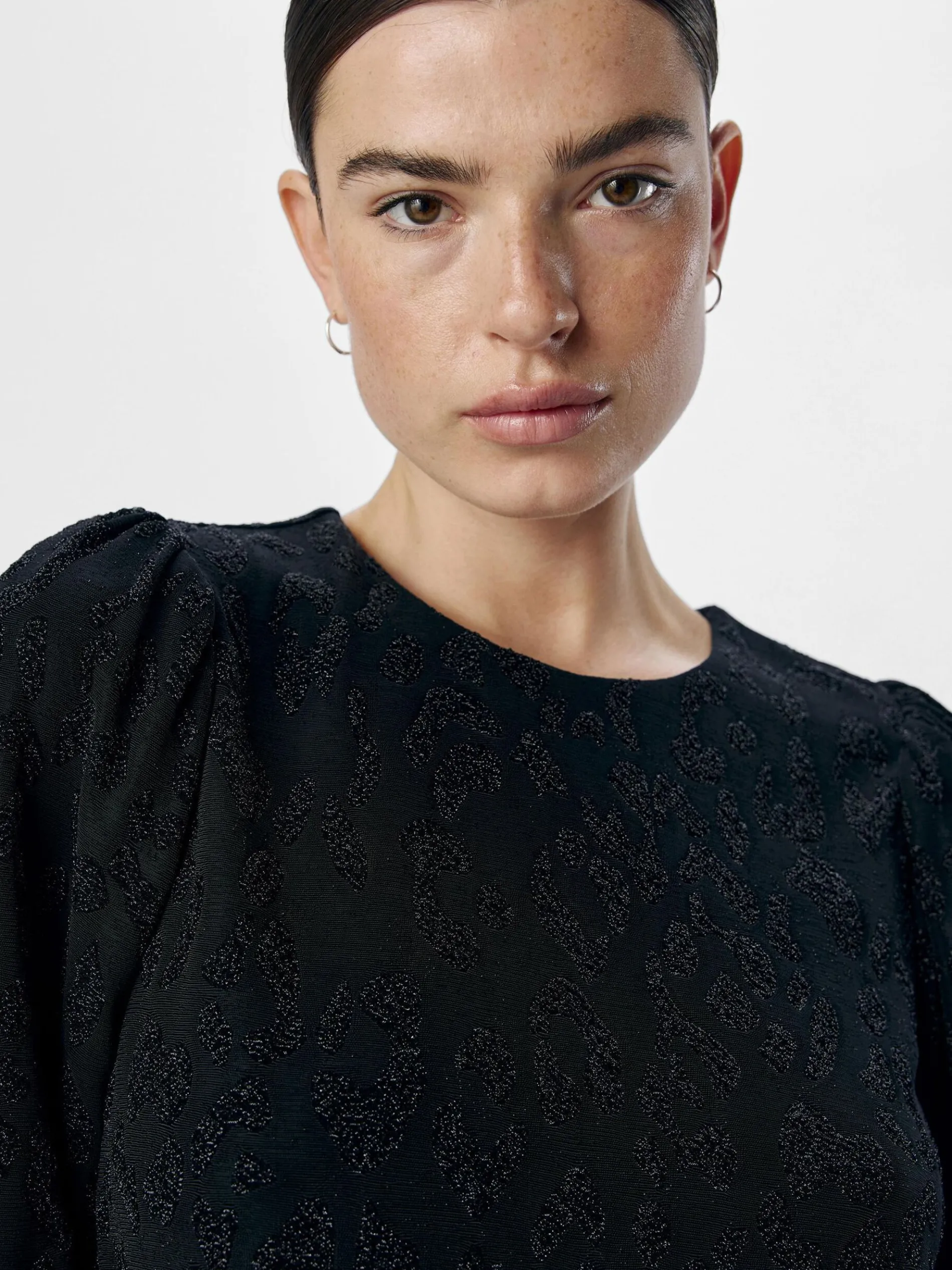 – Ronde hals- Knoopsluiting met keyhole op de rug- Zacht, rekbaar materiaal- Manchetten met elastiek- Regular fit