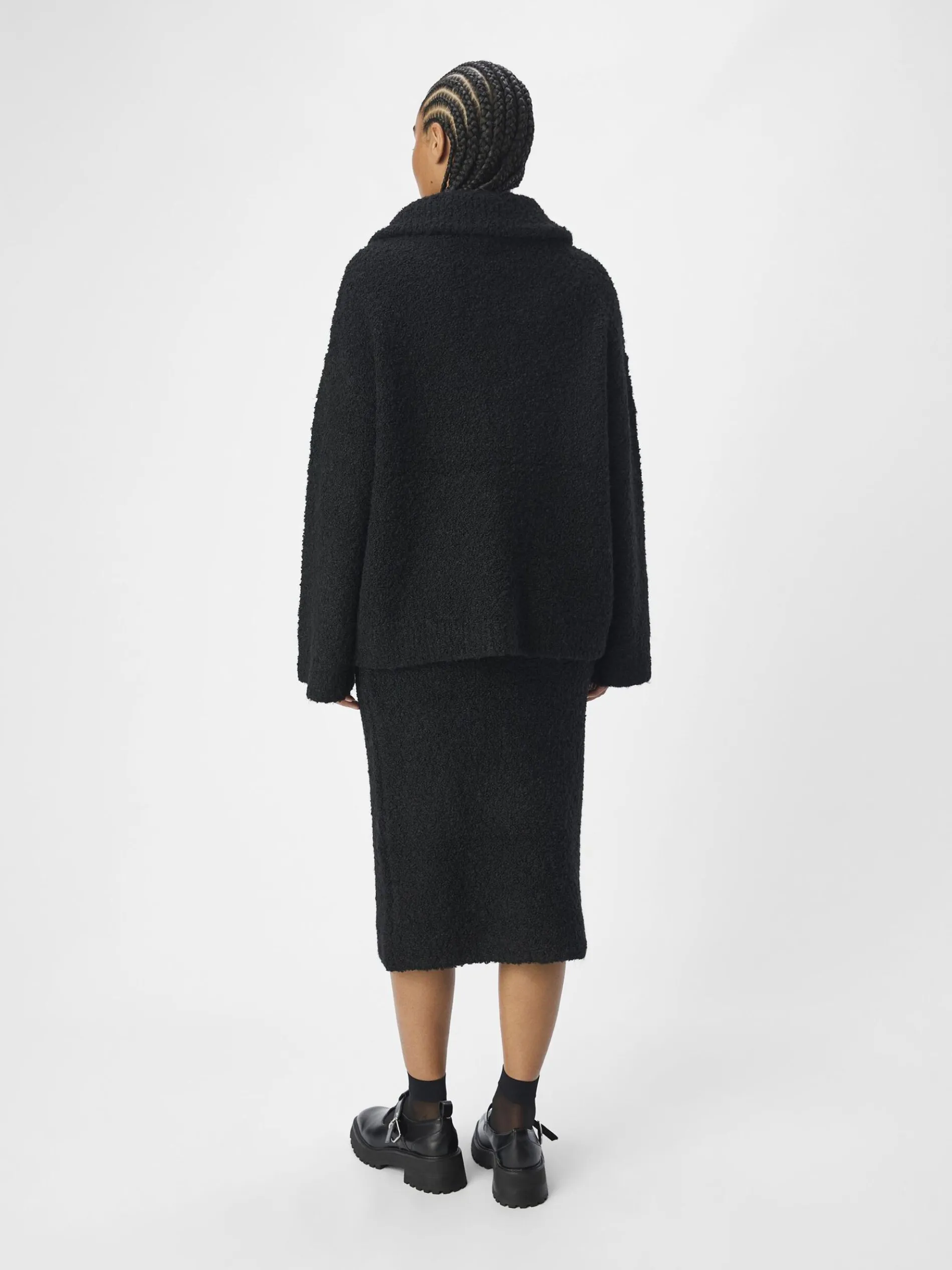 – Trui met halve rits- Hoge kraag- Lage schouders- Lange mouwen- Geribbelde boorden- Loose fit