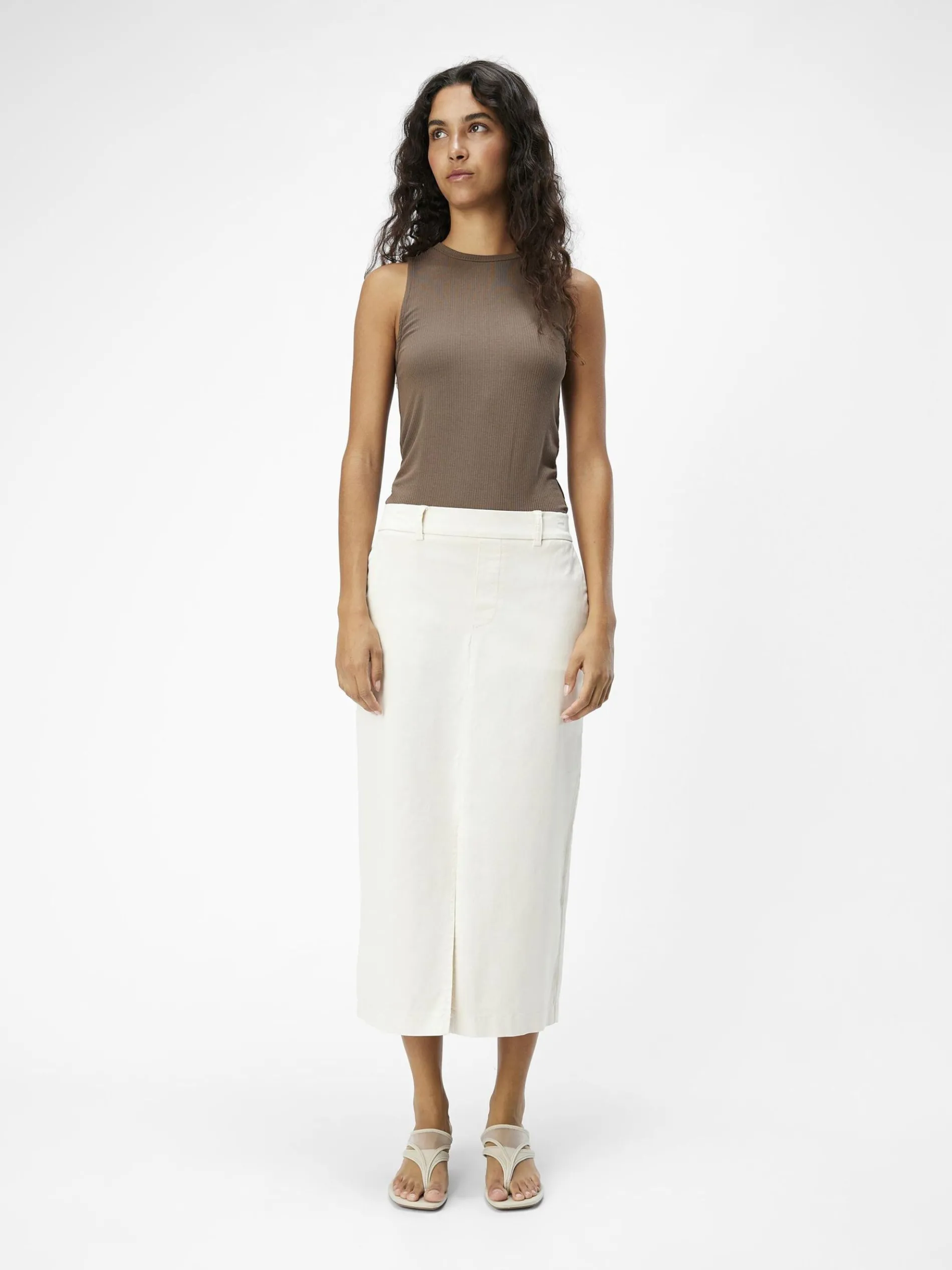 – High-waist midirok- Elastische taille met riemlussen- Zijzakken- Split aan de voorkant- Regular fit
