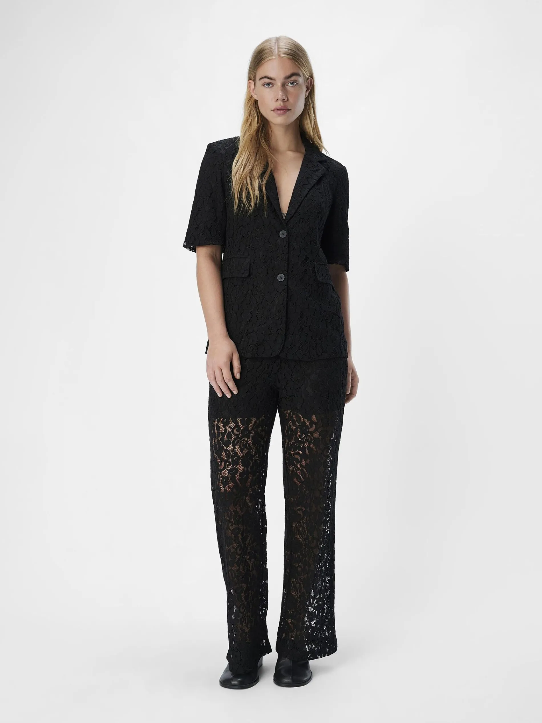 – Longline blazer met kant- Revers met inkeping- Korte mouwen- Enkele knopenrij- Steekzakken met klep aan de voorkant- Enkele knoopsluiting- Regular fit