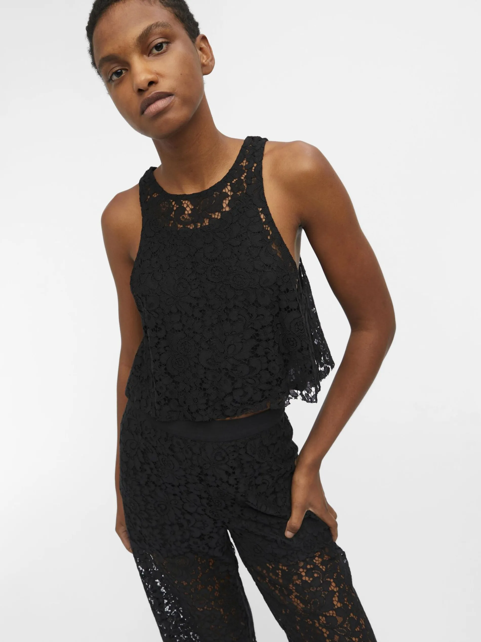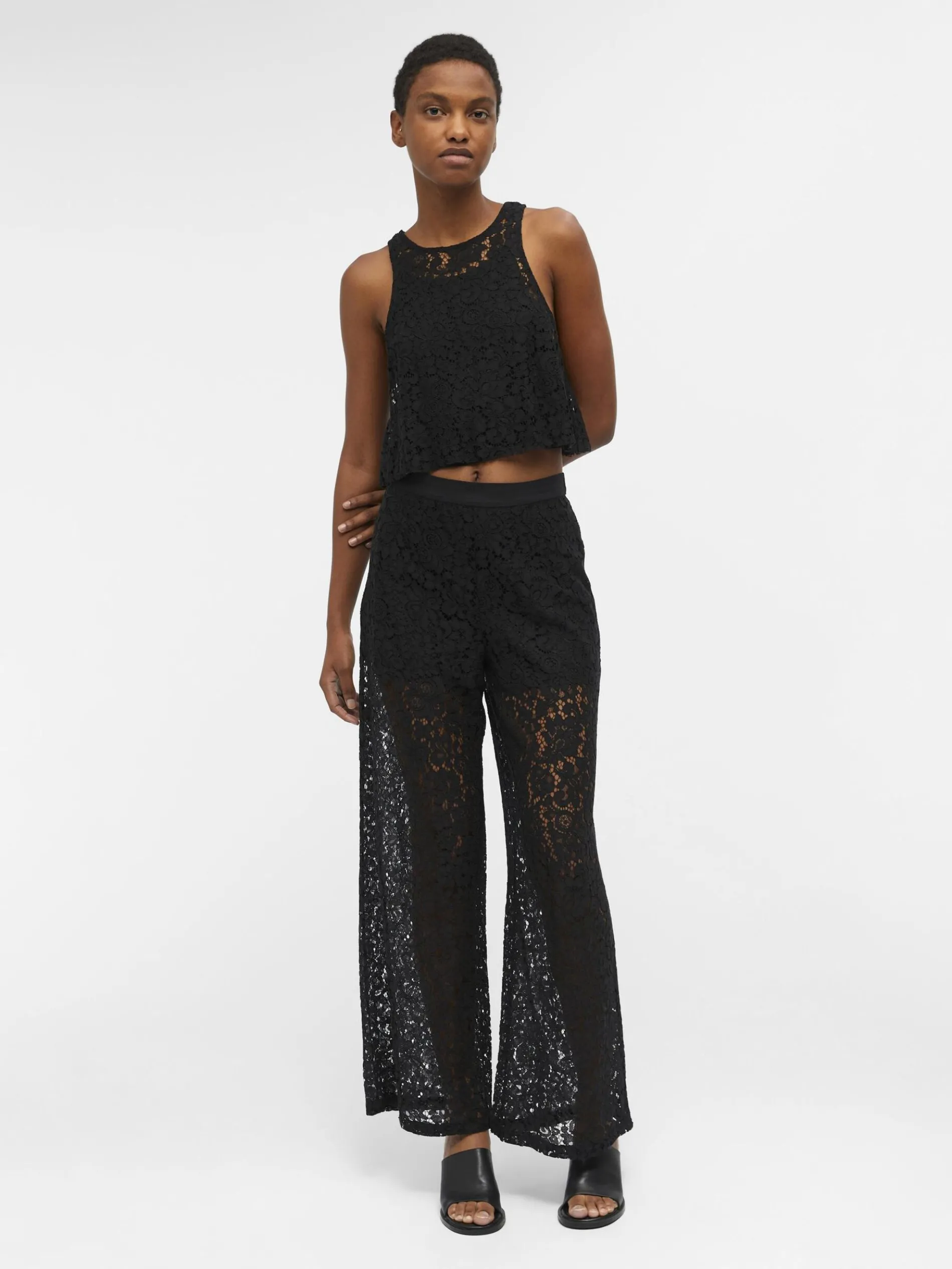 – High-waist kanten broek- Gevoerd met shorts- Bloemenkant- Ritssluiting- Flared pasvorm