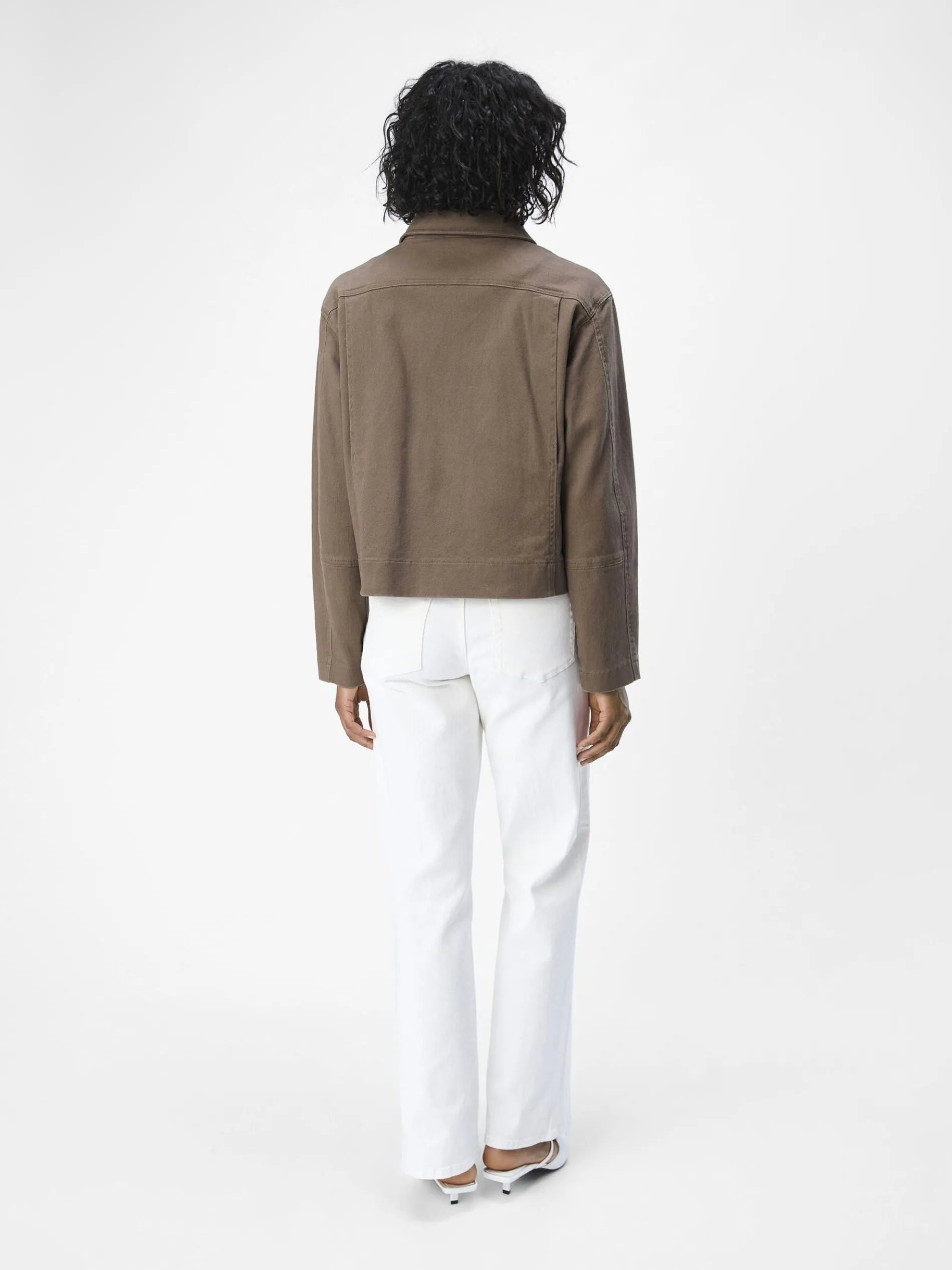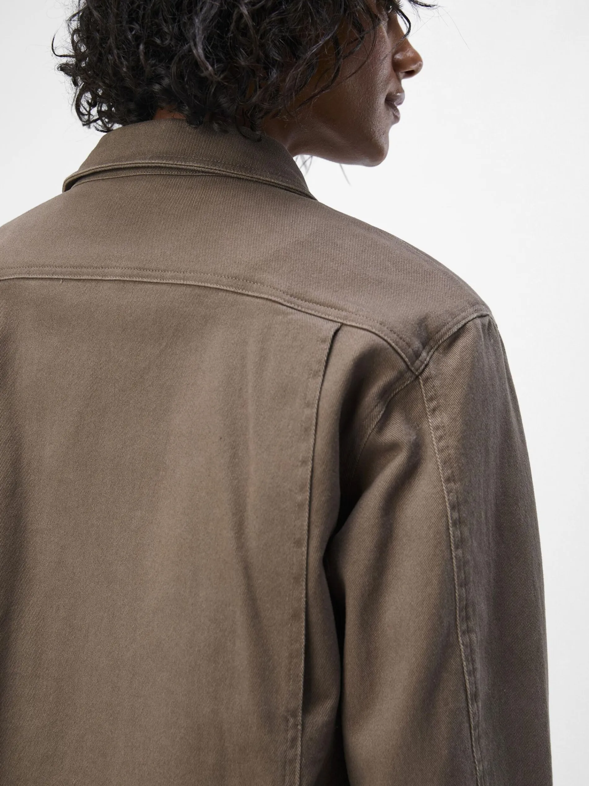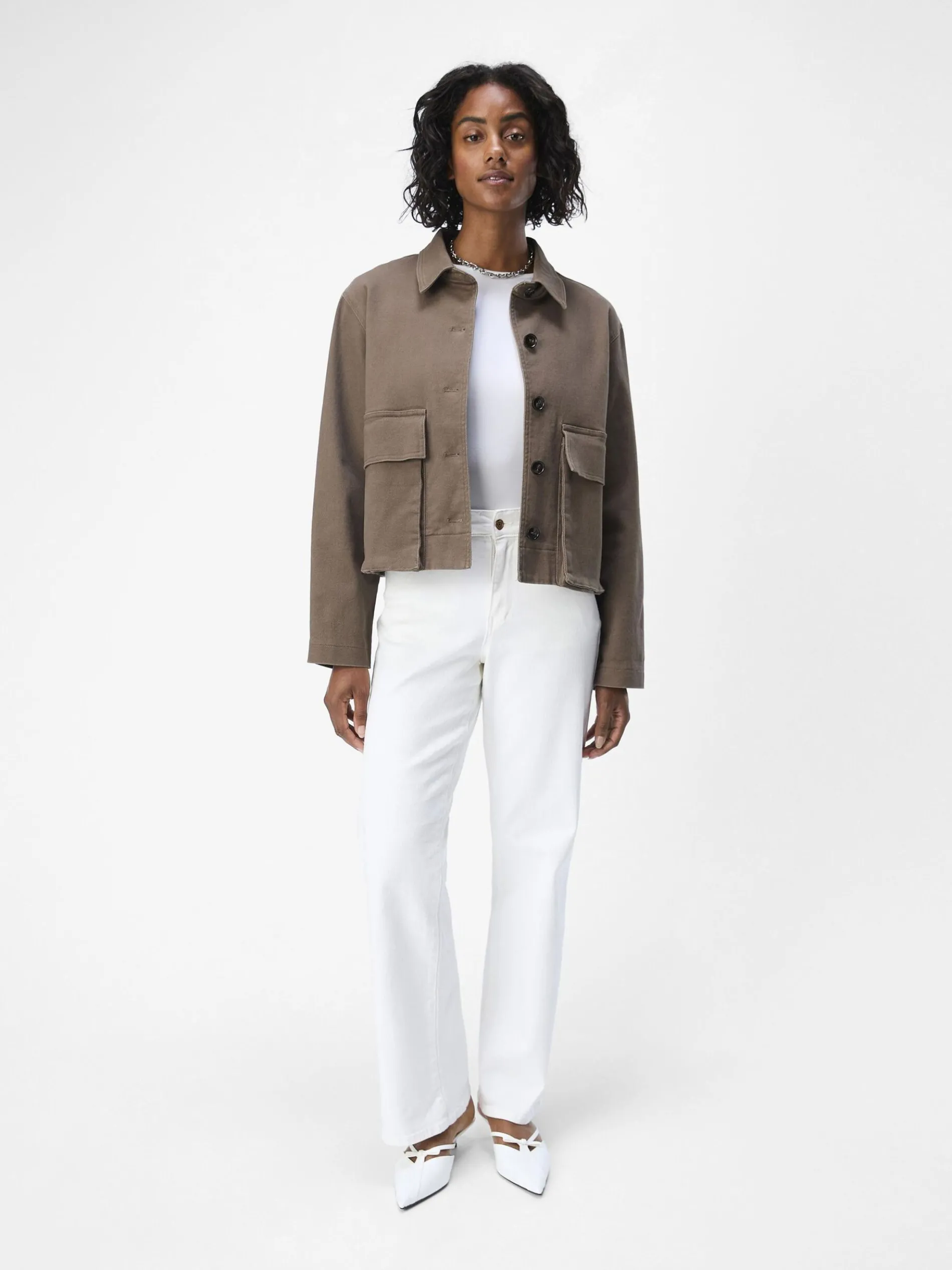 – Kort katoenen jack- Gespreide kraag- Lange mouwen met verlaagde schouders- Grote opgestikte zakken met klep aan de voorkant- Knoopsluiting aan voorkant- Regular fit