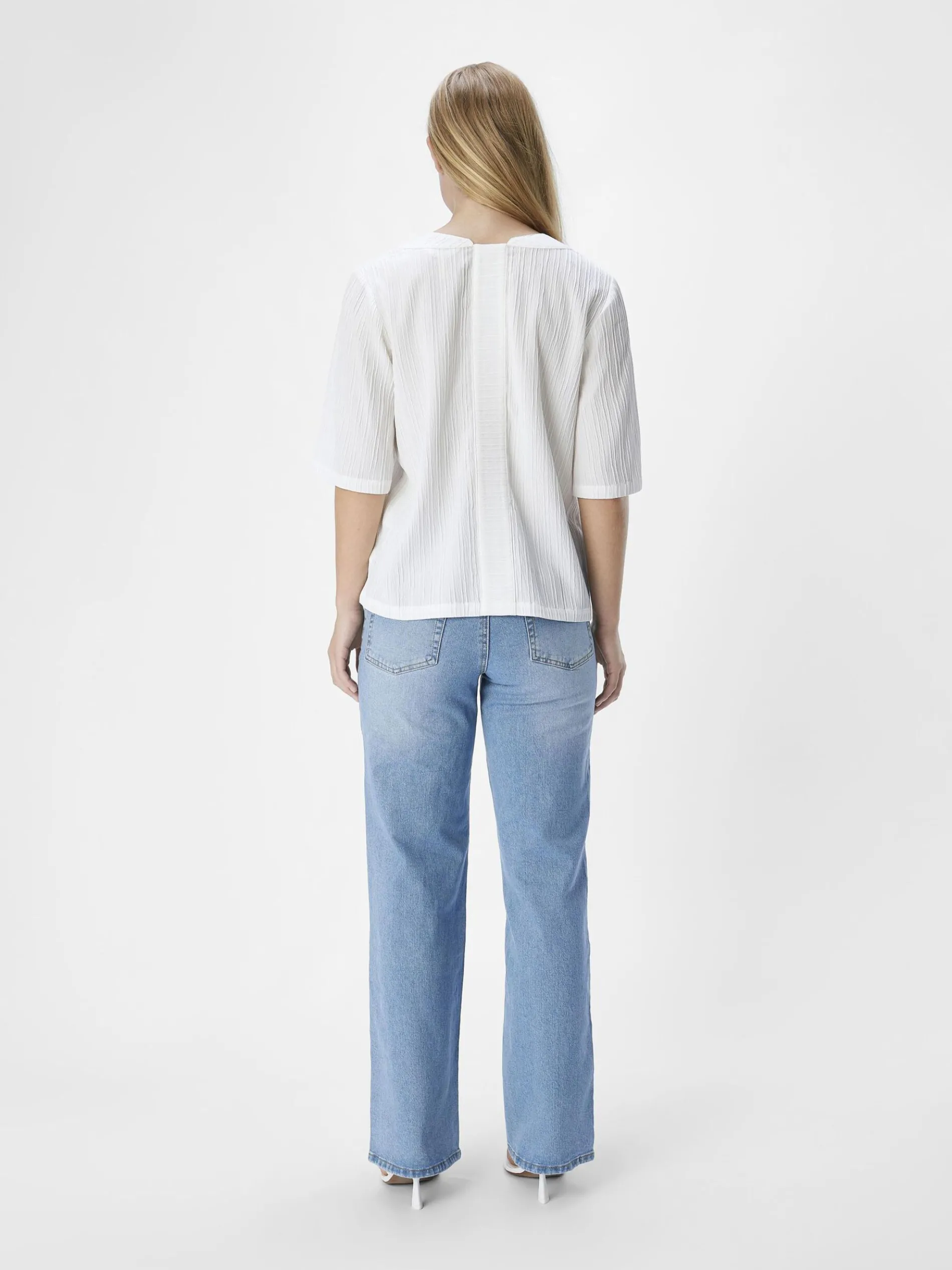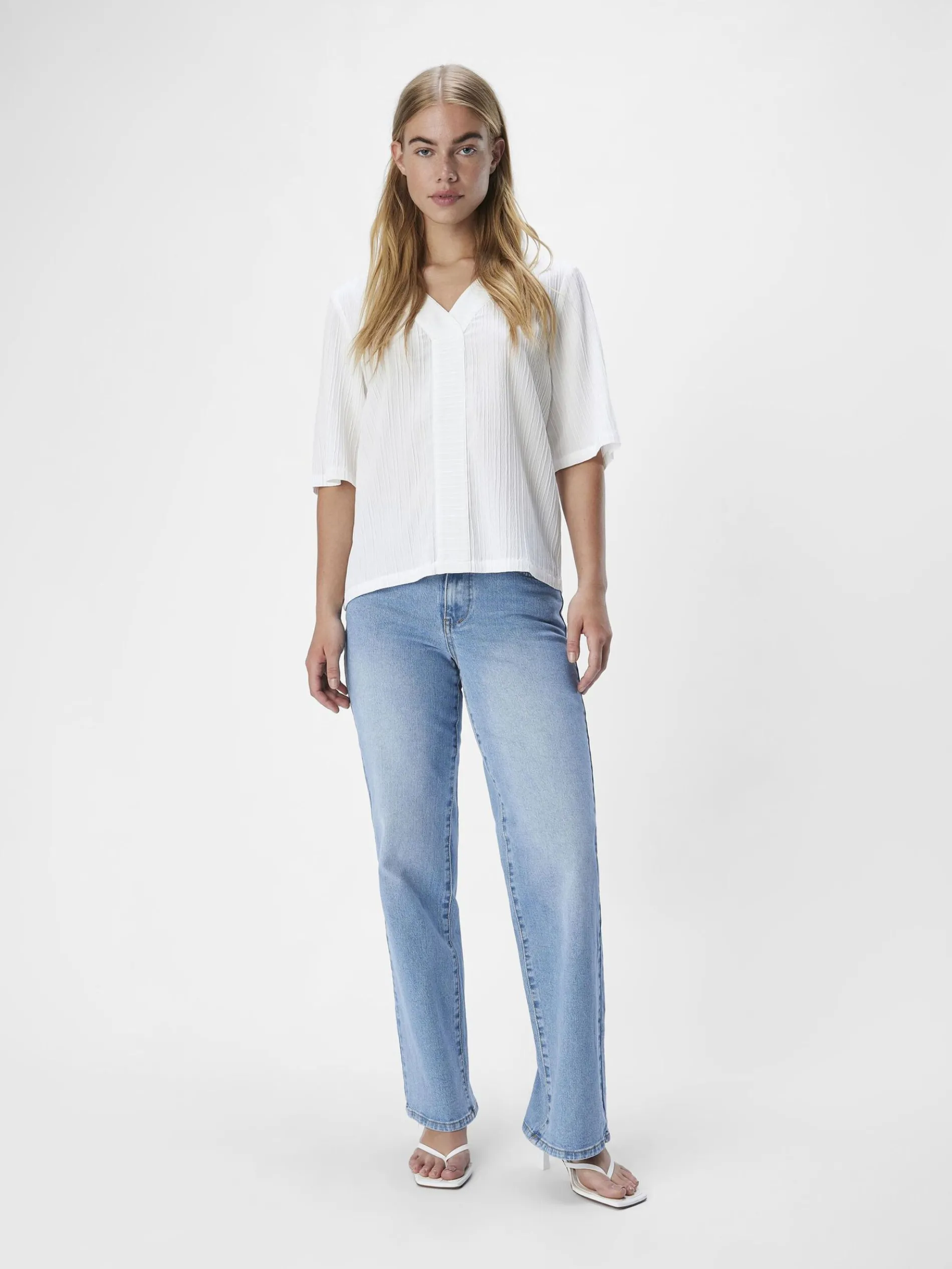 – Gekreukte blouse met V-hals- Korte mouwen- Lage schouders- Regular fit