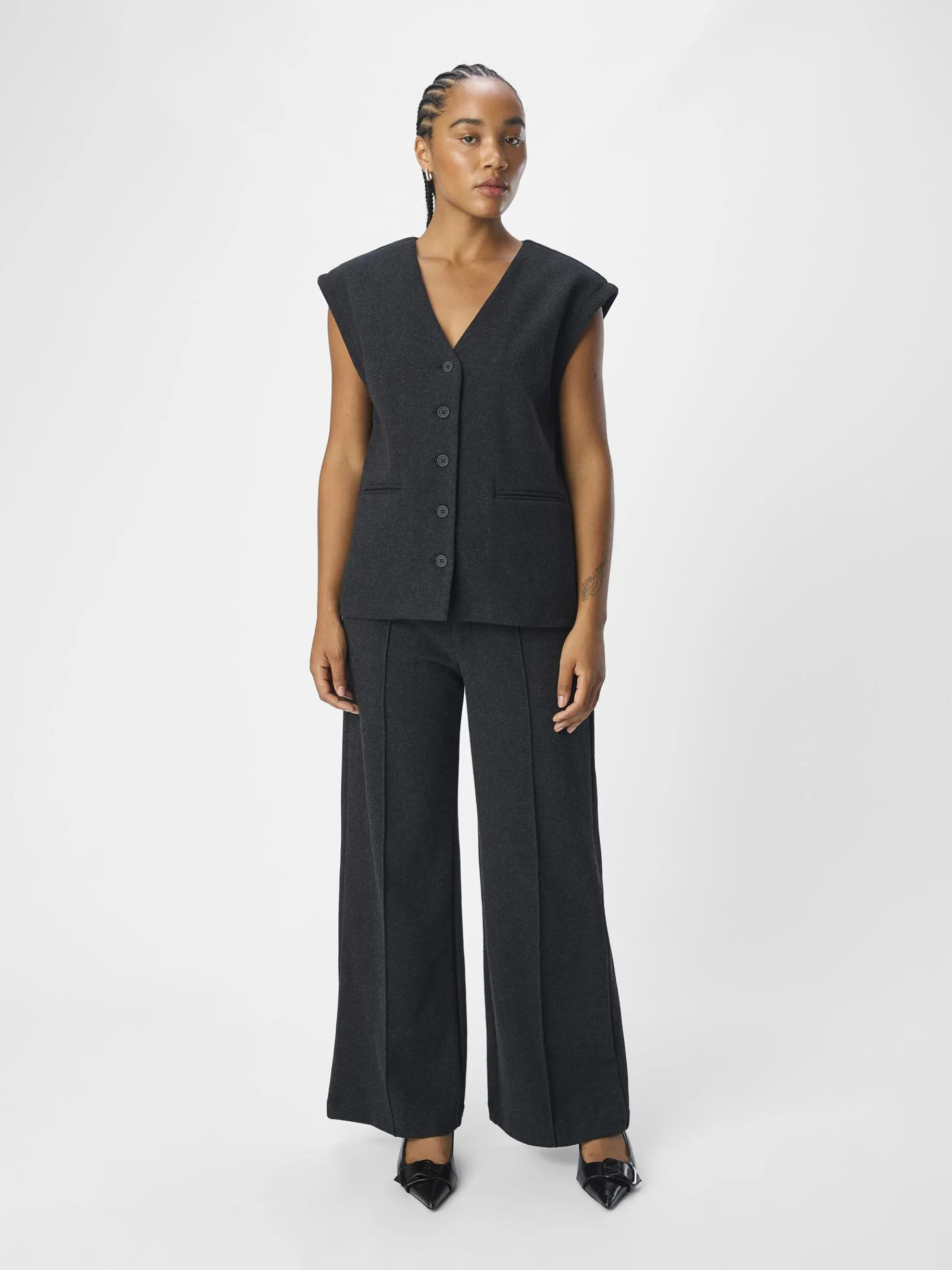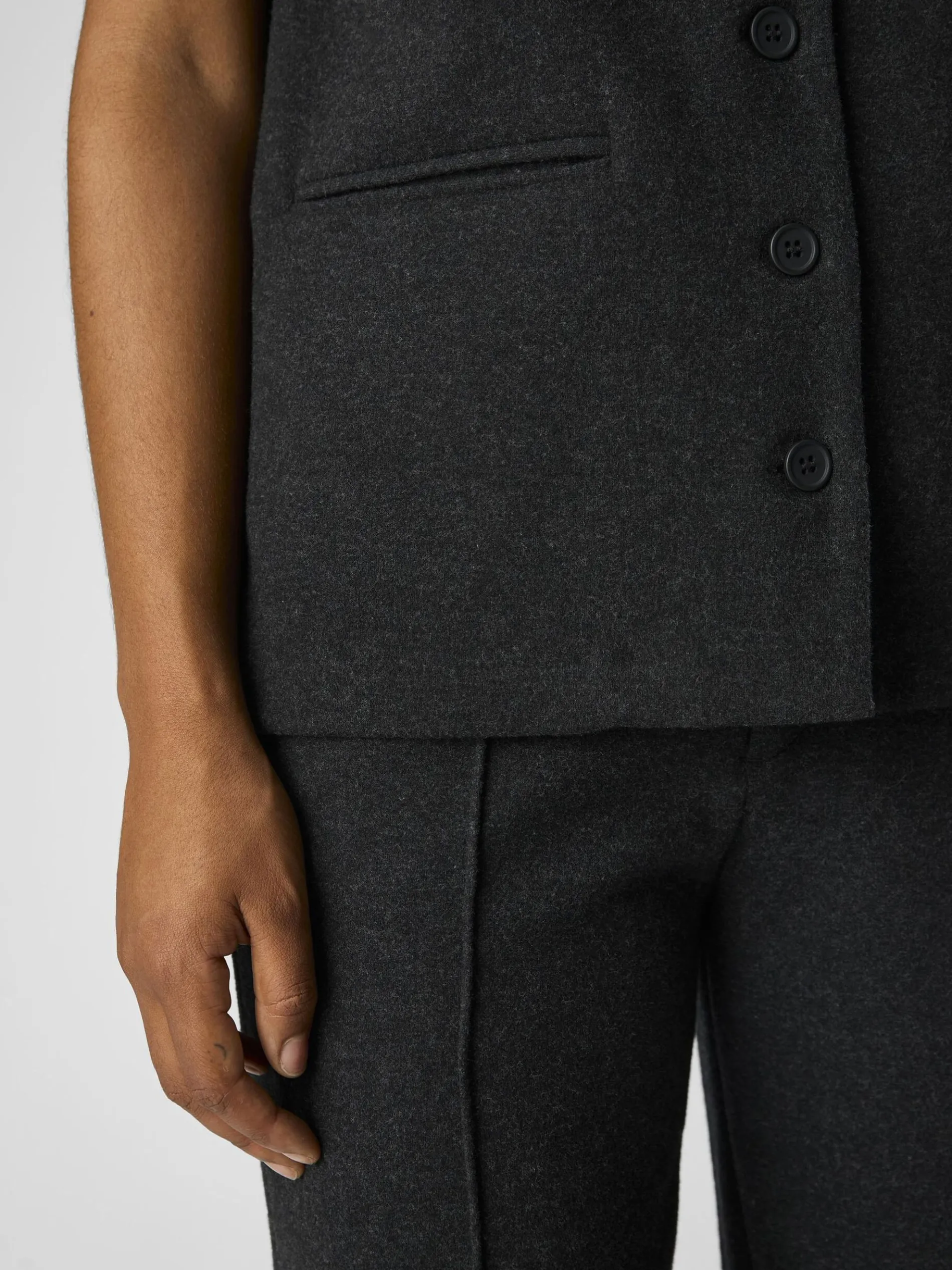 – Longline tailored gilet- Onderdeel van een set- Zware kwaliteit- Extra brede schouders- V-hals- Knoopsluiting aan de voorkant- Paspelzakken- Regular fit