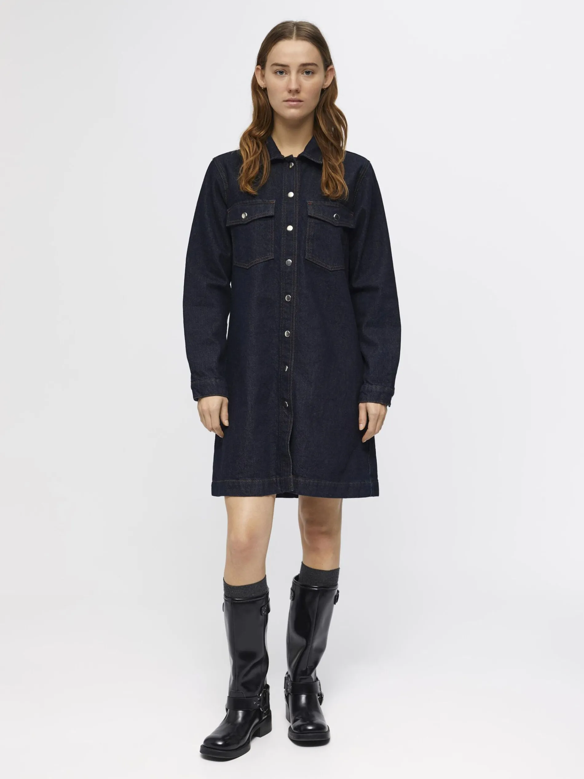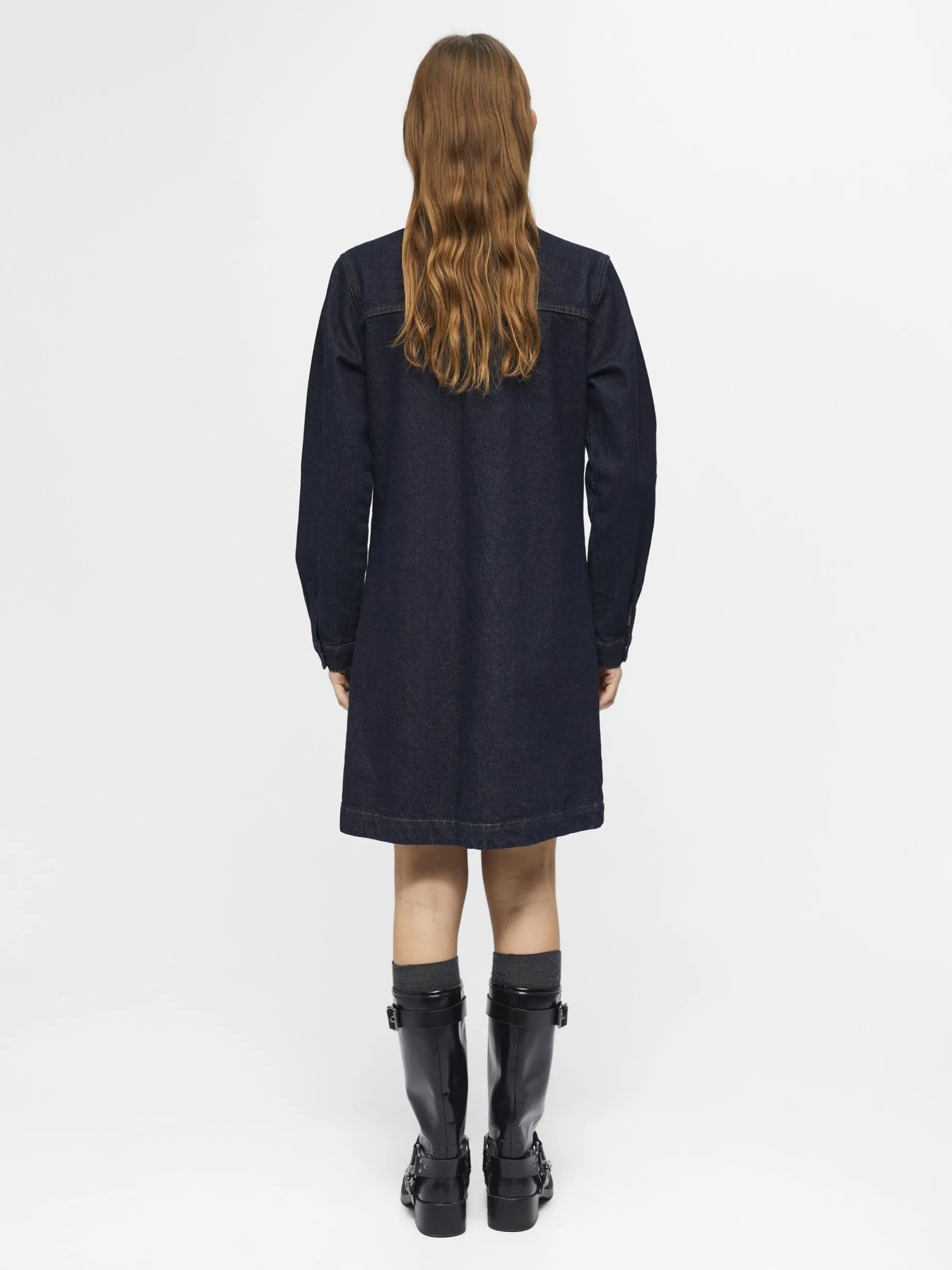 – Mini-jurk van denim met lange mouwen- Gespreide kraag- Knoopsluiting aan de voorkant- Opgestikte borstzakken- Regular fit