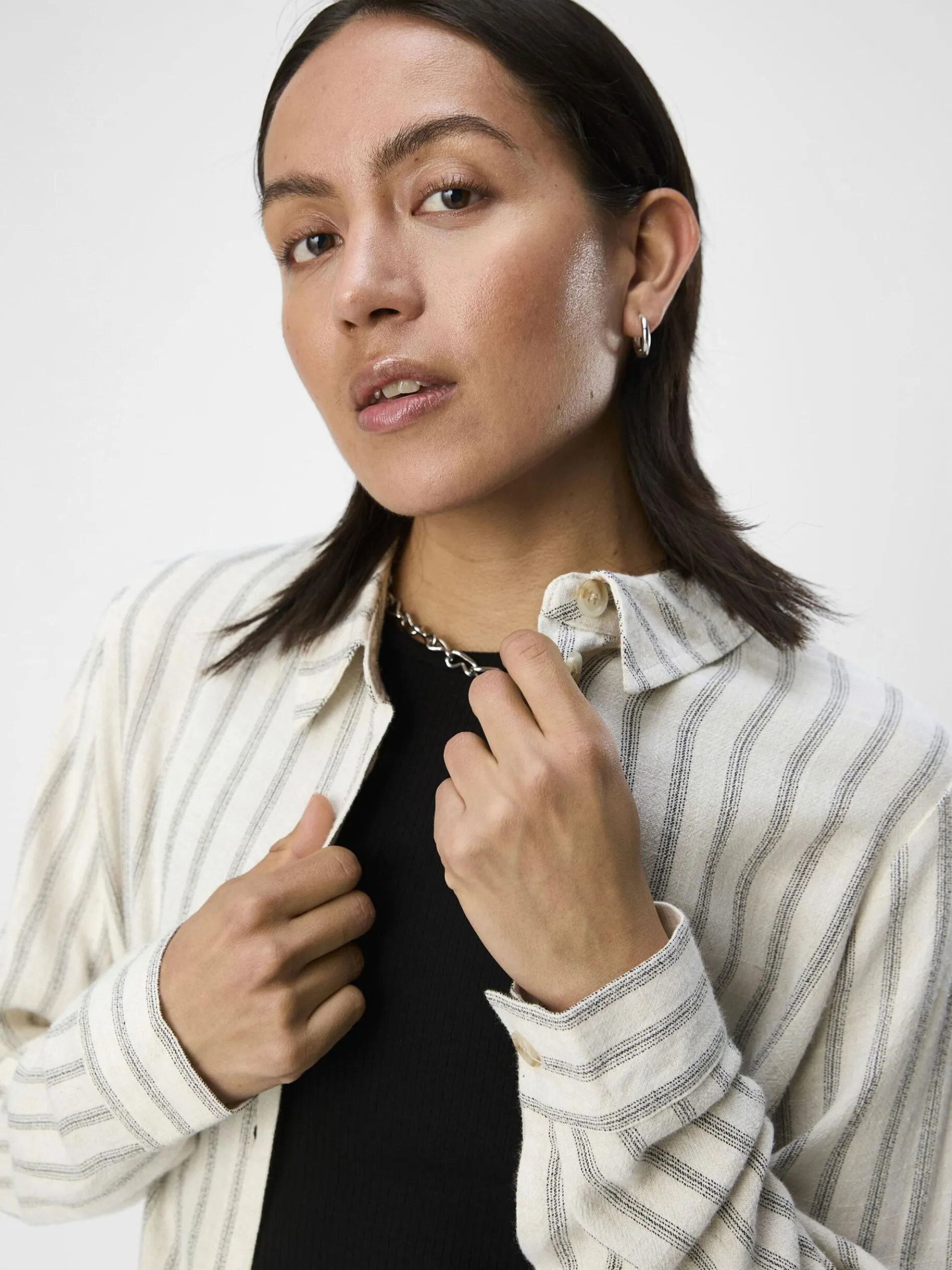 -Blouse met lange mouwen van linnenmix-Onderdeel van een set-Normale kraag-Knoopsluiting aan de voorkant-Manchetten met knopen-Ongevoerd-Regular fit-Gemaakt met duurzamere stoffen