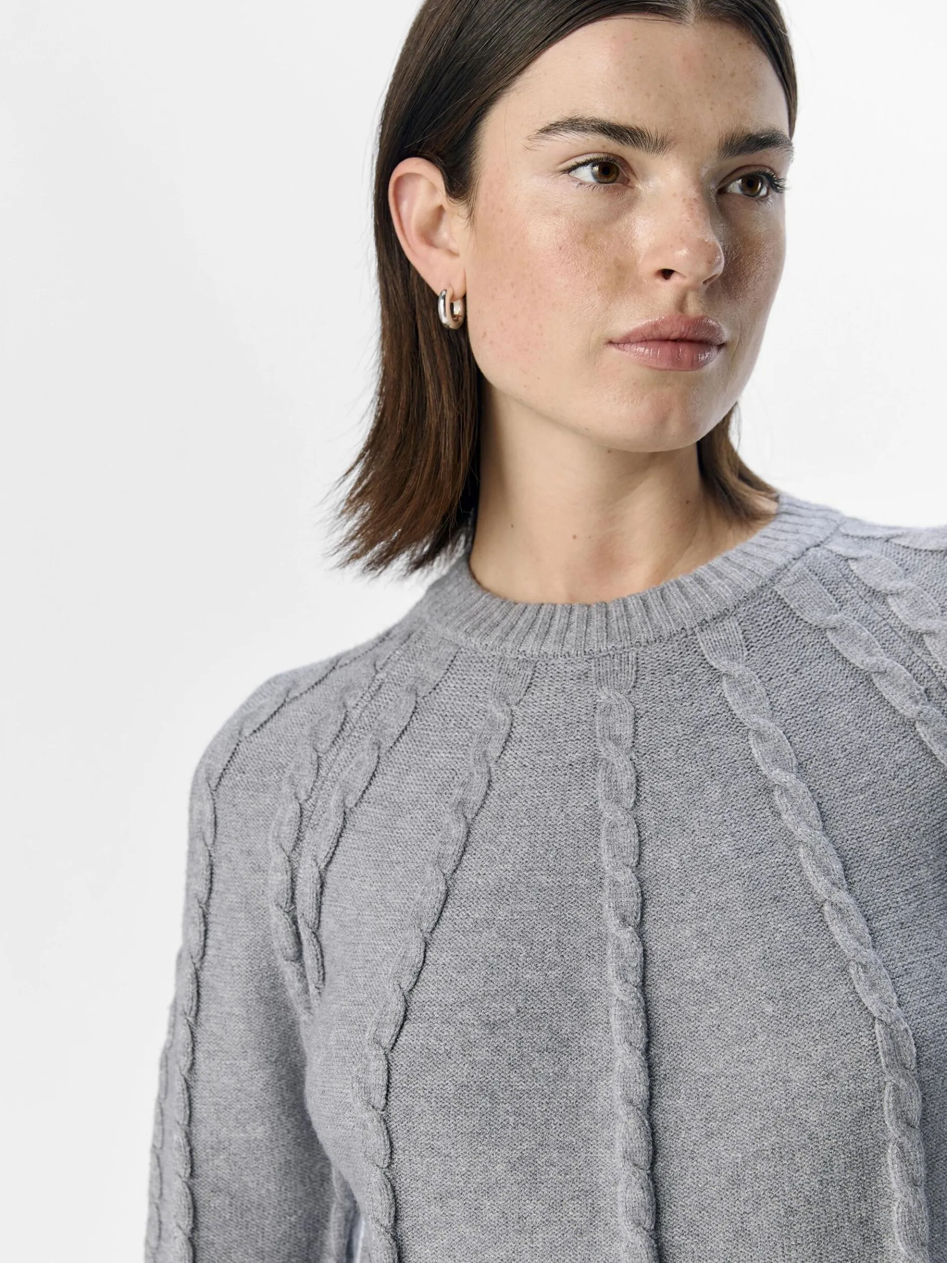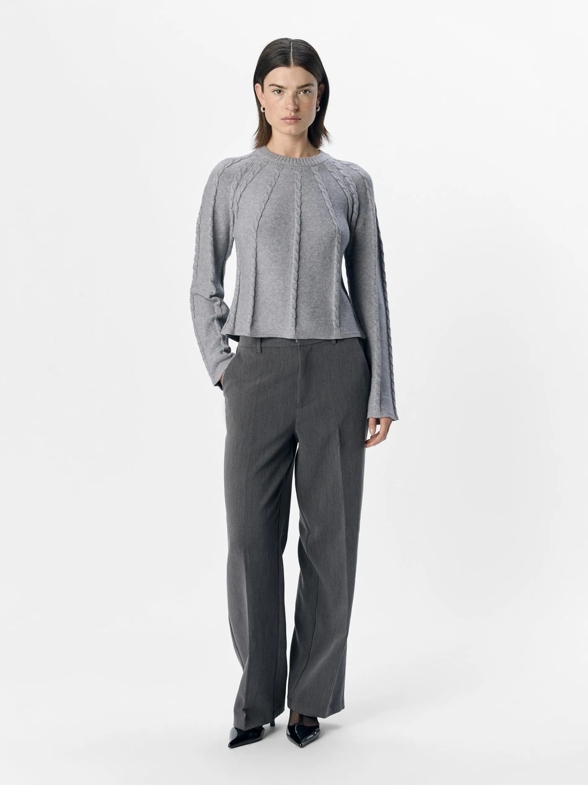 – Gebreide trui met lange mouwen- Gebreide kabels- Geribde ronde hals- Regular fit