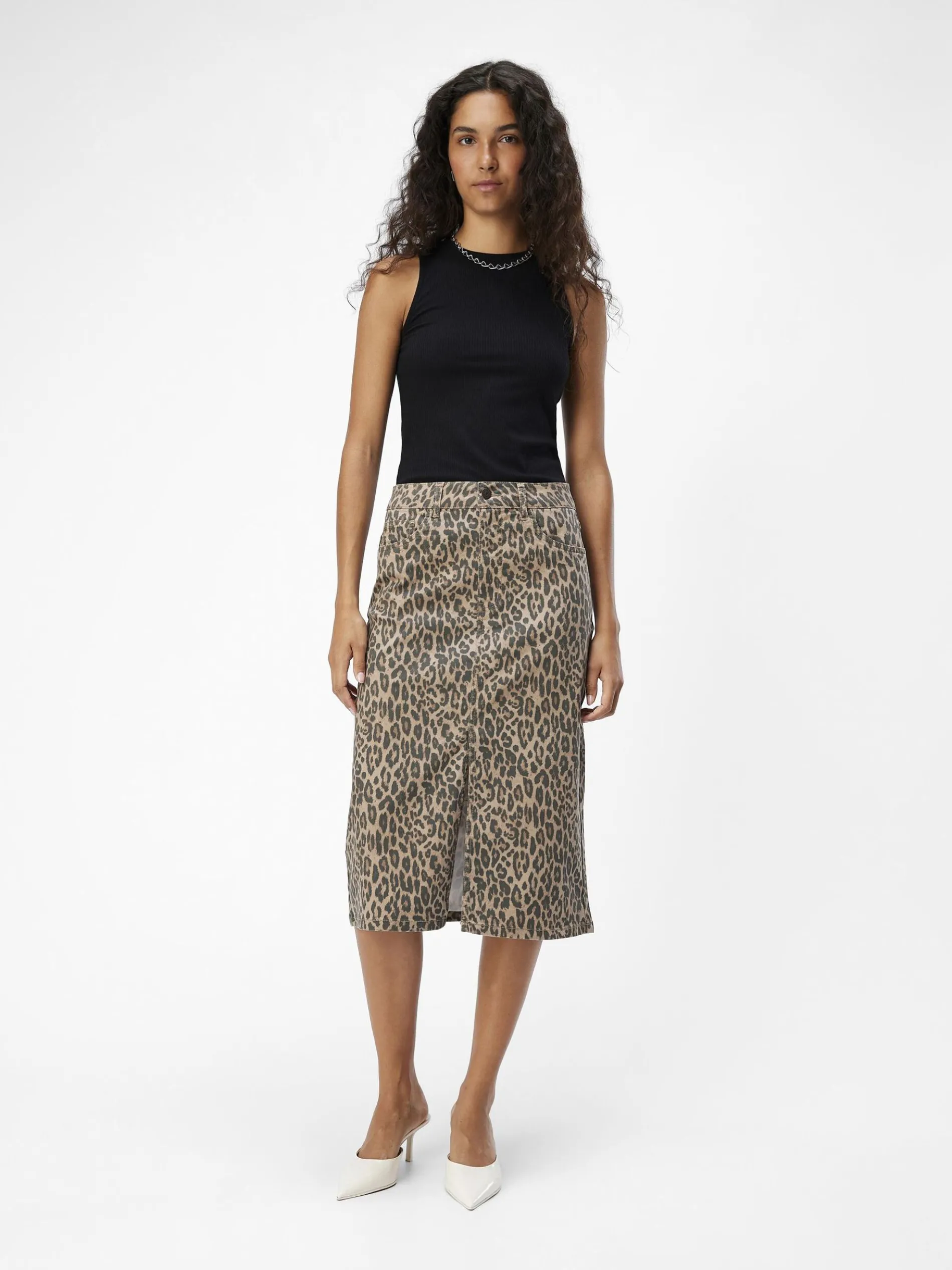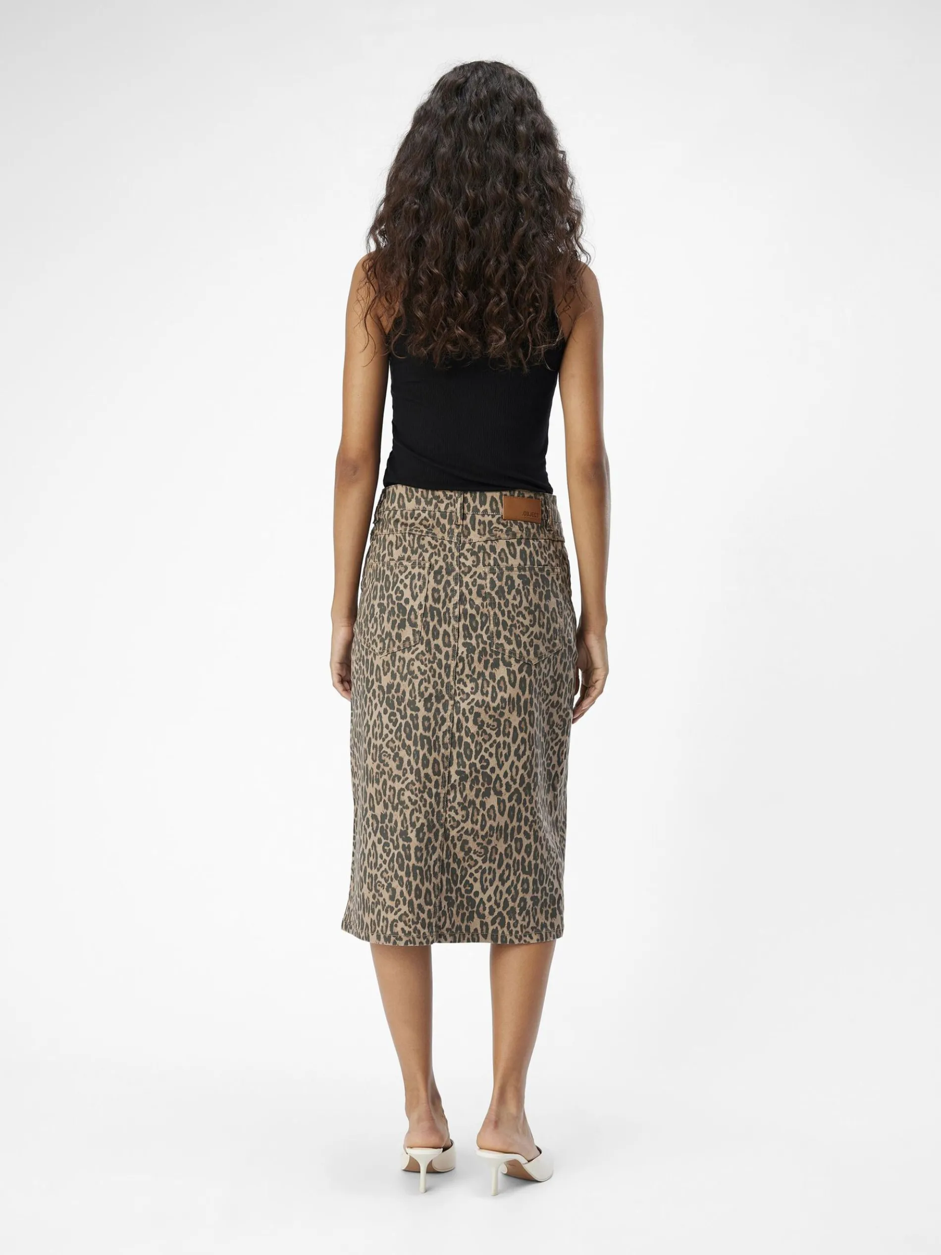 -Denim rok met luipaardprint-Hoge taille-Midi lengte-Ontwerp met 5-zakken-Split aan de voorkant-Jacron patch-Regular fit