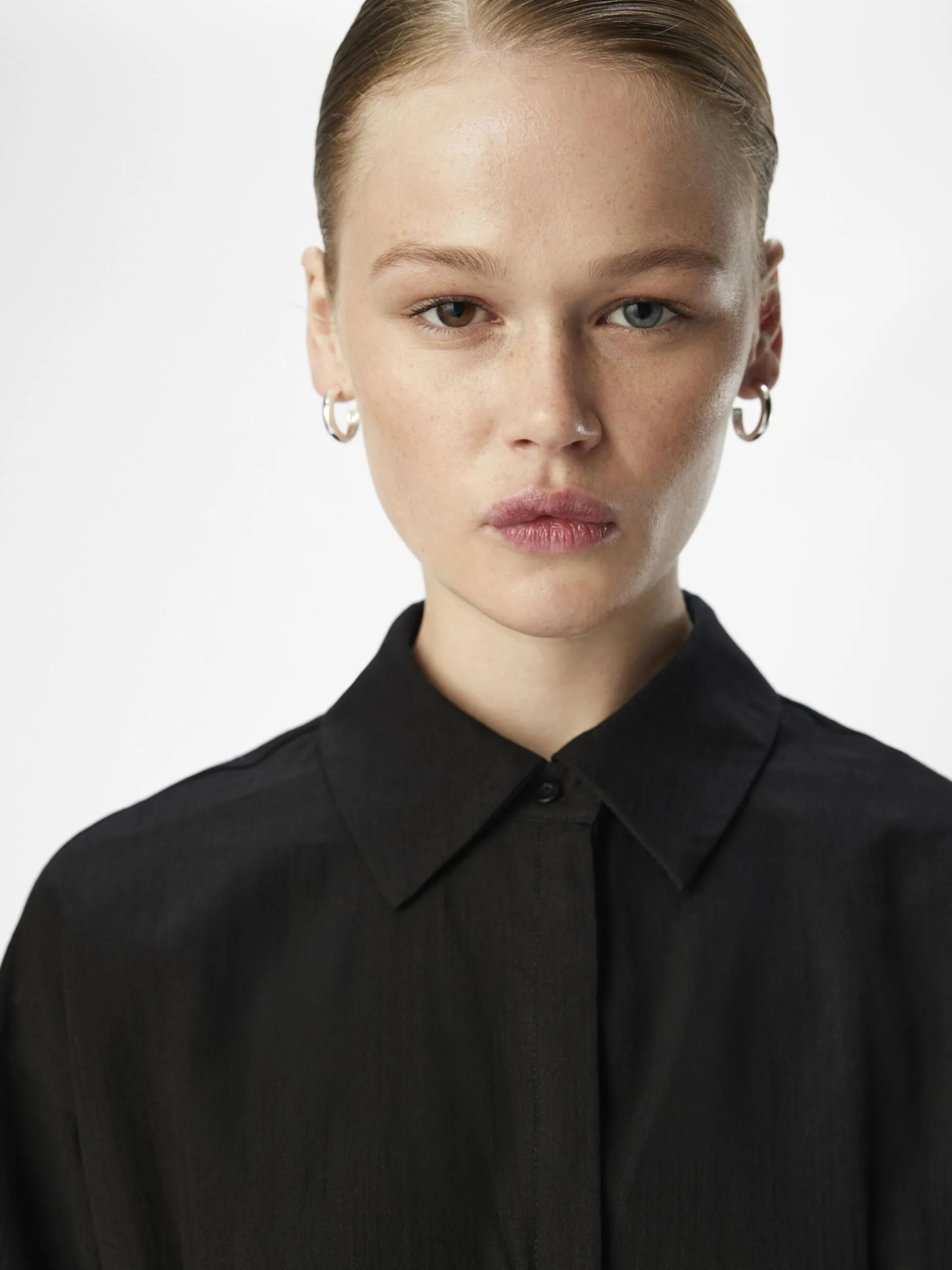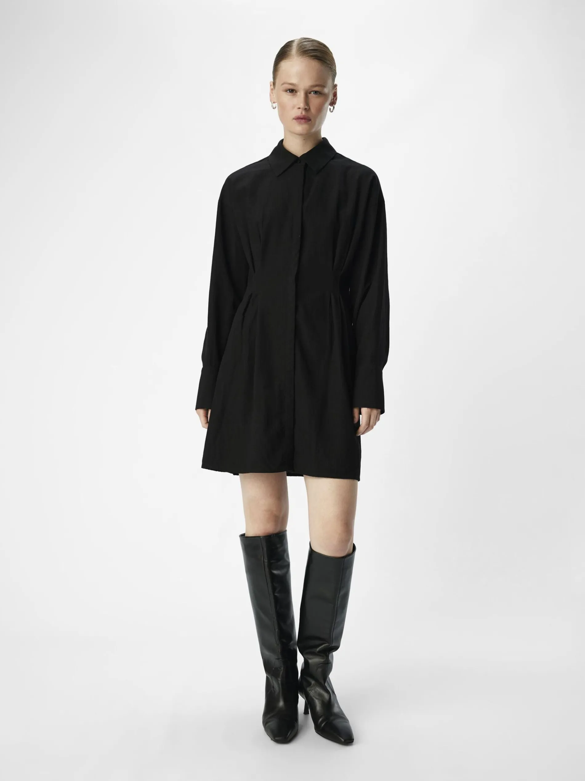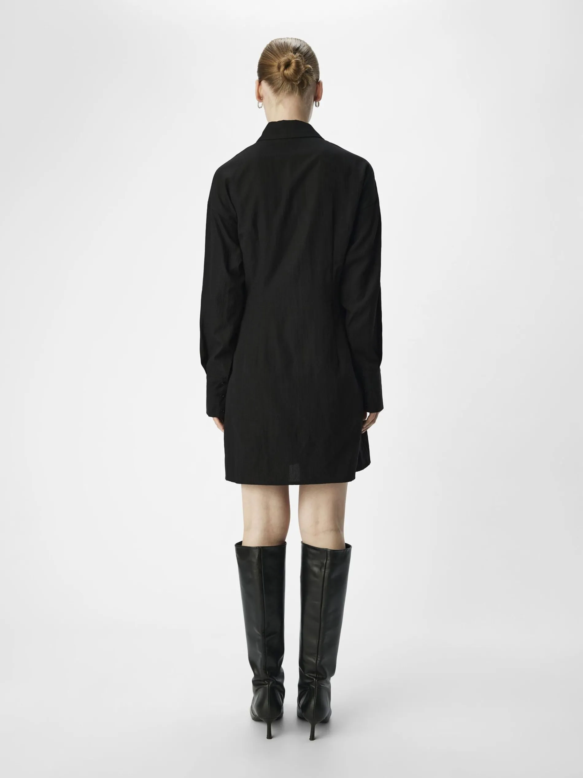 Gestructureerde mini-blousejurk- Normale kraag- Lange mouwen- Oversized manchetten- Blinde knoopsluiting aan de voorkant- Regular fit
