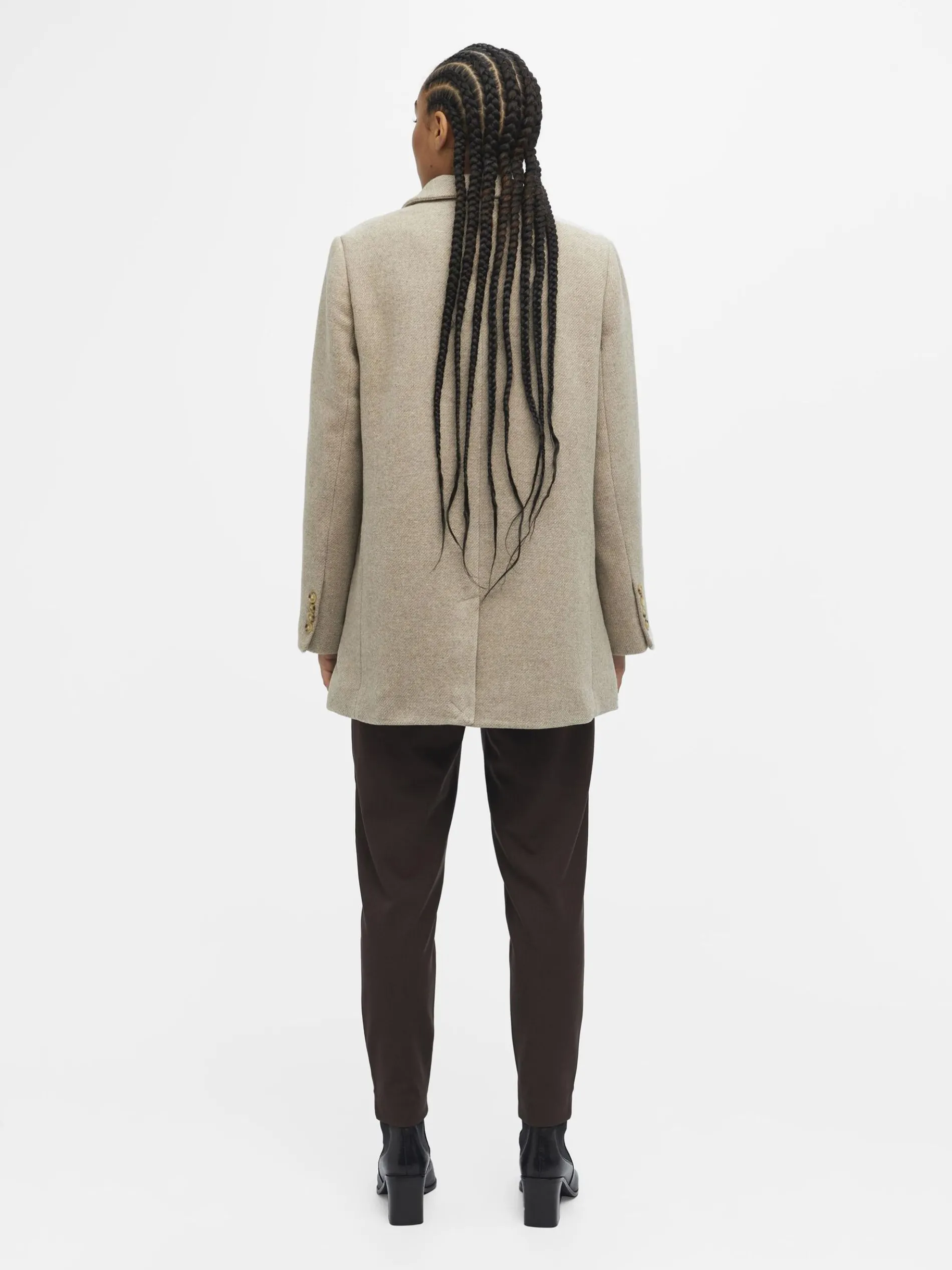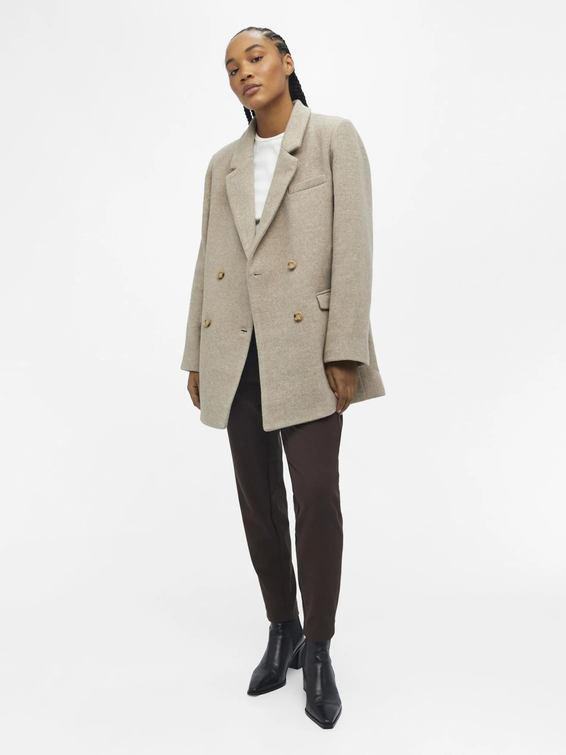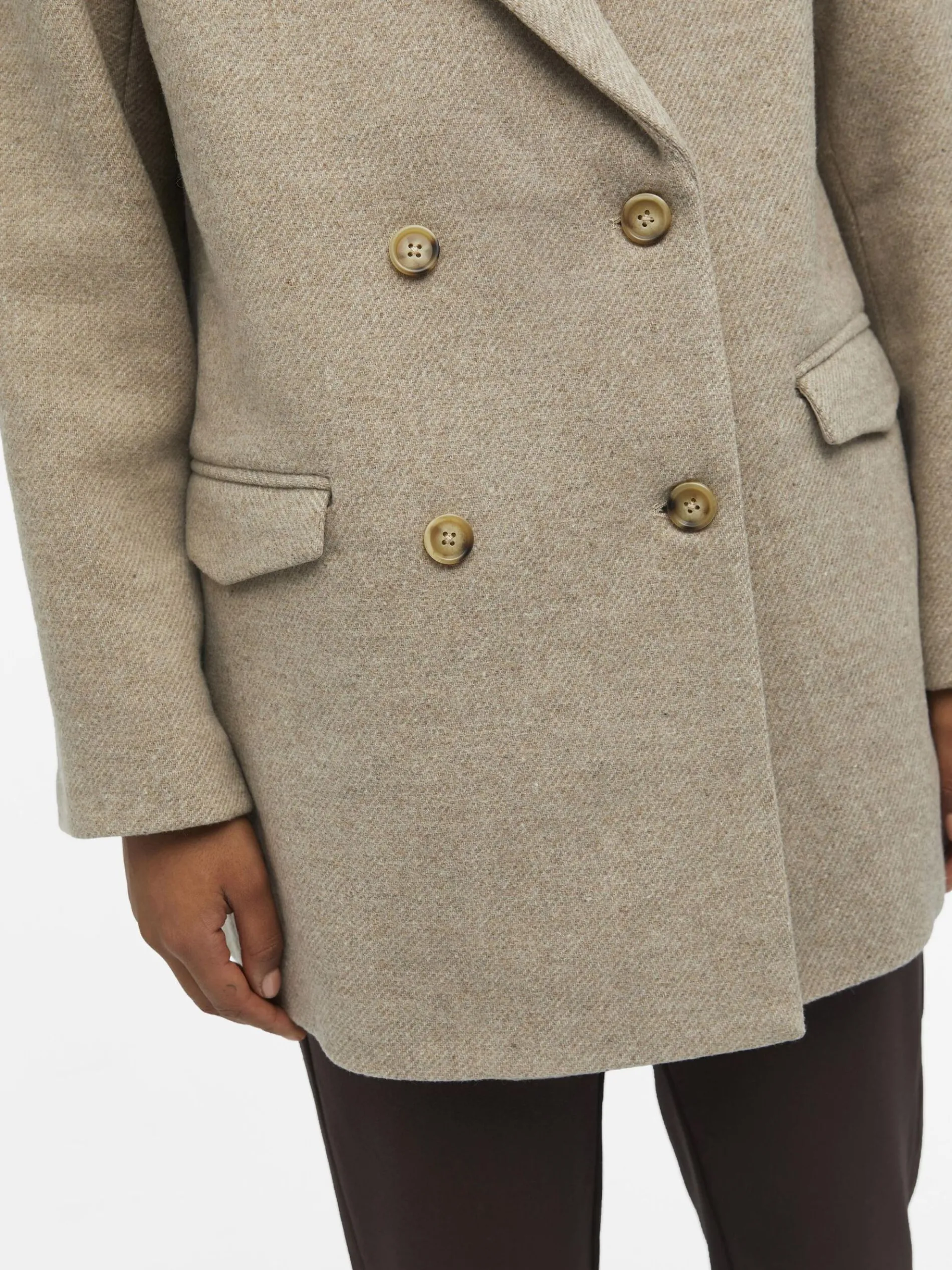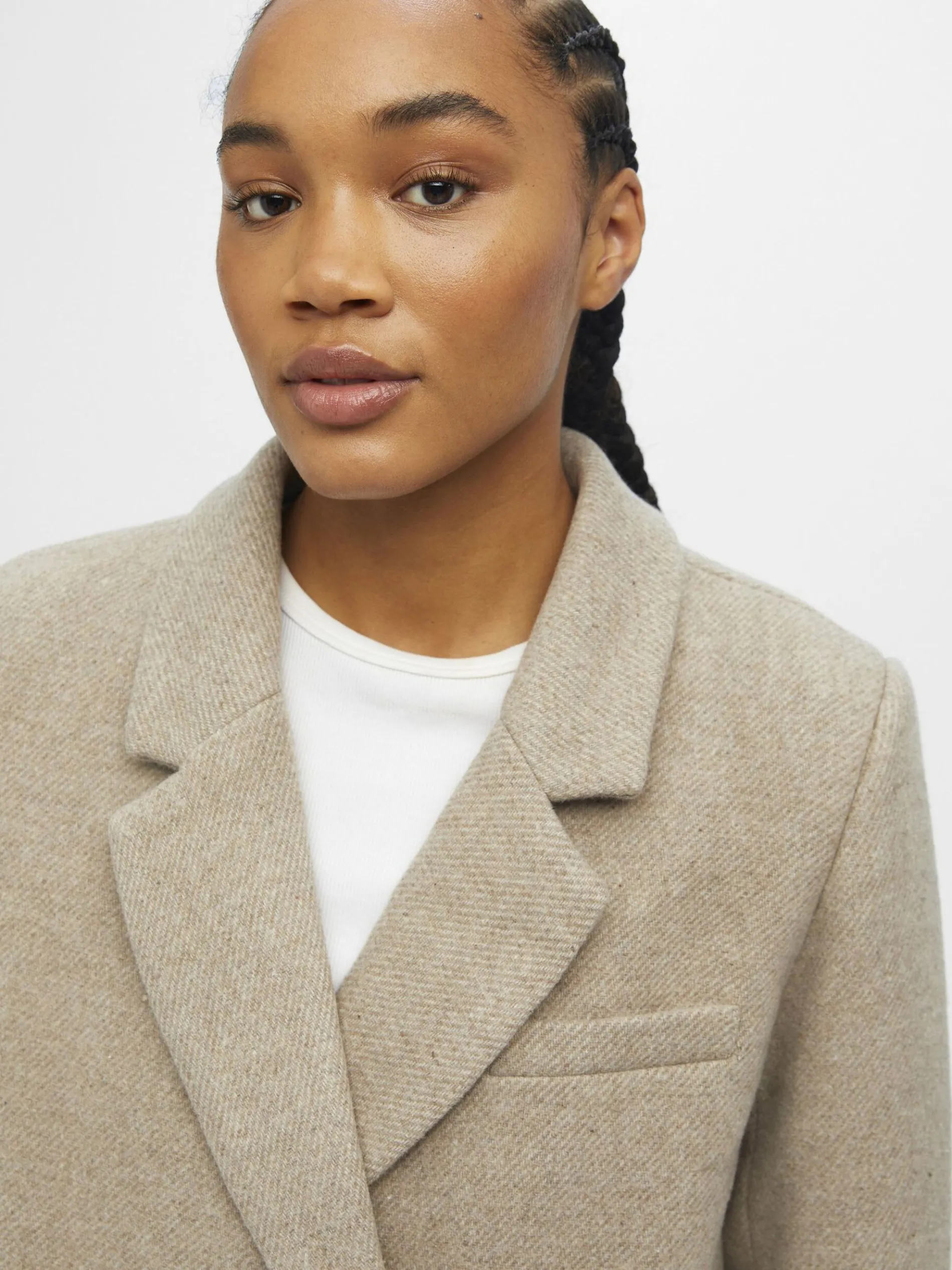 – Double-breasted- Revers met inkeping- Lange mouwen- Paspelzak op de borst- Knopen met schildpadlook- Paspelzakken met klep aan de voorkant- Boxy fit- Model draagt maat 36- Dit model is 173 cm lang
