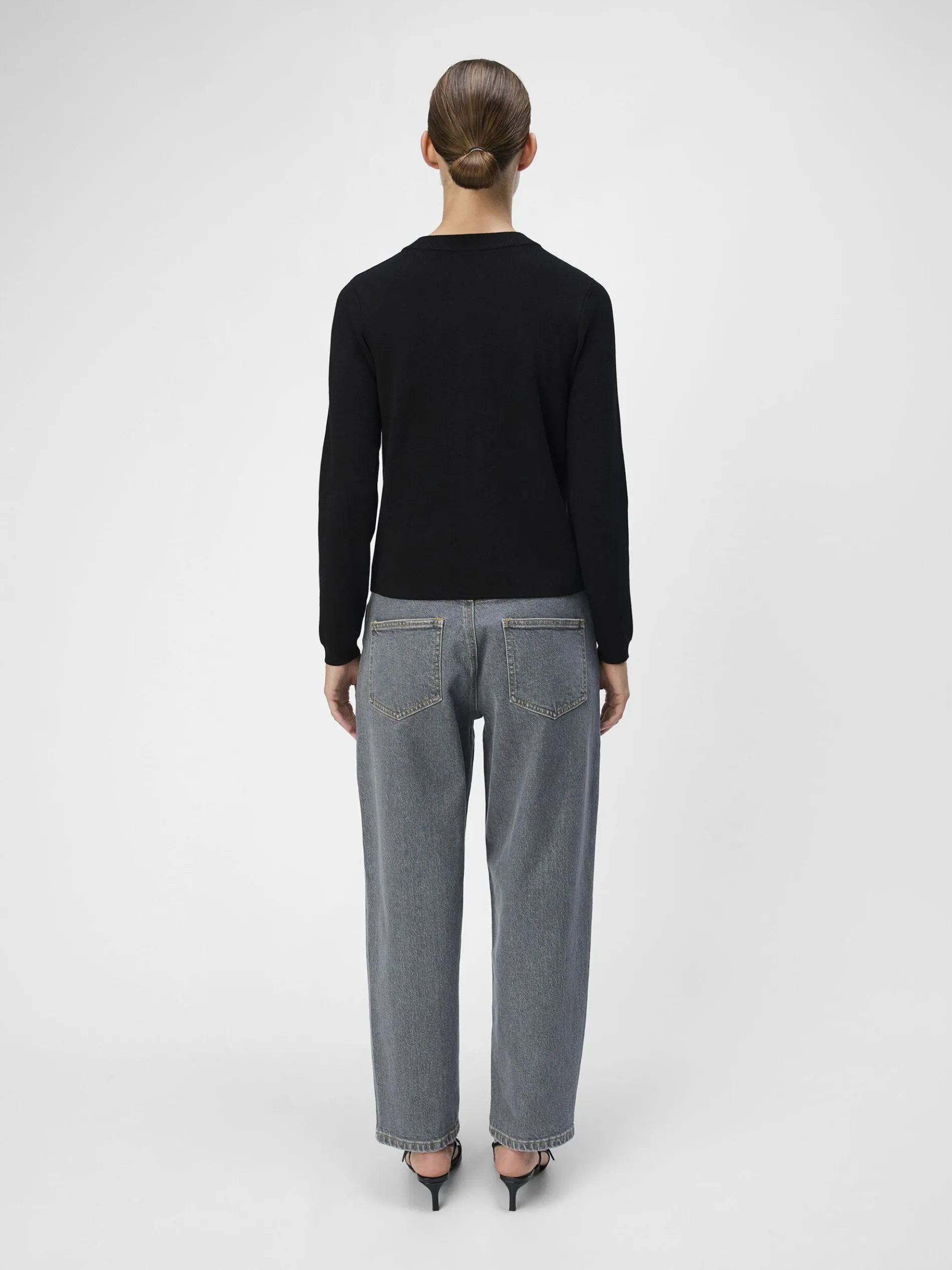– Slim-fit gebreide cardigan- Ronde hals- Lange mouwen- Knoopsluiting aan de voorkant- Geribbelde boorden- Model draagt maat 36