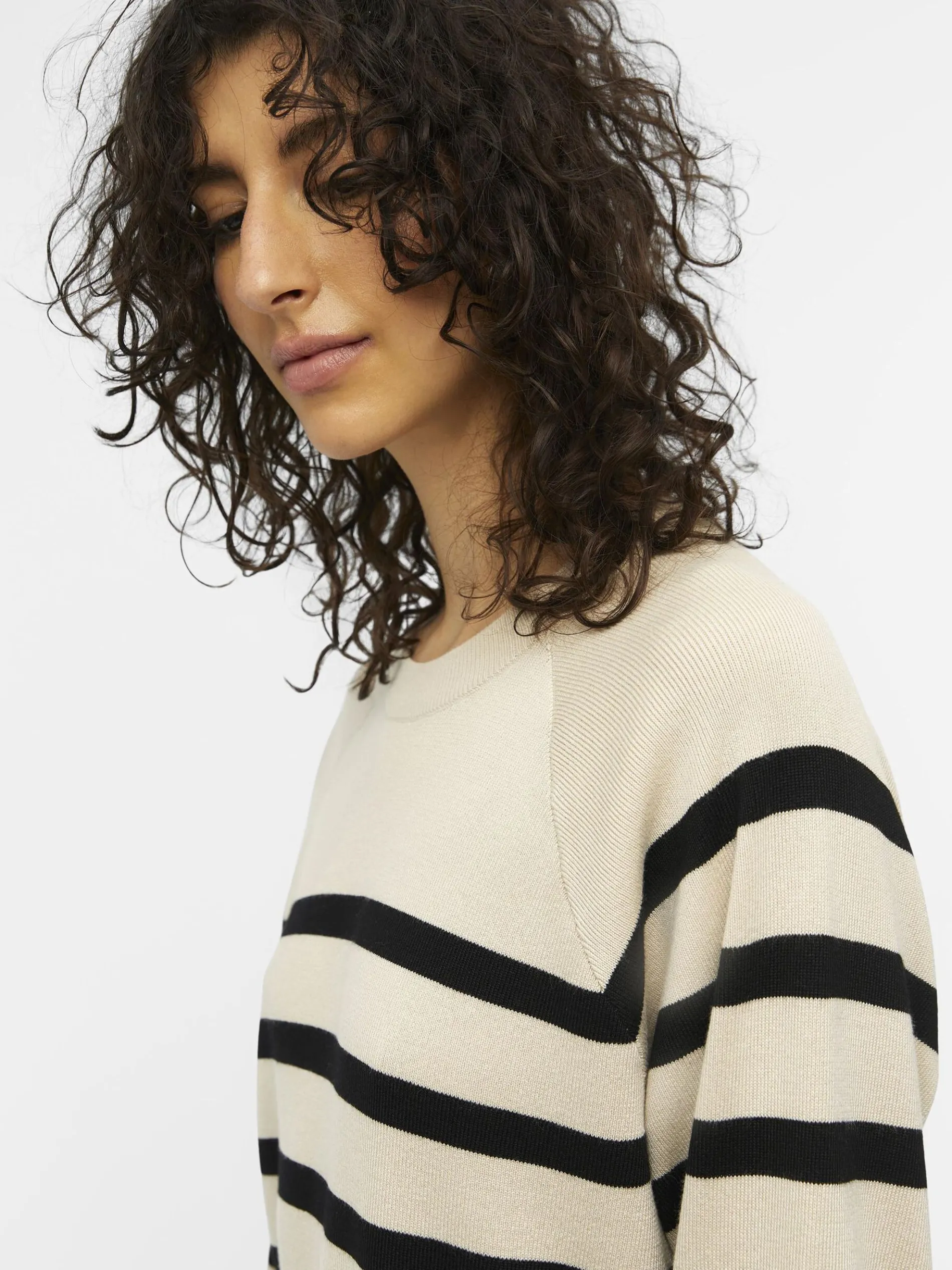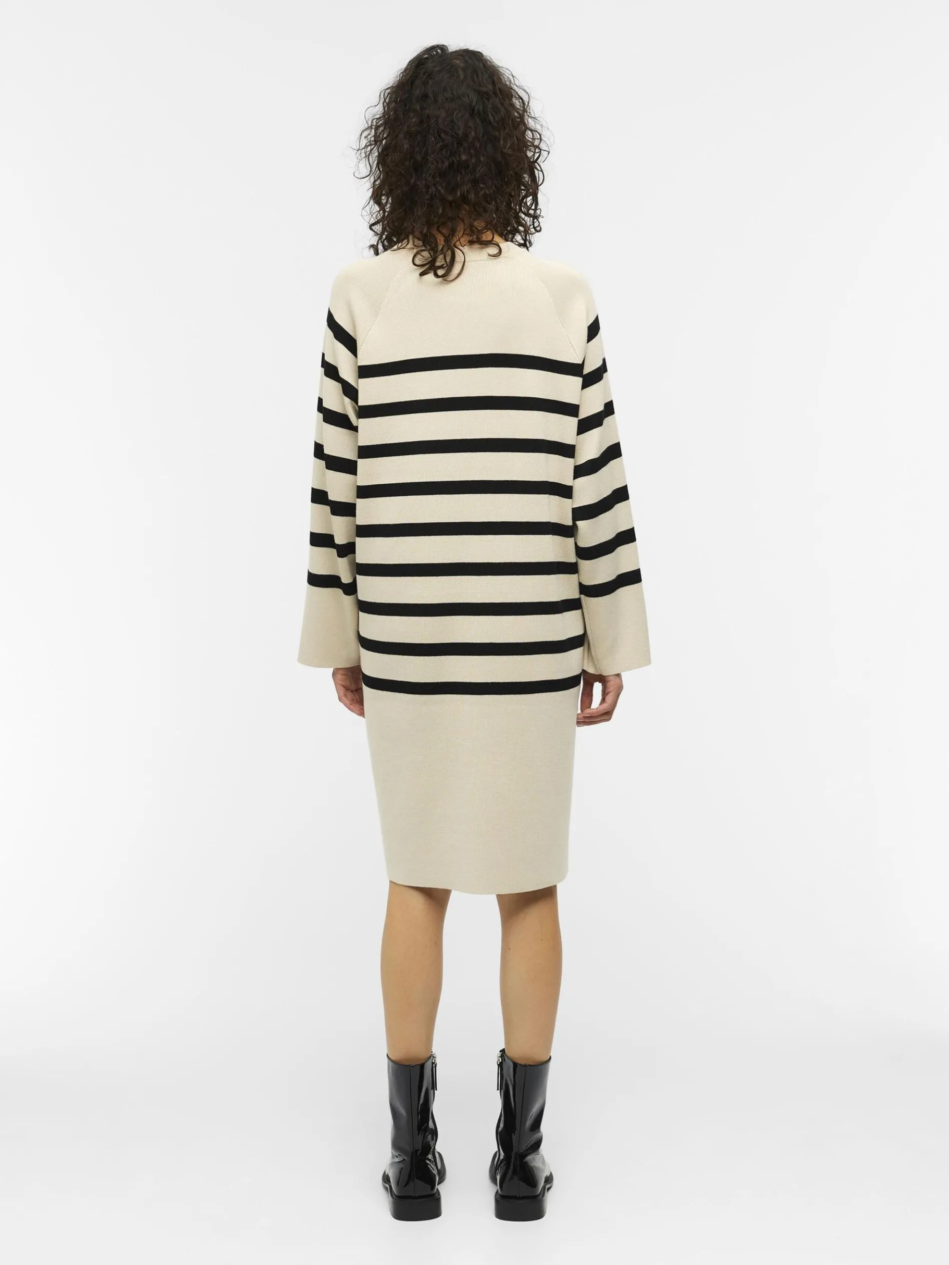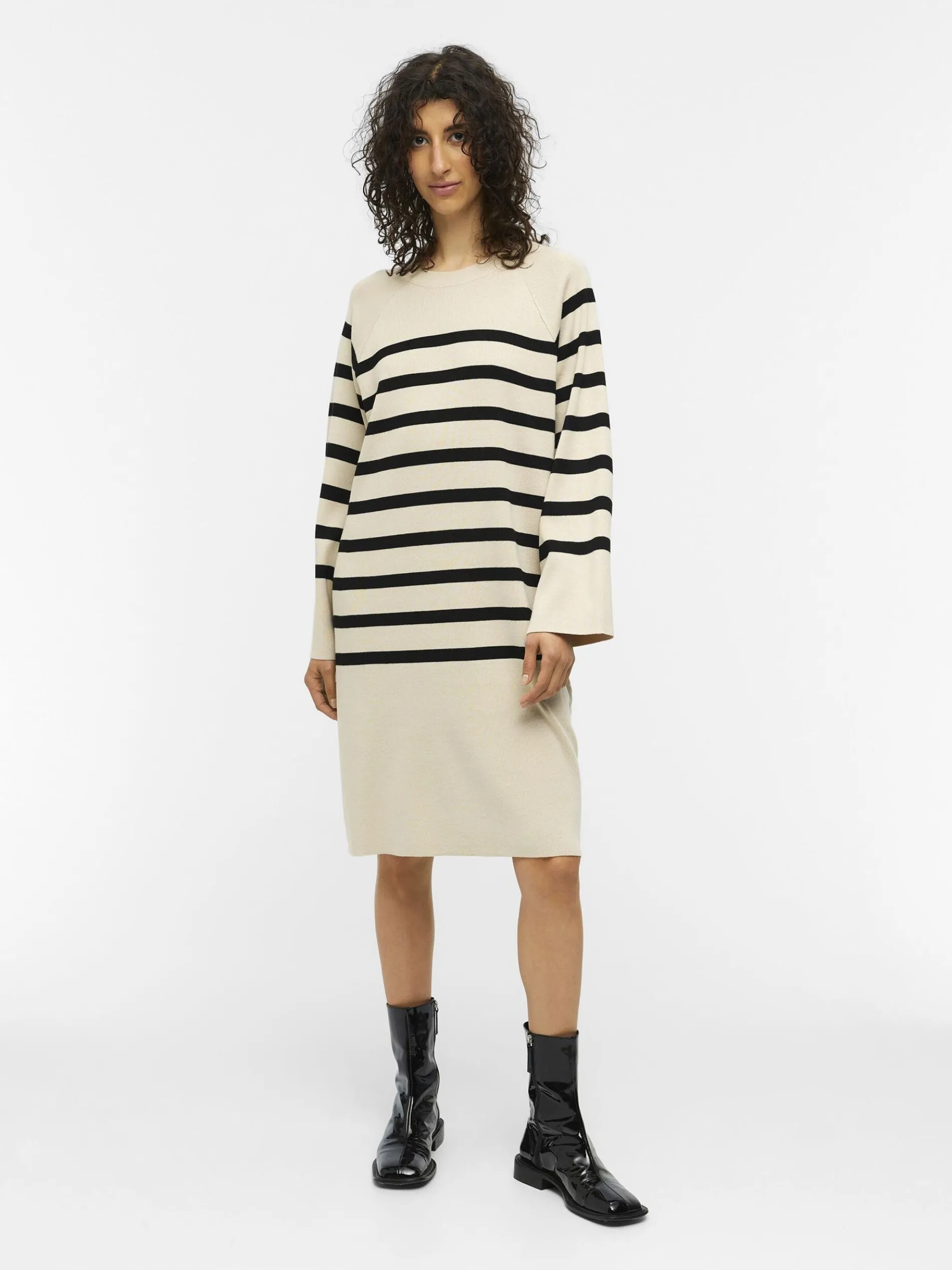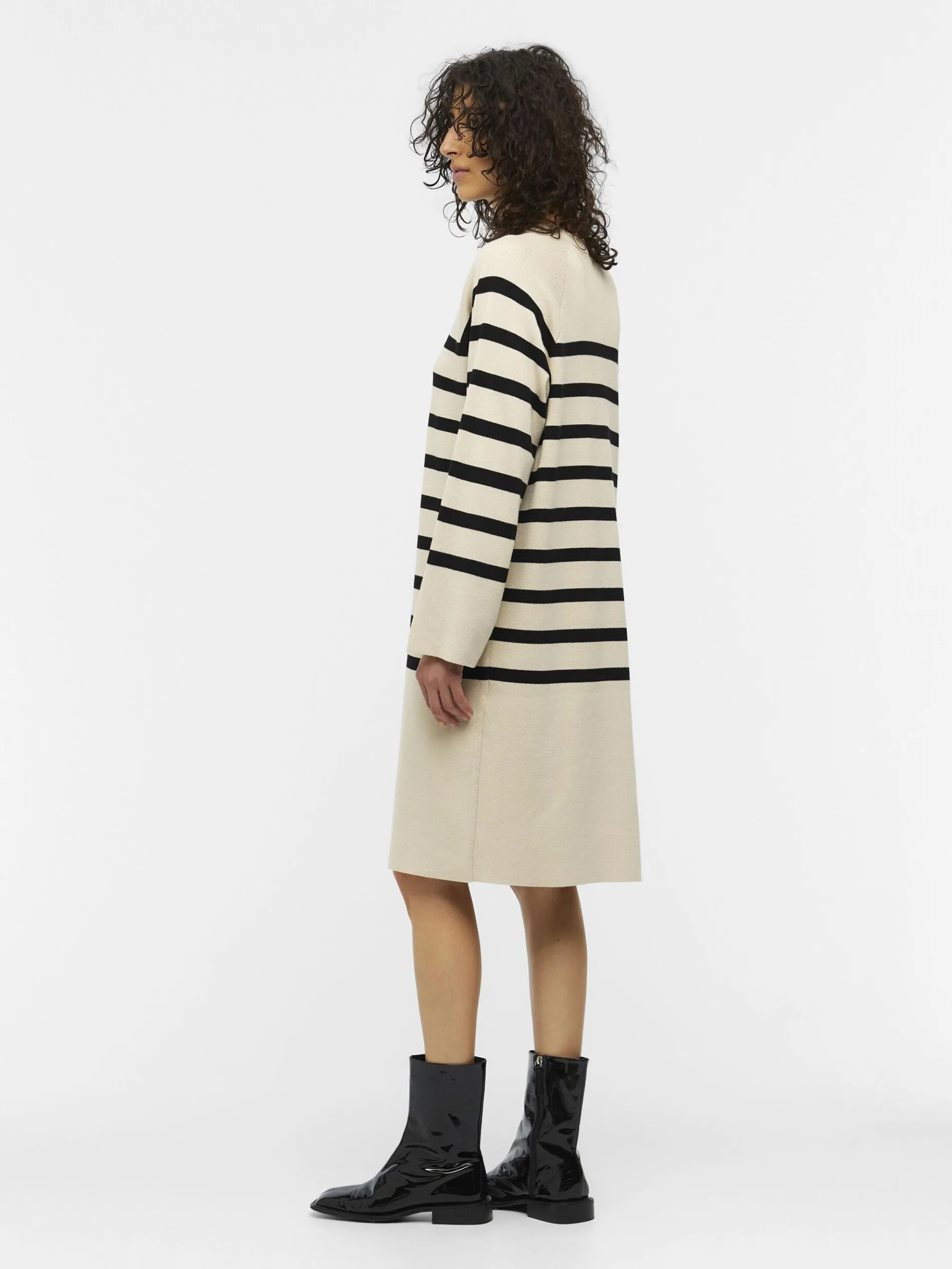 – Gestreepte knit midi-jurk- Ronde hals- Lange mouwen met verlaagde schouders- Loose fit- Gemaakt met duurzamere stoffen