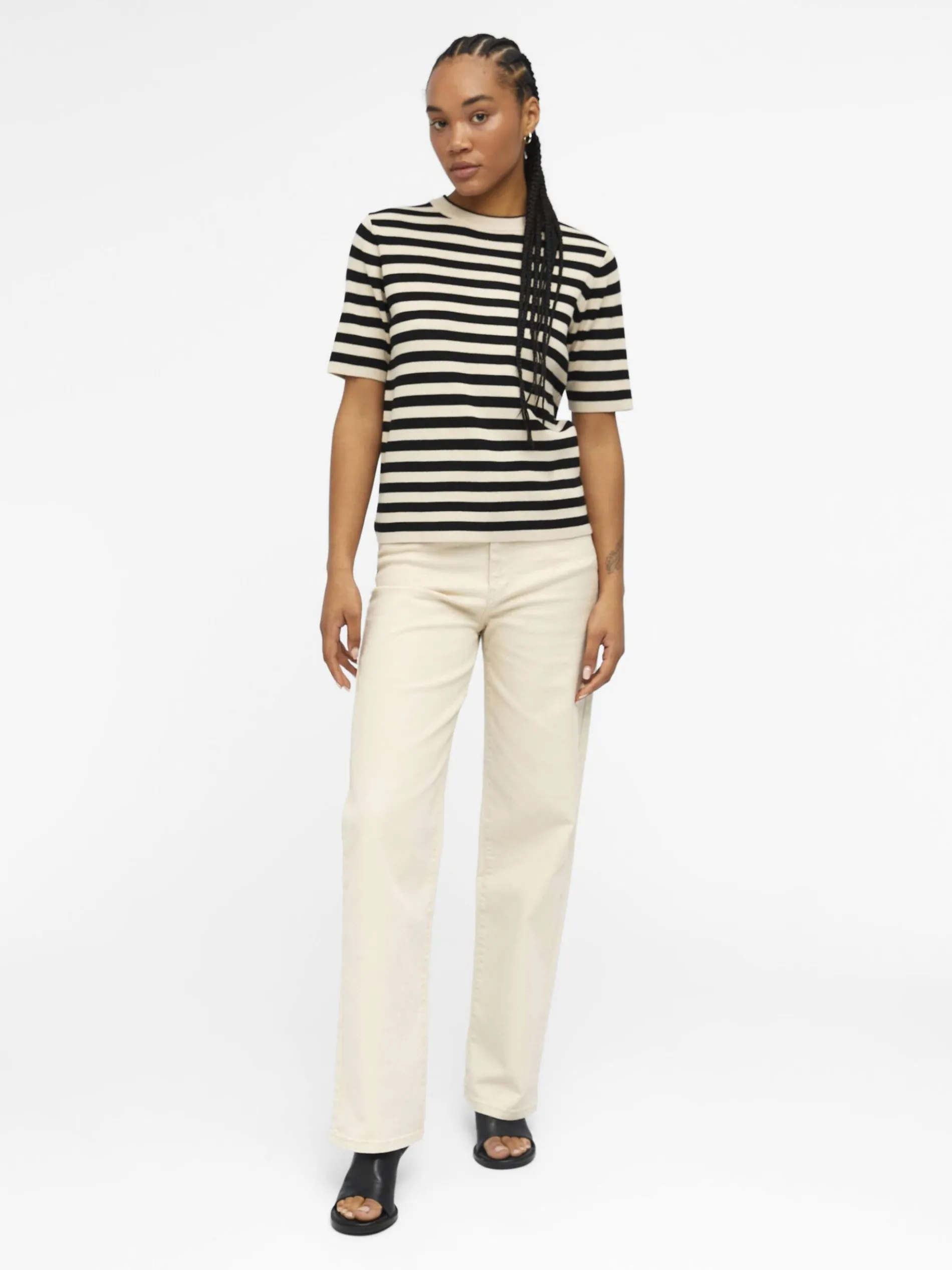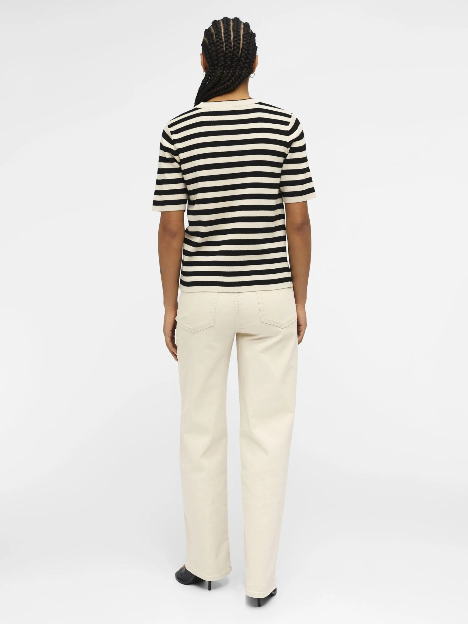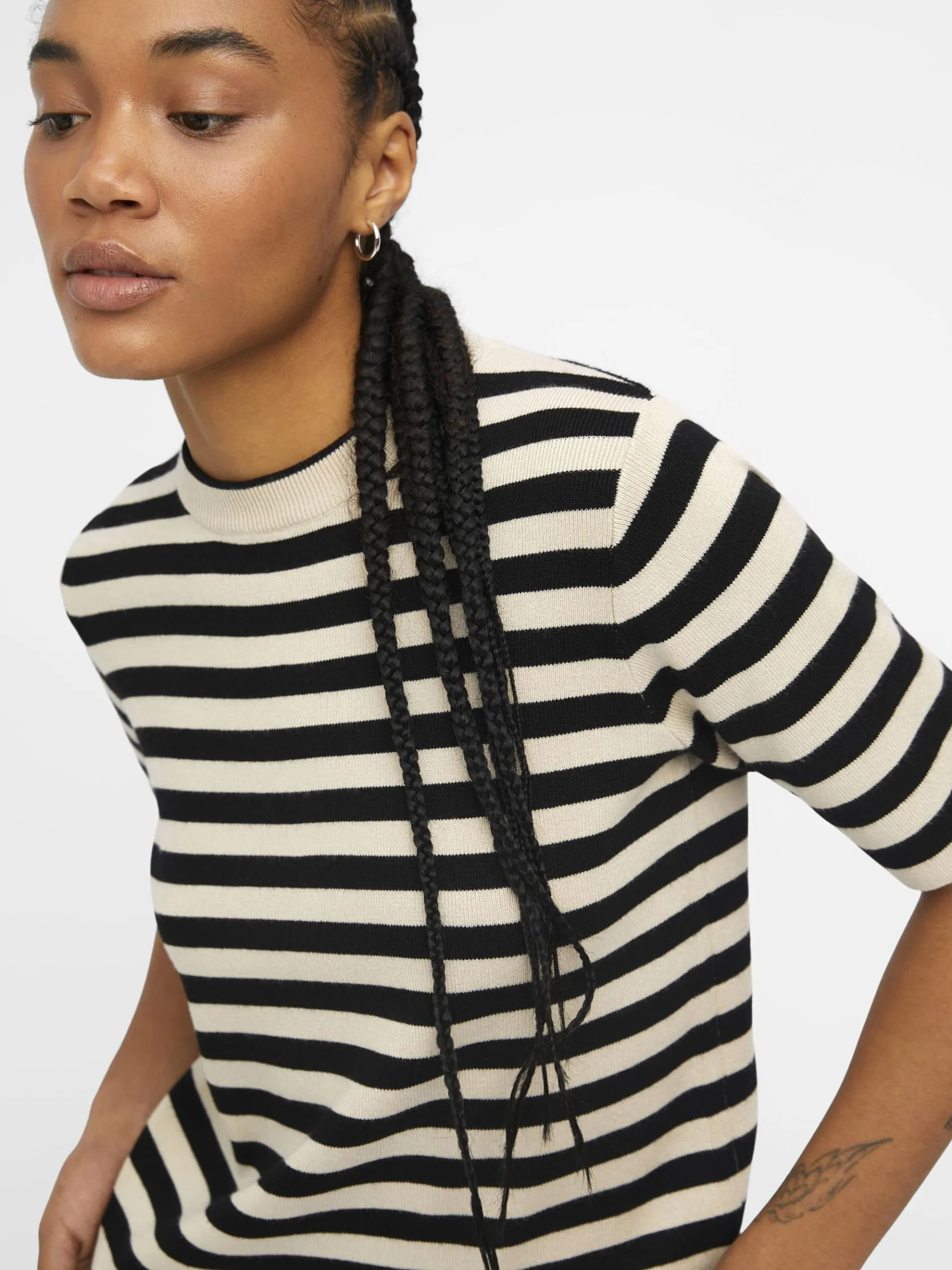 – Gebreid T-shirt met strepen- Ronde hals- Korte mouwen- Regular fit- Model draagt maat 36- Gemaakt met duurzamere stoffen