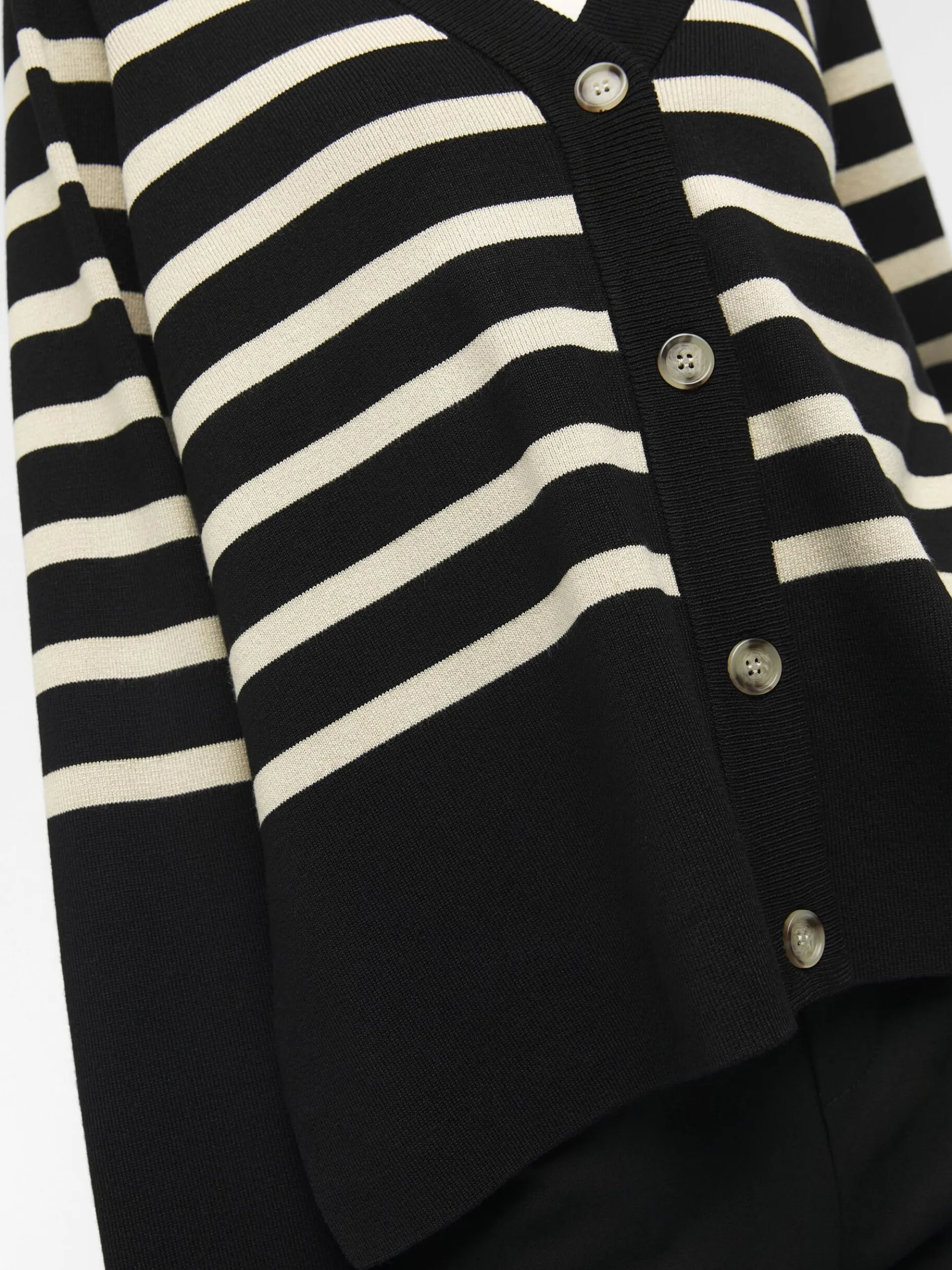 – V-hals- Lage schouders- Lange mouwen- Knoopsluiting met 3 knopen- Gemaakt met duurzamere stoffen- Oversized fit