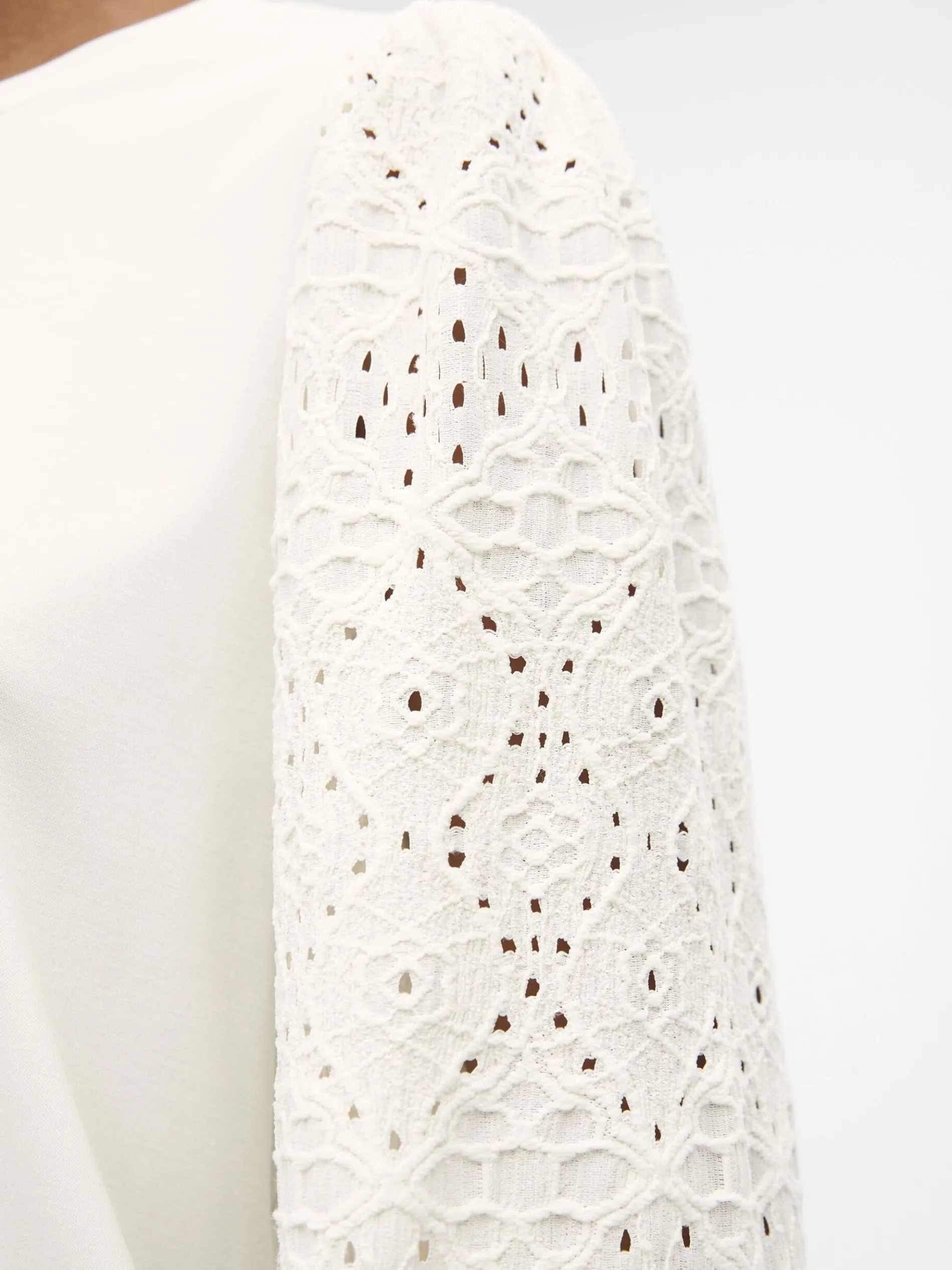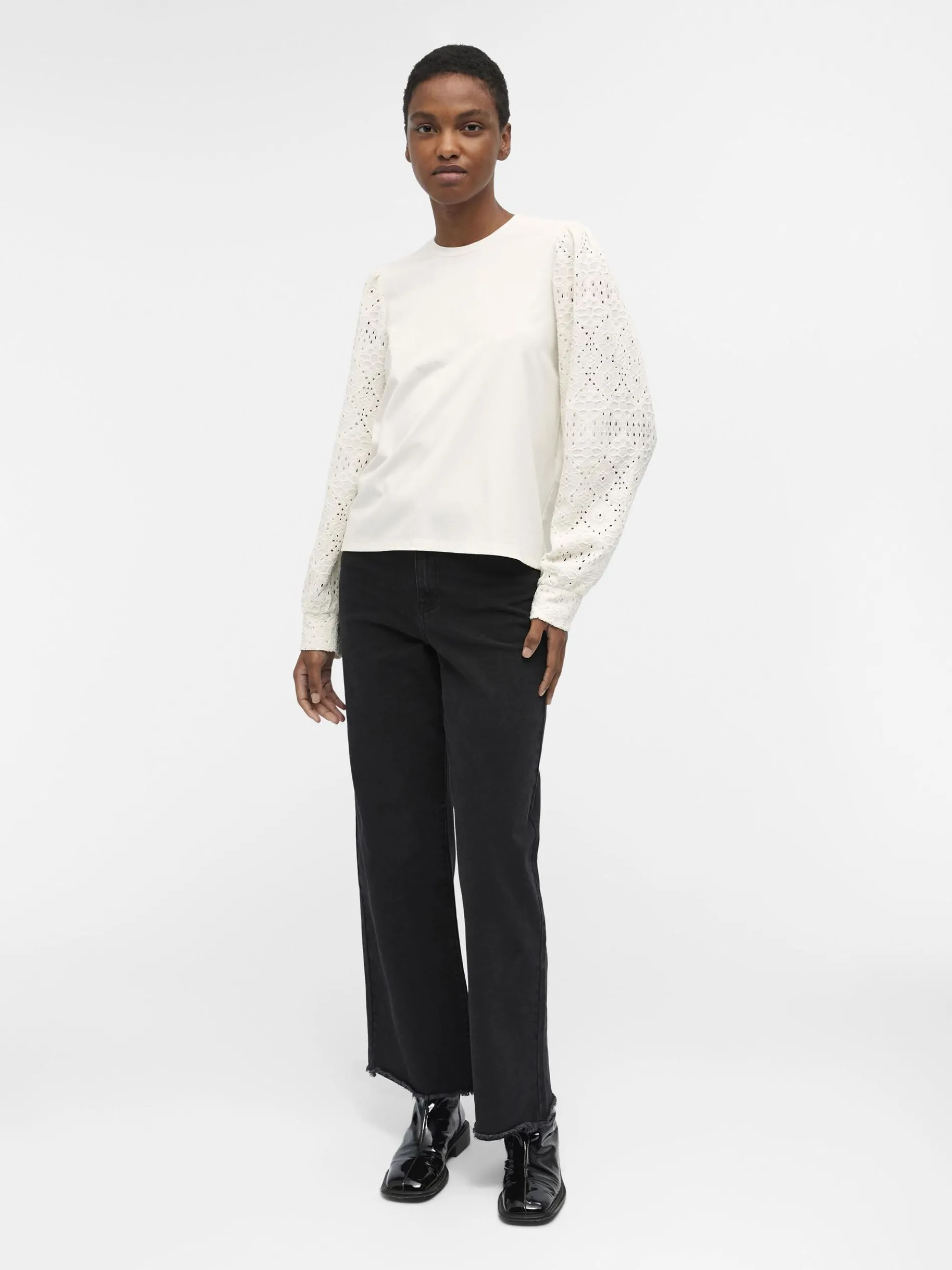 – Top met lange mouwen- Onderdeel van een set- Broderie Anglaise detail op de mouwen- Extra lange mouwuiteinden- Ronde hals- Regular fit- Gemaakt van een milieuvriendelijkere stof