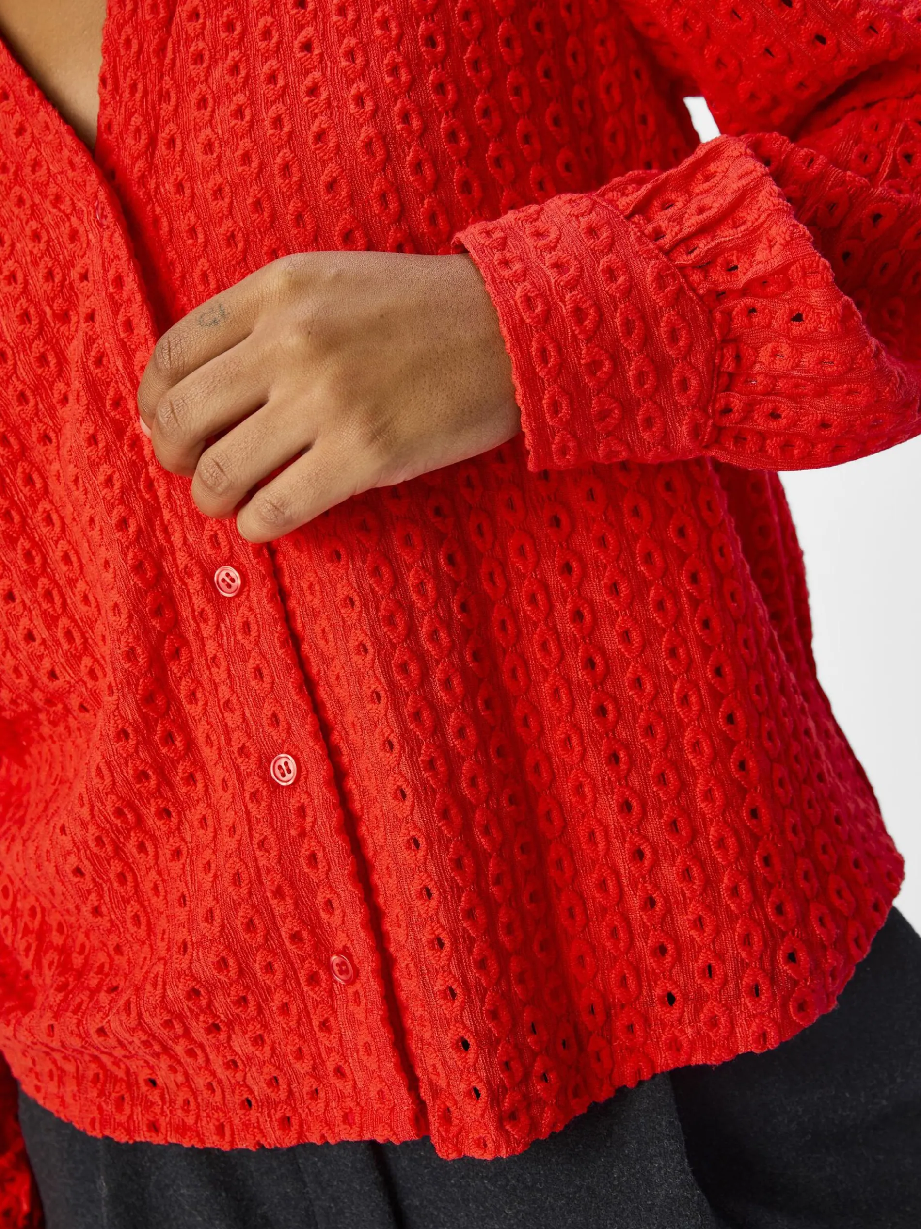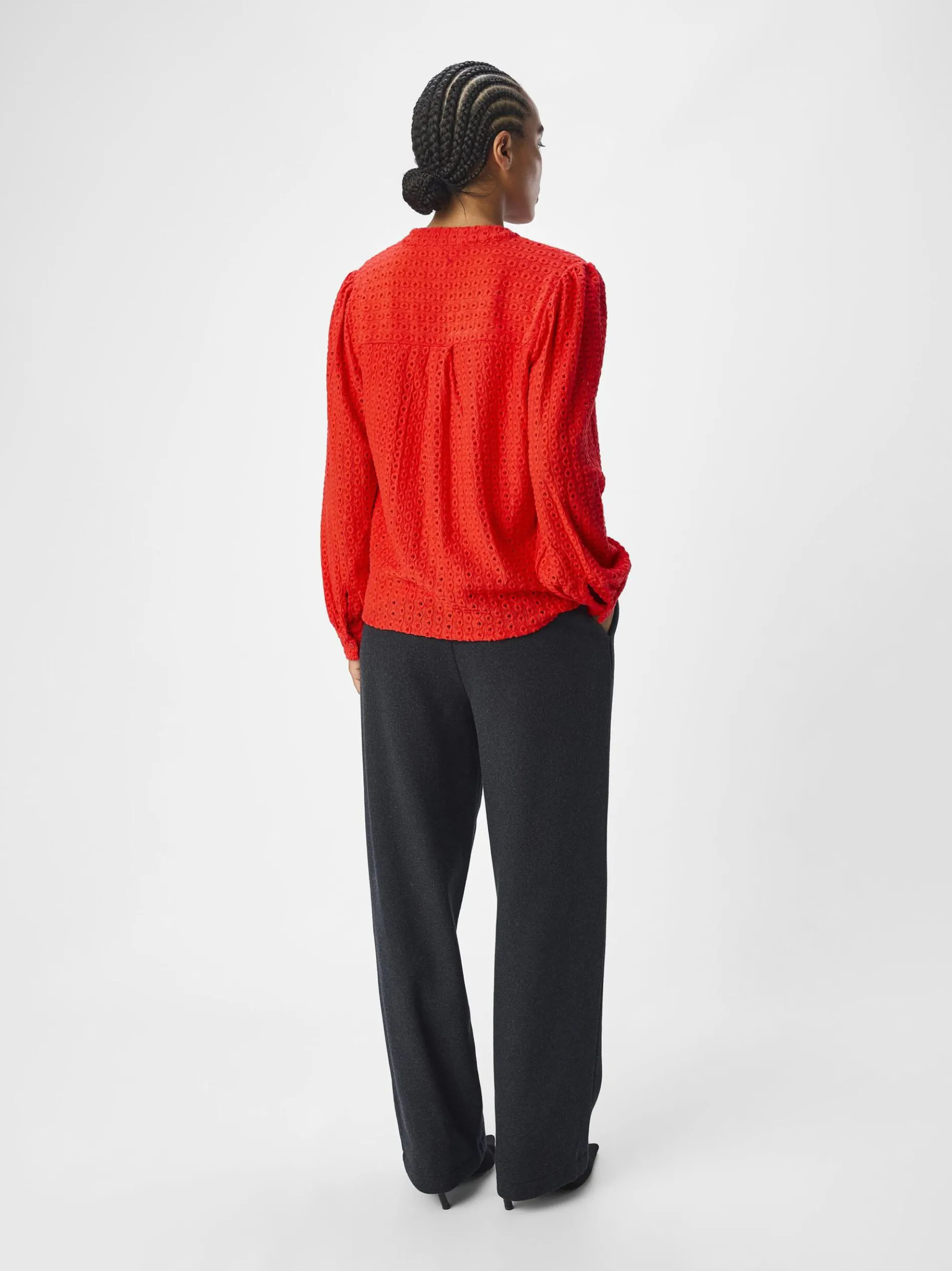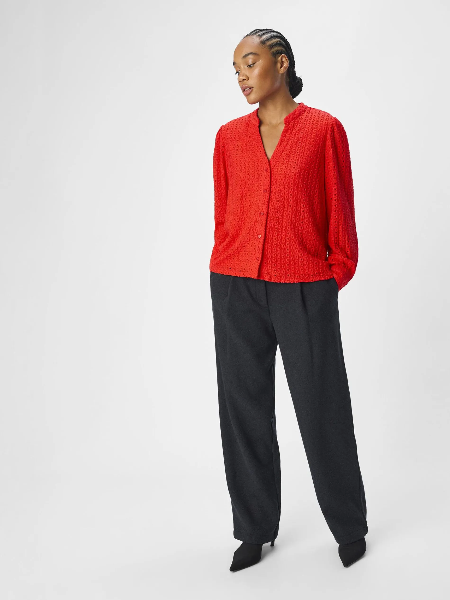 – Blouse met structuur en lange mouwen- Bandkraag met kleine V-hals- Lange ballonmouwen- Manchetten met knopen- Knoopsluiting aan de voorkant- Regular fit- Gemaakt met duurzamere stoffen
