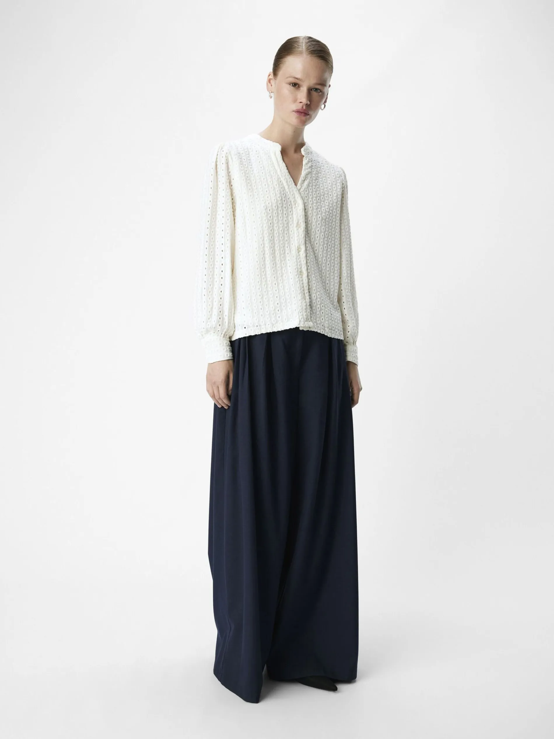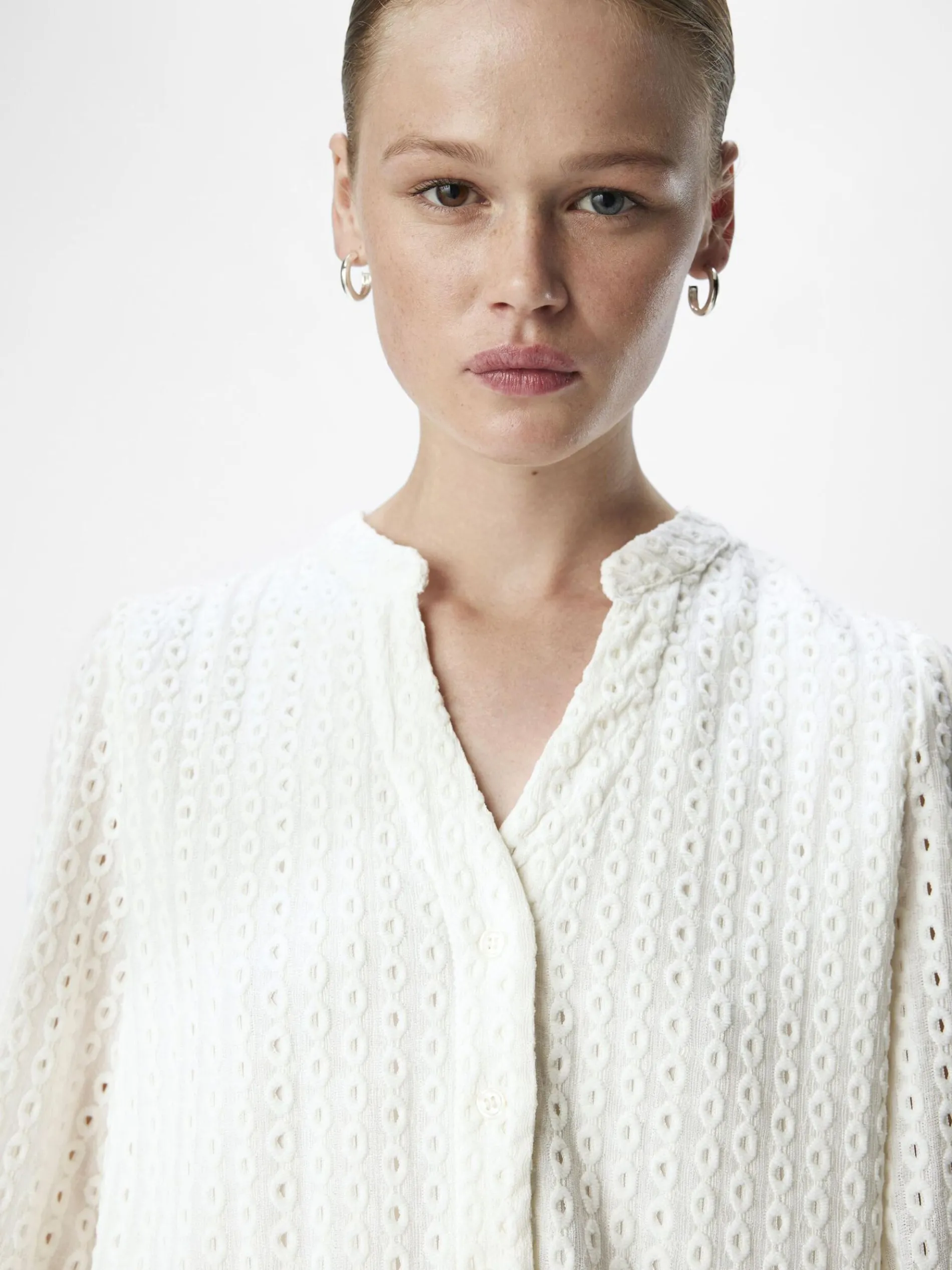 – Blouse met structuur en lange mouwen- Bandkraag met kleine V-hals- Lange ballonmouwen- Manchetten met knopen- Knoopsluiting aan de voorkant- Regular fit- Gemaakt met duurzamere stoffen