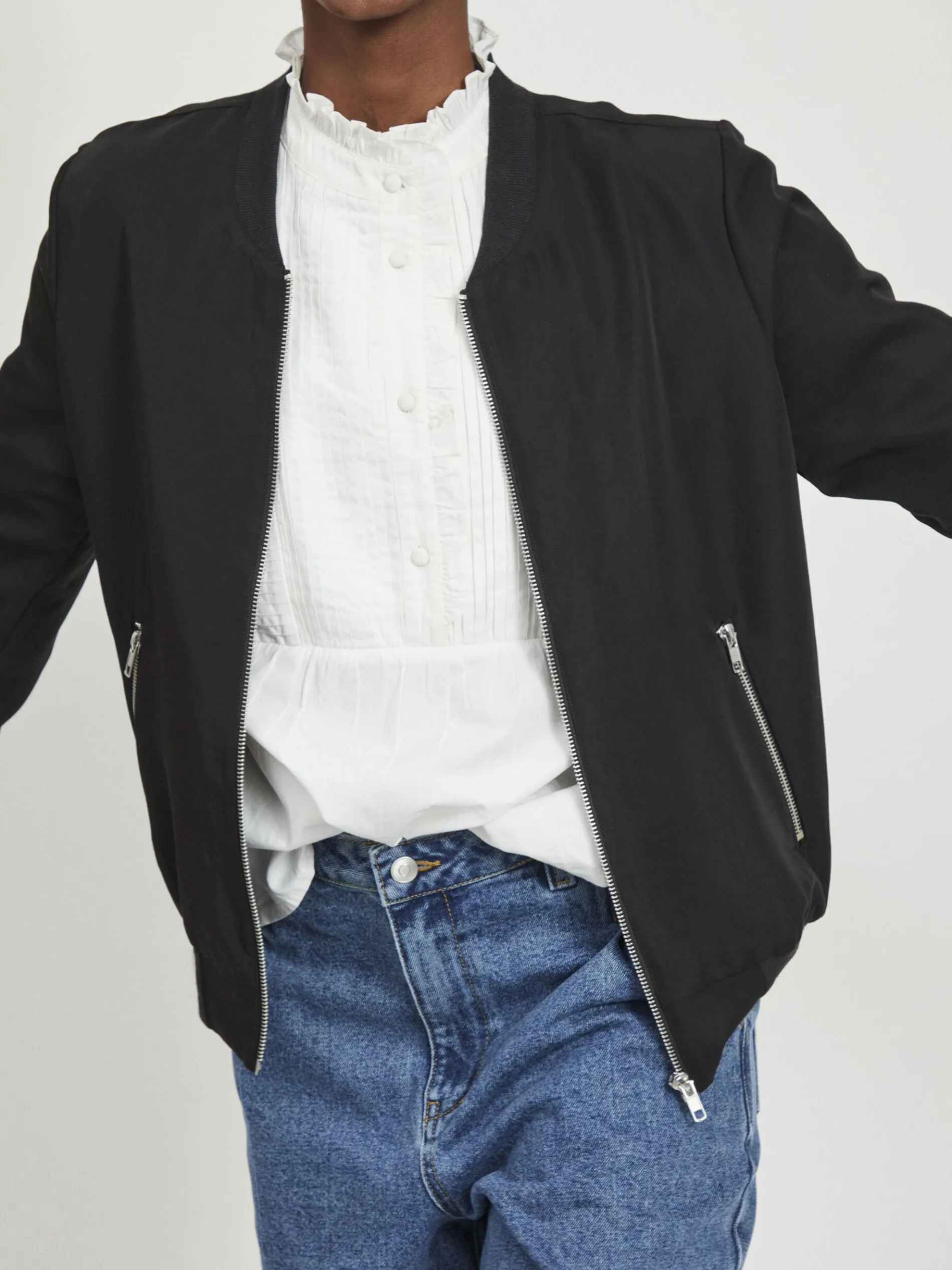 – Bomberjack van lichte stof- Bomberkraag- Ritssluiting aan de voorkant- Lange mouwen- Twee voorzakken met rits- Geribde boorden- Regular fit- Model draagt maat 38- Dit model is 178 cm lang