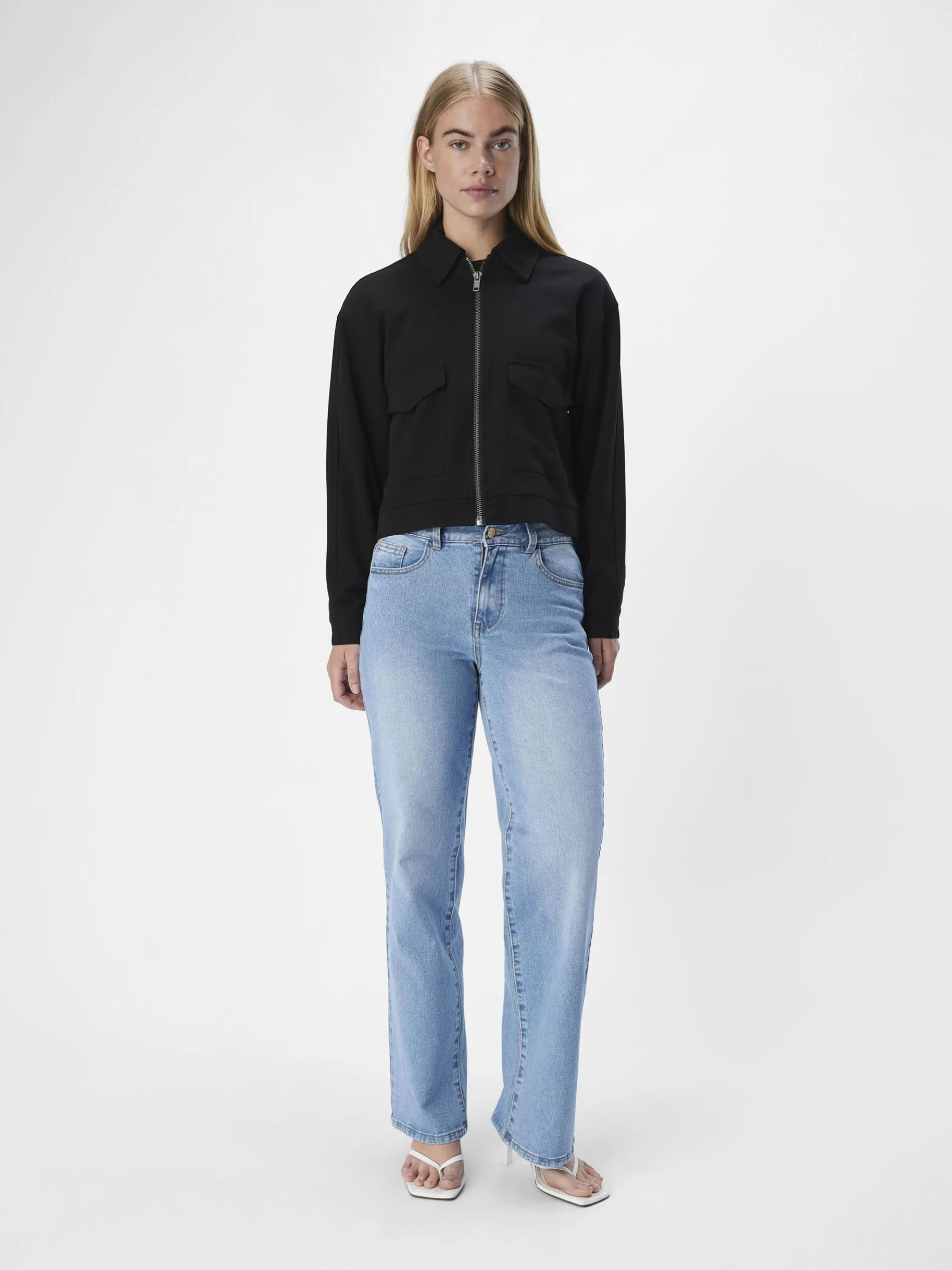 – Bomberjack met gespreide kraag- Lage schouders- Lange mouwen- Ritssluiting met ring- Regular fit